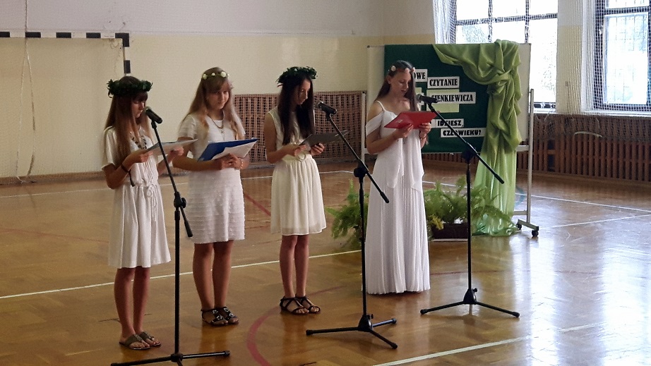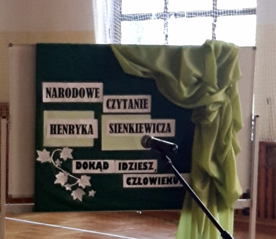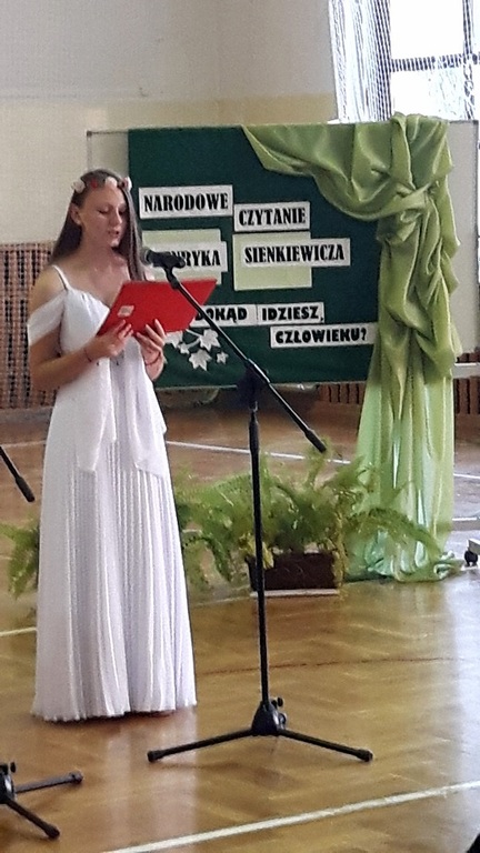 12 września 2016r. uczniowie naszej szkoły wzięli udział w kolejnej już edycji akcji czytelniczej po hasłem " Narodowe Czytanie", którą zainicjowała para prezydencka w dniu 3 września. W naszej szkole fragmenty powieści Henryka Sienkiewicza pt. "Quo Vadis" w pięknej interpretacji głosowej przedstawiły uczennice gimnazjum: Kinga Choewaniec, Aleksandra Nieciąg, Emilia