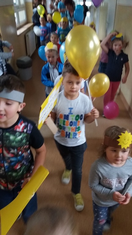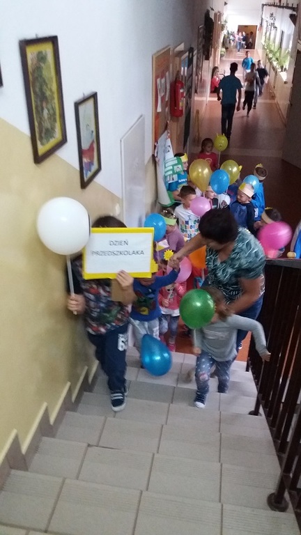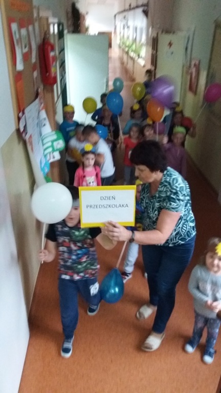 20 września 2016r. w całej Polsce obchodzony był "Dzień Przedszkolaka", który śwętowały rónież dzieci z naszego przedszkola. przedszkolaki ubrane kolorowo, w opaskach na głowach przemaszerowały korowodem przez budynek szkolny, trzymając transparent i kolorowe balony. Na dzieci czekało też wiele atrakcji. Odbyły się konkursy takie jak: taniec z balonem, taniec z gazetami, ukryte skarby, kto złapie balon. Wszyscy świetnie się bawili. Kolejnym wesołym akcentem była zabawa przy muzyce. dzieci tańczyły i śpiewały. Mamy nadzieję, że to święto zagości na stałe w tradycji naszego przedszkola.