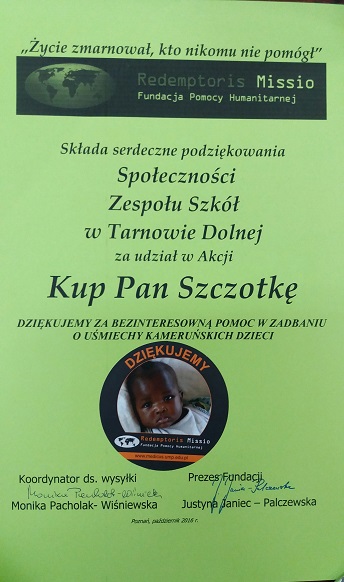 Uczniowie nasze szkoły po raz kolejny włączyli się w akcję pomocy misjom organizowane przez Redemptoris Missio, pod hasłem „Kup Pan Szczotkę”.