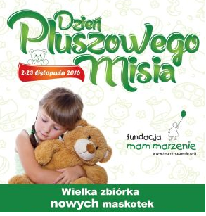 25 listopada obchodziliśmy Międzynarodowy Dzień Pluszowego Misia. Z tej okazji uczniowie naszej szkoły zebrali pluszowe maskotki, które przekazaliśmy dla Fundacji Mam Marzenie. 25 listopada wolontariusze rozdali wszystkie zebrane maskotki dzieciom na oddziałach onkologicznych działających w: Chorzowie, Katowicach, Lublinie, Poznaniu, Trójmieście, Warszawie, Wrocławiu i Zabrzu. Dla małych pacjentów zorganizowali też gry i zabawy oraz malowanie marzeń.