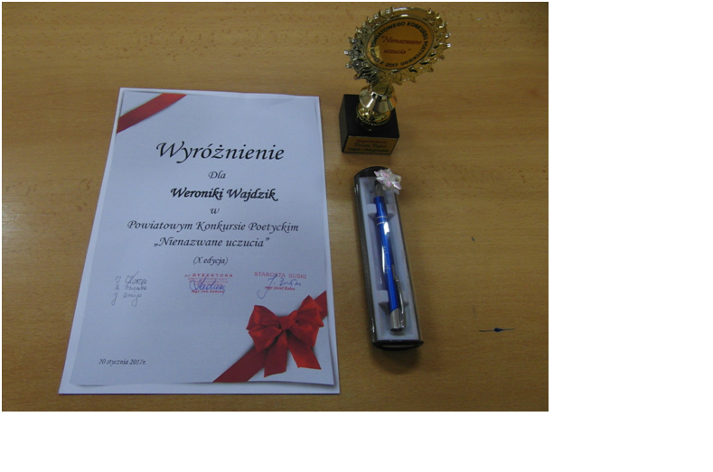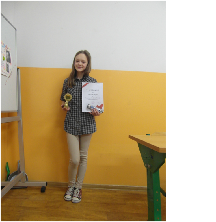 Wśród laureatów w kategorii – Gimnazja – wyróżnienie otrzymała uczennica klasy Ia - Weronika Wajdzik za utwór ,,Tam”.