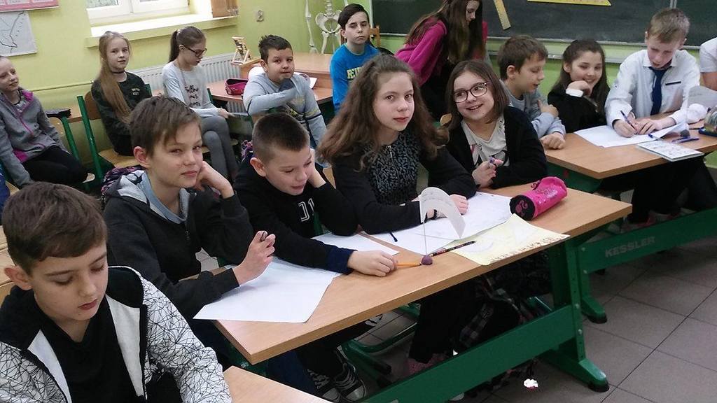 Wszyscy uczniowie z zapałem podeszli do pomysłu obchodu Dnia Matematyki. Zostały zorganizowane dwie sale z tablicami multimedialnymi - jedna dla drużyn uczniów szkoły podstawowej a druga dla gimnazjum. W dniu konkursu, w dobrych humorach przystąpiliśmy do obchodów. W trakcie dwóch lekcji toczyły się potyczki drużyn klasowych, a pozostali uczniowie kibicowali swoim drużynom. Mieli oni również swoje zadanie przygotowania wiersza, fraszki lub hasła o tematyce matematycznej.