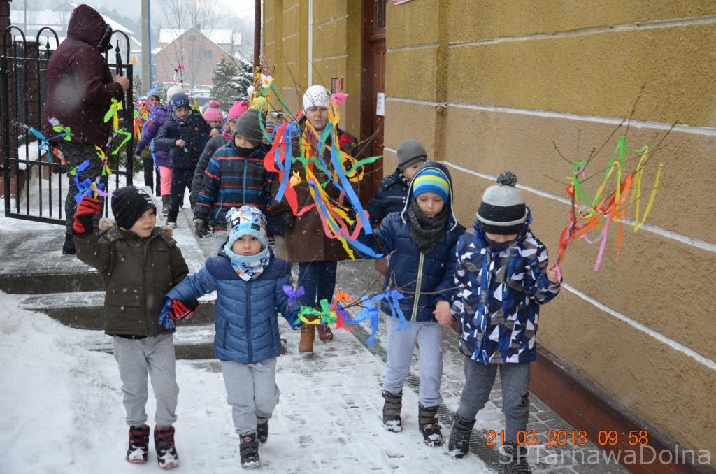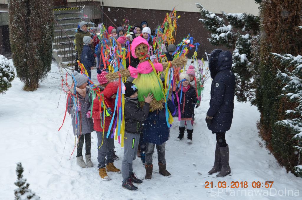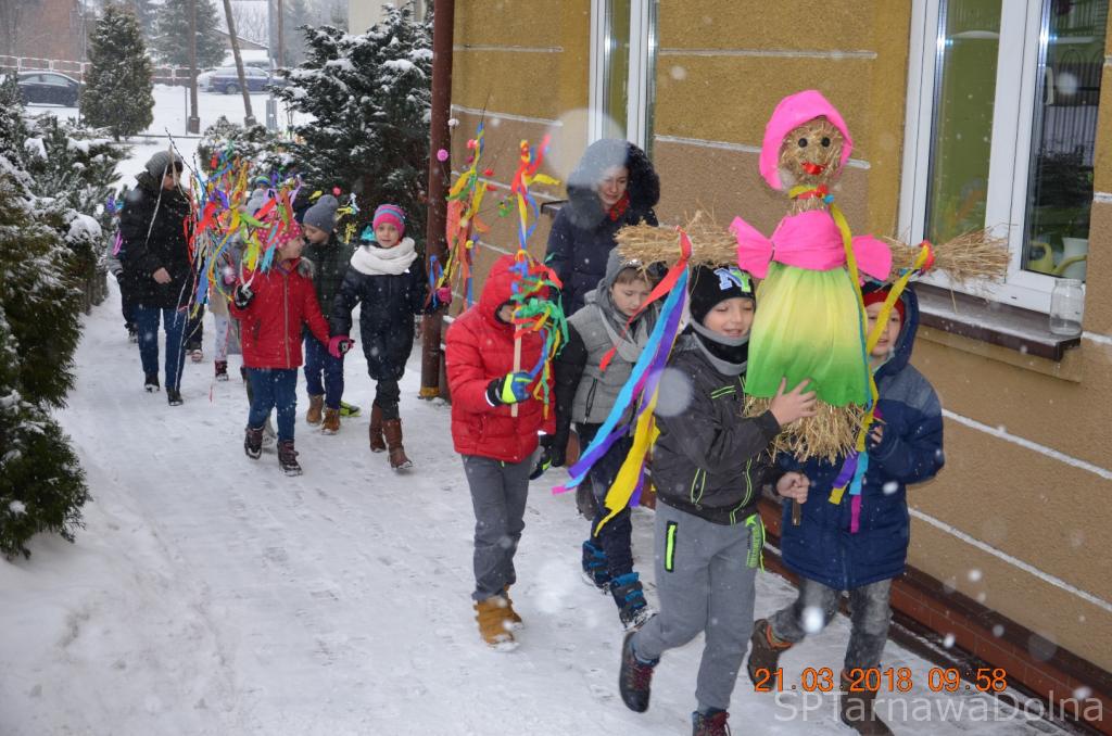 21 marca, jak co roku, Uczniowie klas 0-III w barwnym i wesołym orszaku żegnali zimę. W tym roku nie dała się jednak tak łatwo odpędzić. Mimo licznych wierszyków oraz piosenek, Marzanna jeszcze kilka razy przypominała o sobie prósząc śniegiem. Mamy nadzieję, że wraz z kwietniem już na stałe zawita do nas wiosna.