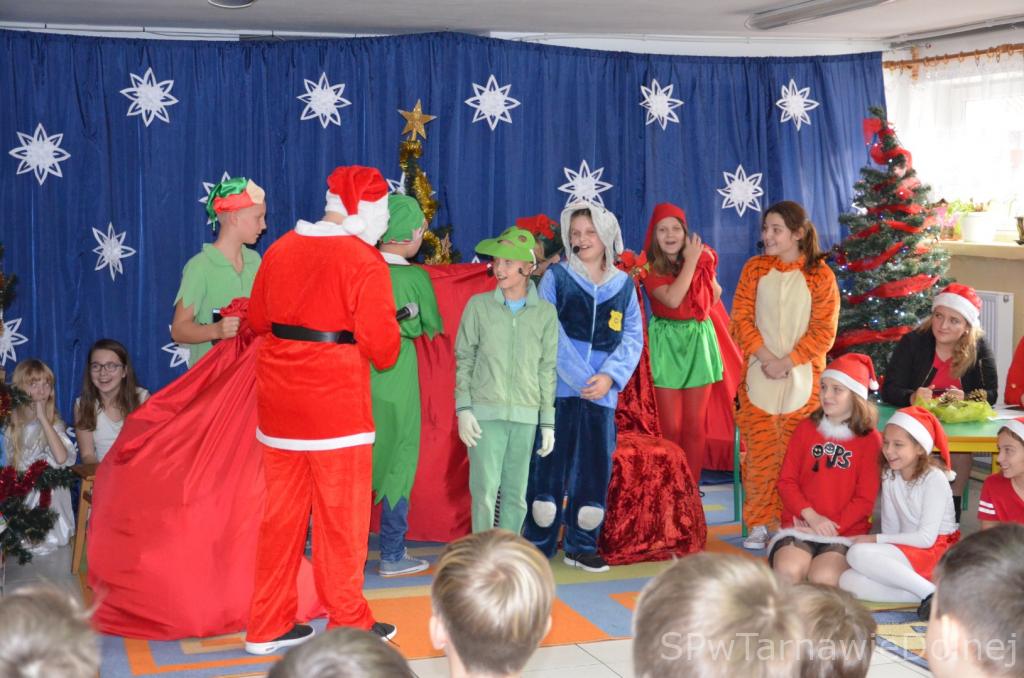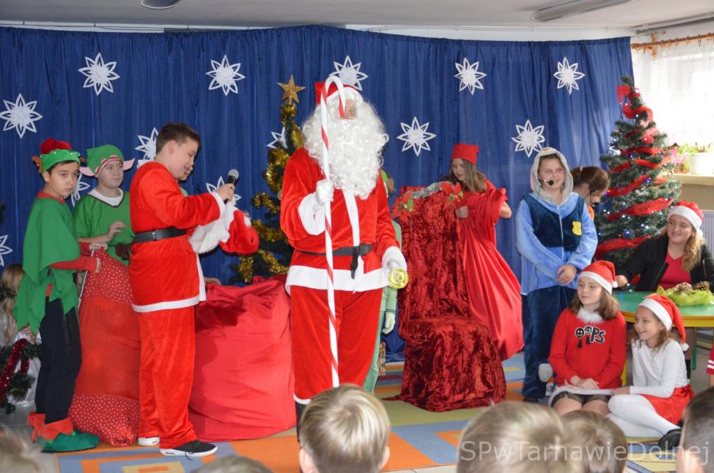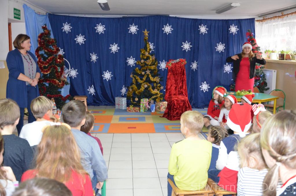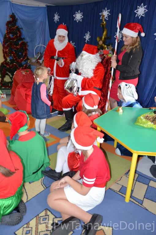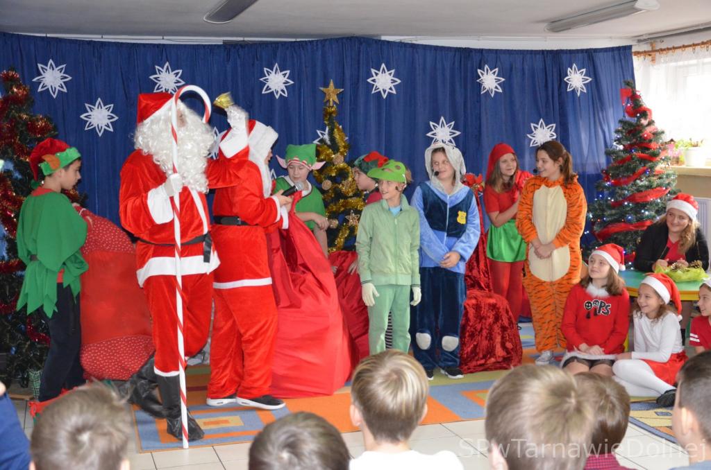 6 grudnia o godzinie 10:00 w świetlicy szkolnej rozpoczęło się mikołajkowe spotkanie, w którym wzięli udział uczniowie klas 0-III naszej szkoły oraz najmłodsi reprezentanci tarnawskiej społeczności wraz ze swymi rodzicami. Wizytę wyjątkowego i długi wyczekiwango gościa uświetniła zaprezentowana przez uczniów część artystyczna, na którą złożyły się: taniec śnieżynek, bajka dydaktyczna o niegrzecznym tygrysku oraz kilka mikołajkowych piosenek. Następnie Mikołaj z pomocą elfów przystąpił do rozdawania prezentów. Krótka rozmowa z każdym obdarowywanym dzieckiem i wspólne pamiątkowe zdjęcie z pewnością pozwolą na długo zachować w pamięci to wydarzenie.