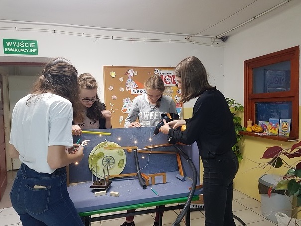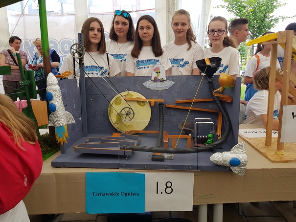 Nasze reprezentantki miały za zadanie zaprojektowanie i zbudowanie urządzenia, które przy wykorzystaniu różnego rodzaju zjawisk i praw fizyki przetransportuje metalową kulkę z jednego swojego końca na drugi.