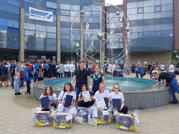 1 czerwca bieżącego roku uczennice z VIII klasy naszej szkoły: Małgorzata Bik, Paulina Głuszek, Magdalena Kulig, Beata Łasak i Justyna Pająk wzięły udział w kolejnej już VII edycji Ogólnopolskiego Konkursu "Eksperyment Łańcuchowy" organizowanego pod patronatem wydziału fizyki Uniwersytetu Jagiellońskiego. Konkurs adresowany był do wszystkich zainteresowanych, a więc zarówno do przedszkolaków, uczniów, studentów, rodzin.
