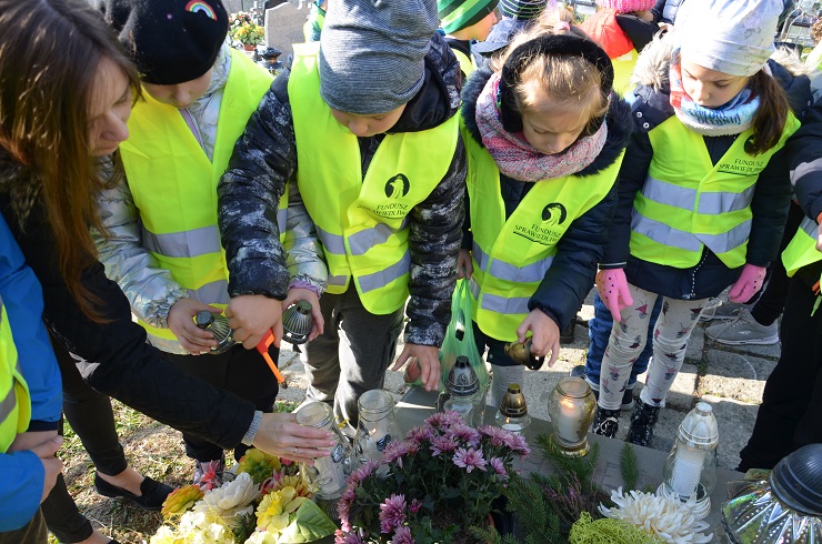0 – III Szkoły Podstawowej wyruszyły na cmentarz. Uczniowie poszczególnych klas zabrali ze sobą wcześniej przygotowane przez siebie znicze. Przed bramą cmentarza wychowawcy przypomnieli podopiecznym, że w miejscu, w którym się znajdują należy się odpowiednio zachowywać. Dzieci, jako pierwsze odwiedziły groby poległych w obronie ojczyzny żołnierzy oraz partyzantów. Wychowawcy przedstawili dzieciom, kto w tych grobach leży i dlaczego. Uczniowie zapalili znicze, złożyli wiązankę kwiatów i uczcili zmarłych minutą ciszy. Następnie, każdy mógł pójść pomodlić się nad grobem swoich bliskich. Na cmentarzu dzieci zachowywały się w sposób bardzo dojrzały i okazały zmarłym szacunek.