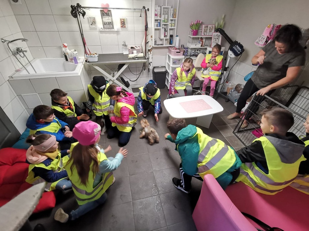 Przedszkolaki wykonywały również prace plastyczne: chłopcy boisko do piłkarzyków, a dziewczyny ozdziały paznokcie, na wyciętej z papieru dłoni. Klasy I-III przygotowywały się natomiast do odwiedzin Salonu Pielęgnacji i Strzyżenia Psów w Tarnawie Dolnej.