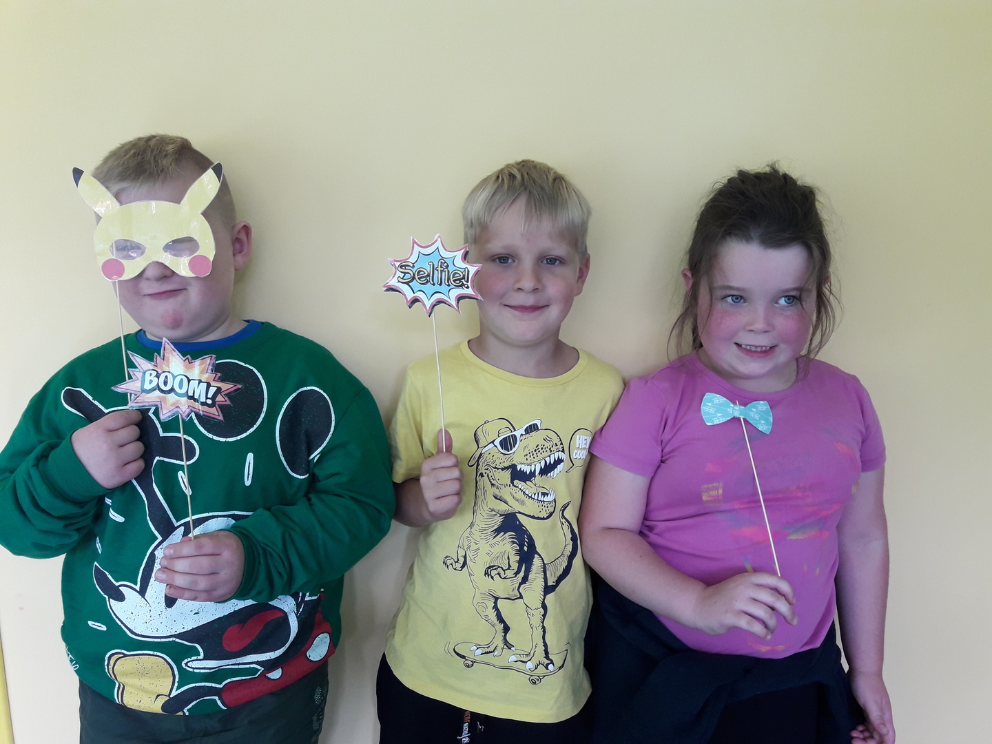 Świętowanie przedszkolakom umiliły również tańce. Dzieci bardzo chętnie wykonywały zaproponowane układy taneczne do piosenek. Kolejną atrakcją była „fotobudka”, gdzie przedszkolaki pozowały do zdjęć z zabawnymi gadżetami.