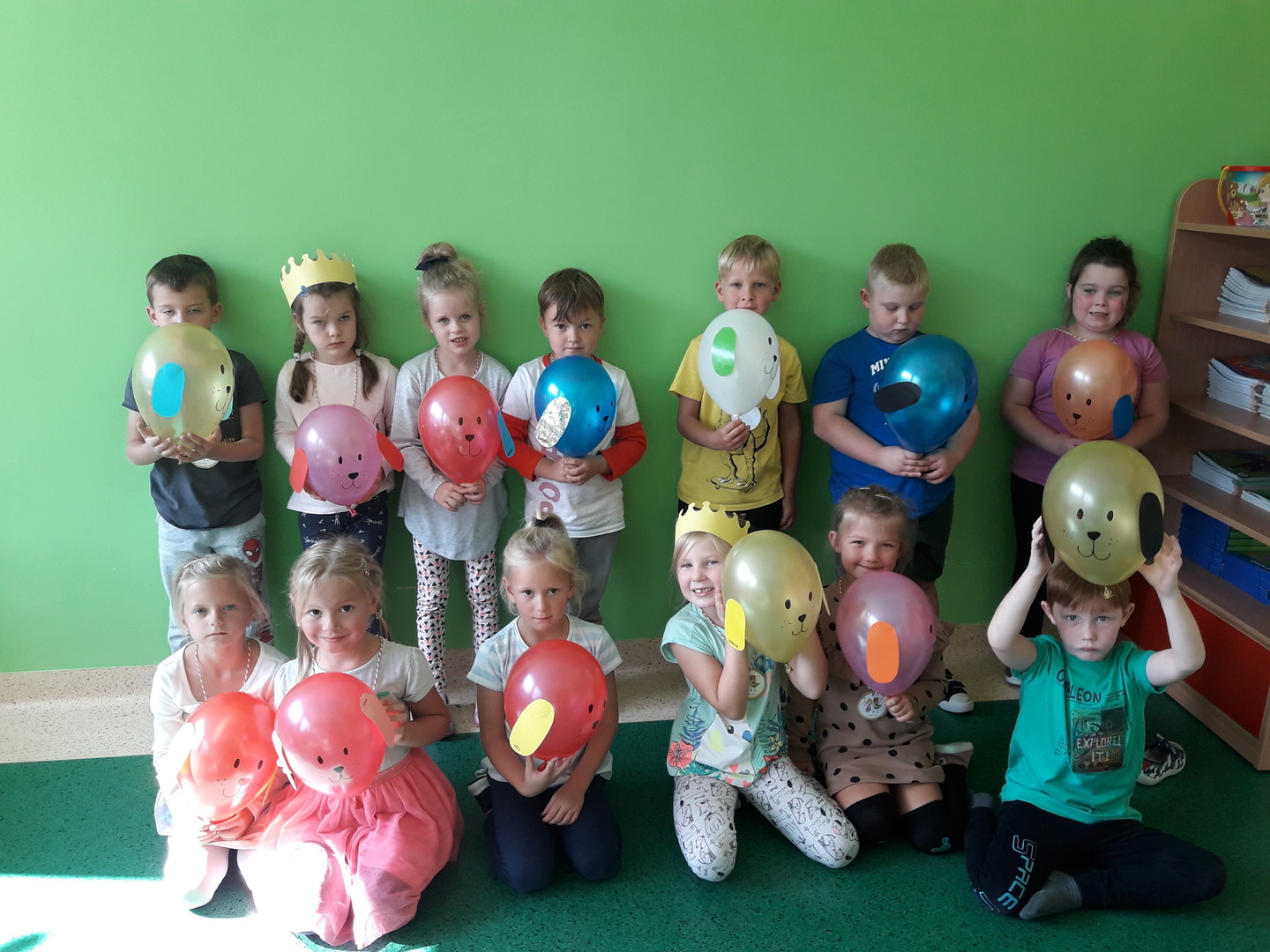 W tym wyjątkowym dniu nie mogło zabraknąć również balonów. Wykorzystaliśmy je do zrobienia ciekawej pracy plastycznej- balonowych piesków. Zabawę zakończyliśmy rozdaniem medali dla wszystkich przedszkolaków oraz zabawami na przedszkolnym placu zabaw.