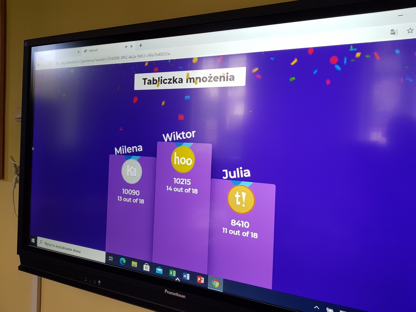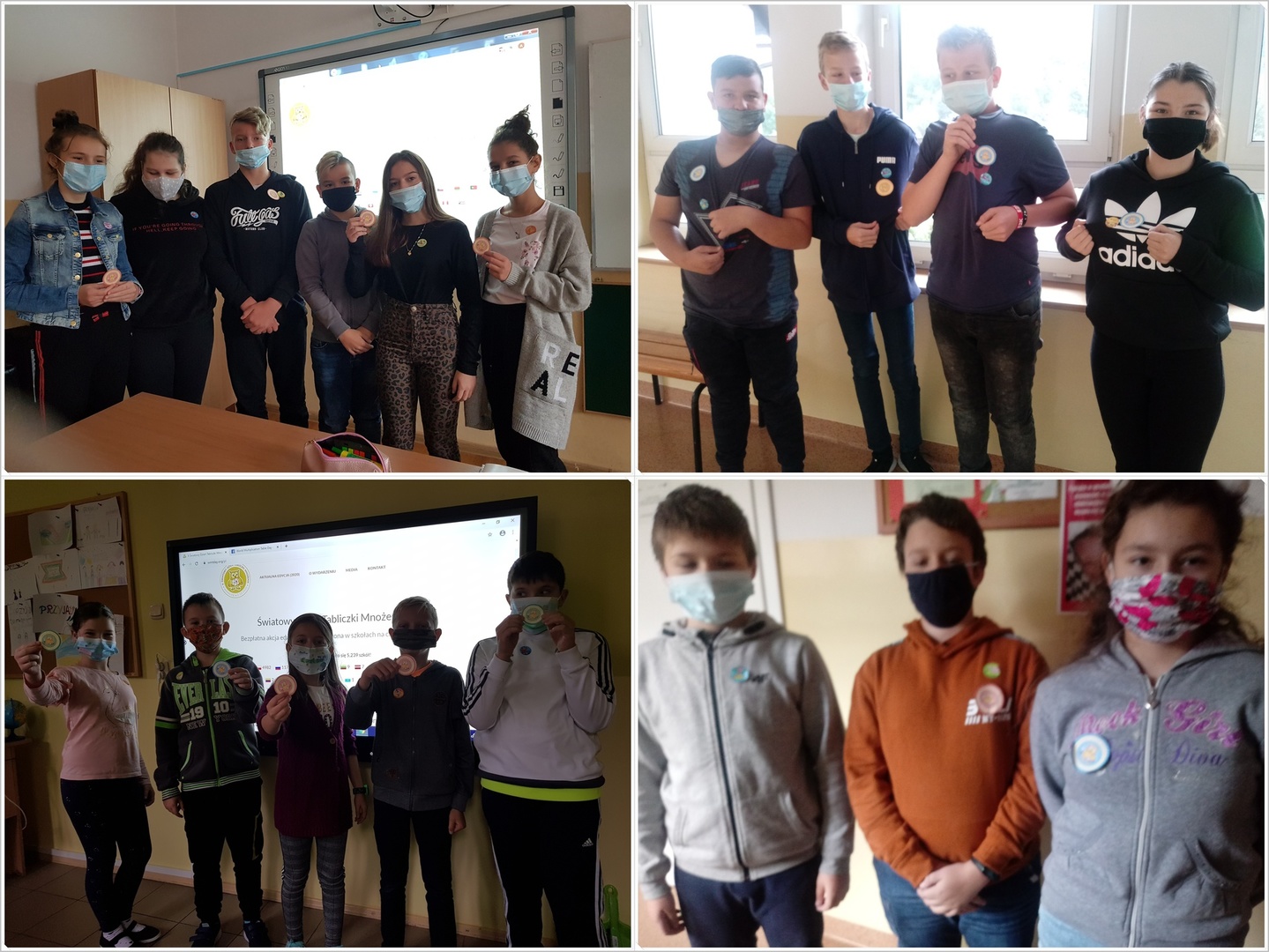 W dniu właściwych obchodów, na lekcjach matematyki uczniowie przystąpili do zmagań o tytuł Mistrza Tabliczki Mnożenia. Na otrzymanych losowo kartach pracy sprawdzali się w umiejętnościach rachunkowych. Uczniowie z bezbłędnymi pracami zostali udekorowani mistrzowskim medalem oraz okolicznościowymi zachętkami. Ponadto uczniowie klasy IV wzięli udział w Kahoot!-owych zmaganiach z tabliczką, a uczniowie klasy V zdobywali odznaki na stronie internetowej matzoo.pl.
