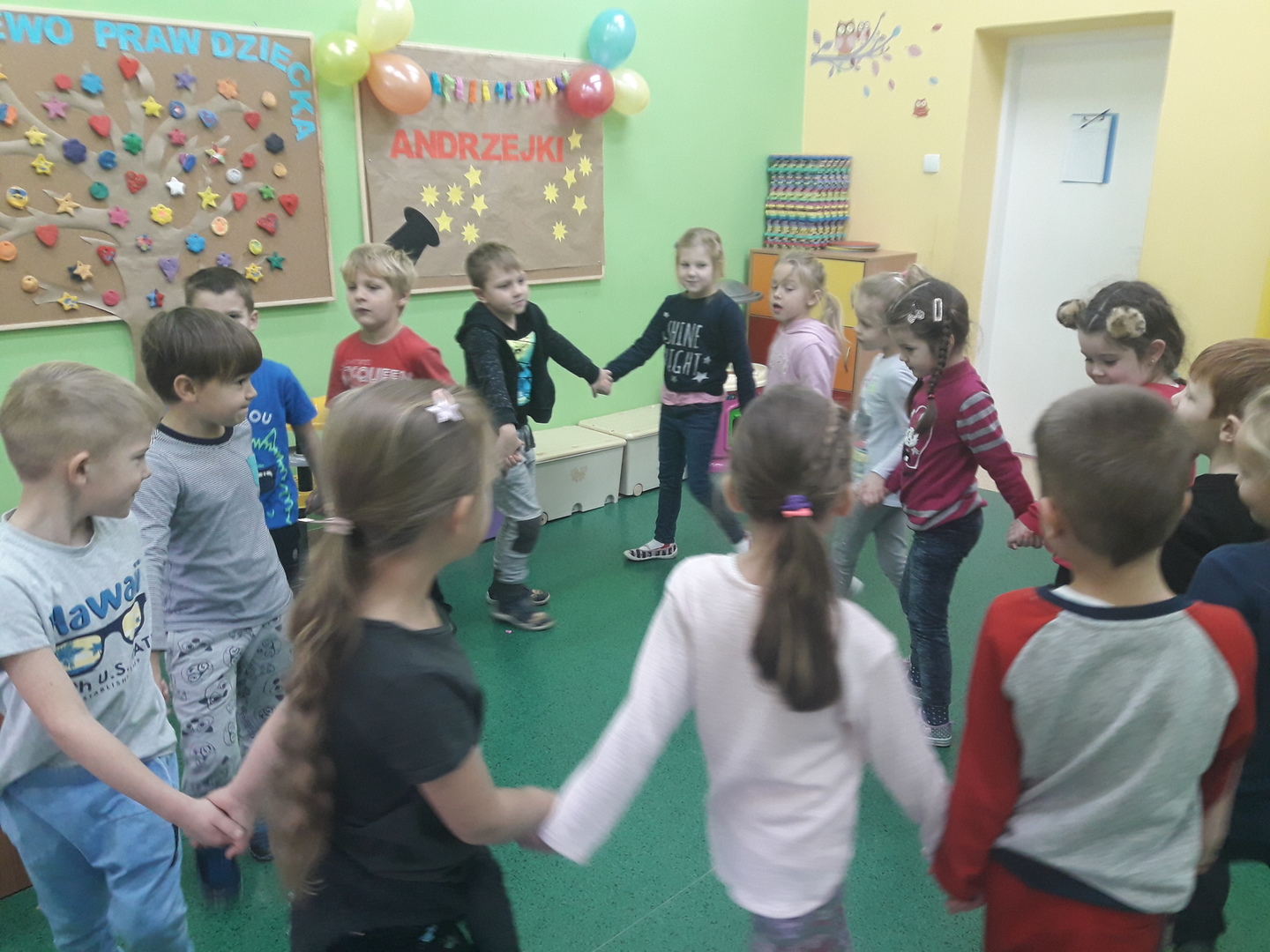 30 listopada przedszkolaki z naszej szkoły świętowały Andrzejki. Przedszkolaki za pomocą wróżb próbowały spojrzeć w przyszłość. Losowali owoce, które symbolizowały najważniejszą cechę charatkeru. Na kole zawodów najmłodsi uczniowie sprawdzali, jaki zawód będą najprawodpodobniej wykonywać w przyszłości, a rzut kostkami i wylosowana liczba oczek miała ujawnić, na co trzeba zwracać uwagę w nabliższym czasie. Dziewczynki z grupy maluszków chętnie wykonywały wróżbę z serduszkami, aby poznać imię swojego przyszłego wybranka serca. Młodsze przedszkolaki wykonały również tradycyjną wróżbę z wyścigiem butów. W czasie andrzejkowej zabawy nie zabrakło również tańców i zabaw z balonem.