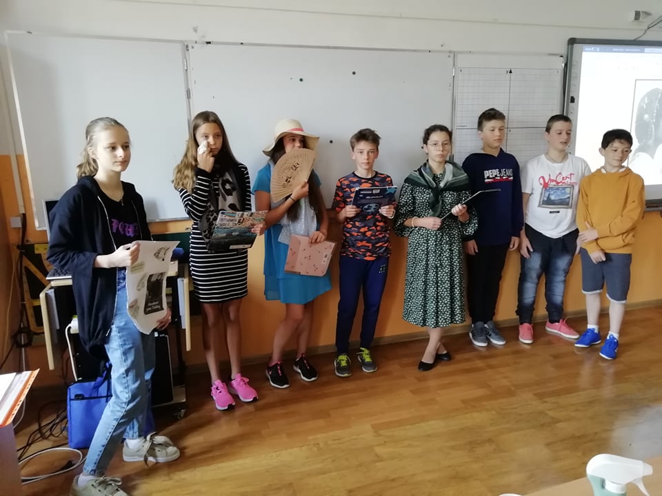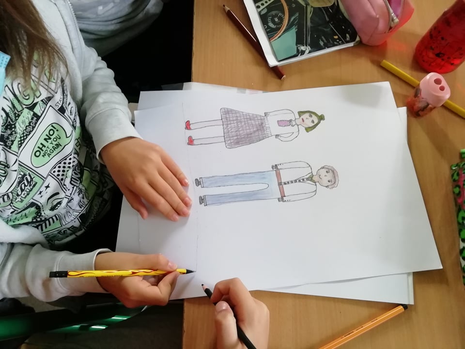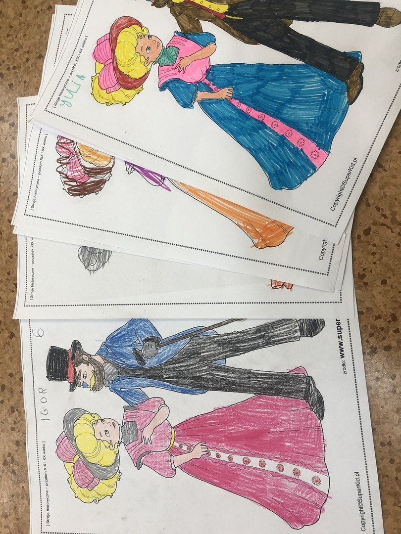 Uczniowie klas IV-VI samodzielnie projektowali stroje z epoki, natomiast klasy VII-VIII oddały się głośnej lekturze połączonej z próbą inscenizacji.