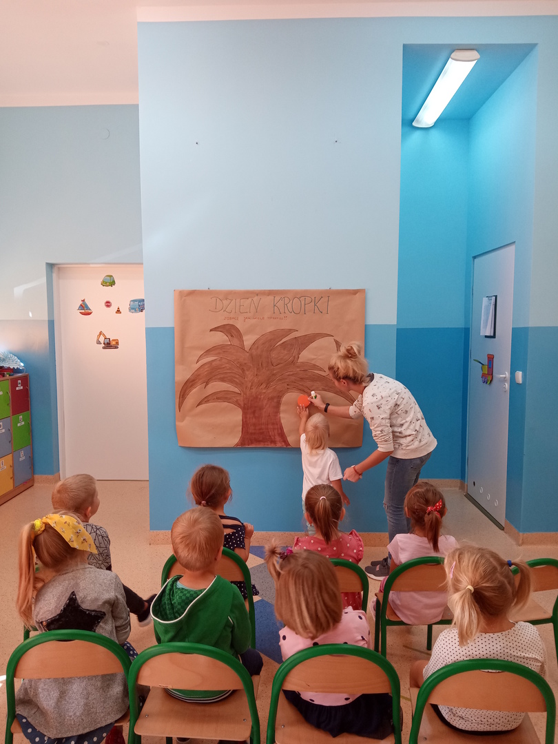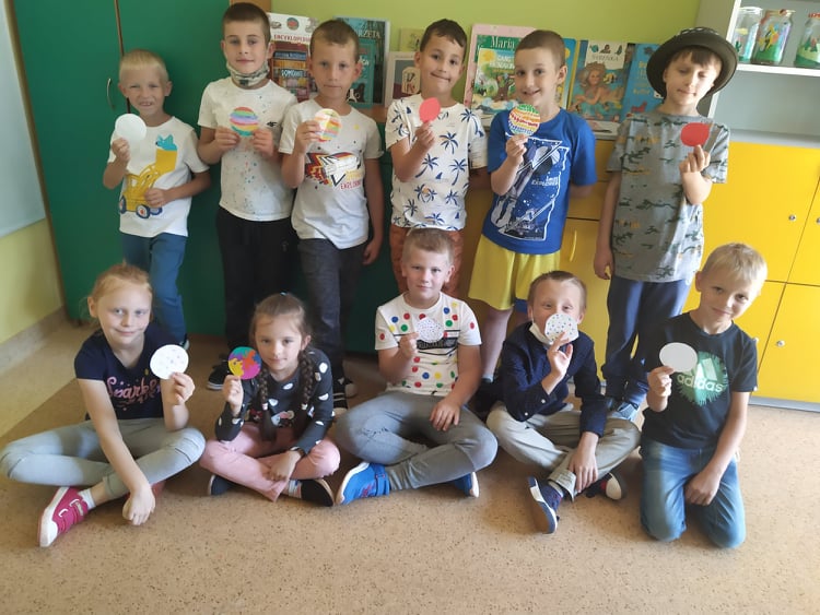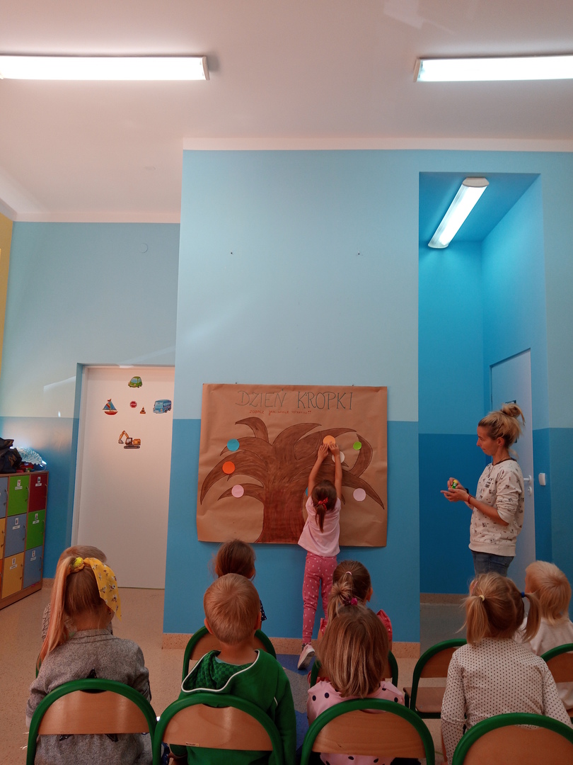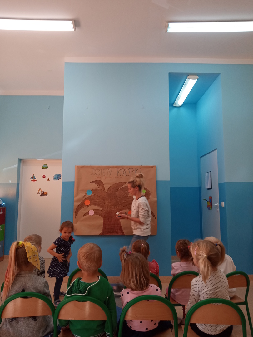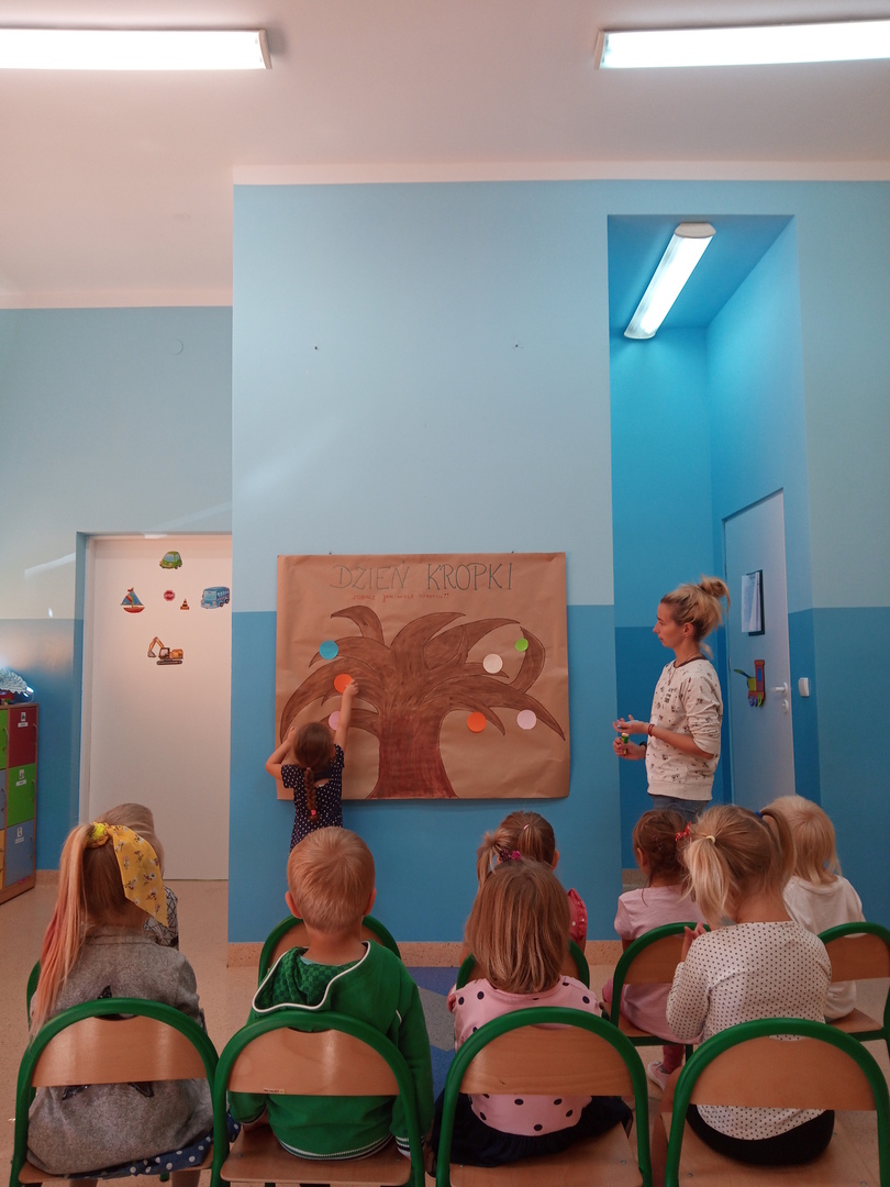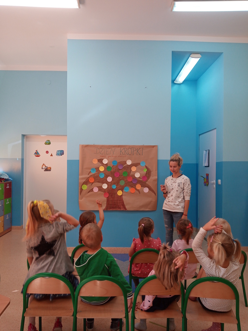 Najmłodsi uczniowie wykonywali również różnego rodzaju prace plastyczne z kropkami w tle, ale Dzień Kropki to nie tylko rozwój talentów plastycznych. Uczniowie mogli wykazać się także w sporcie, podczas zakropkowanych aktywności fizycznych na w-fie. To dopiero była zabawa! :)