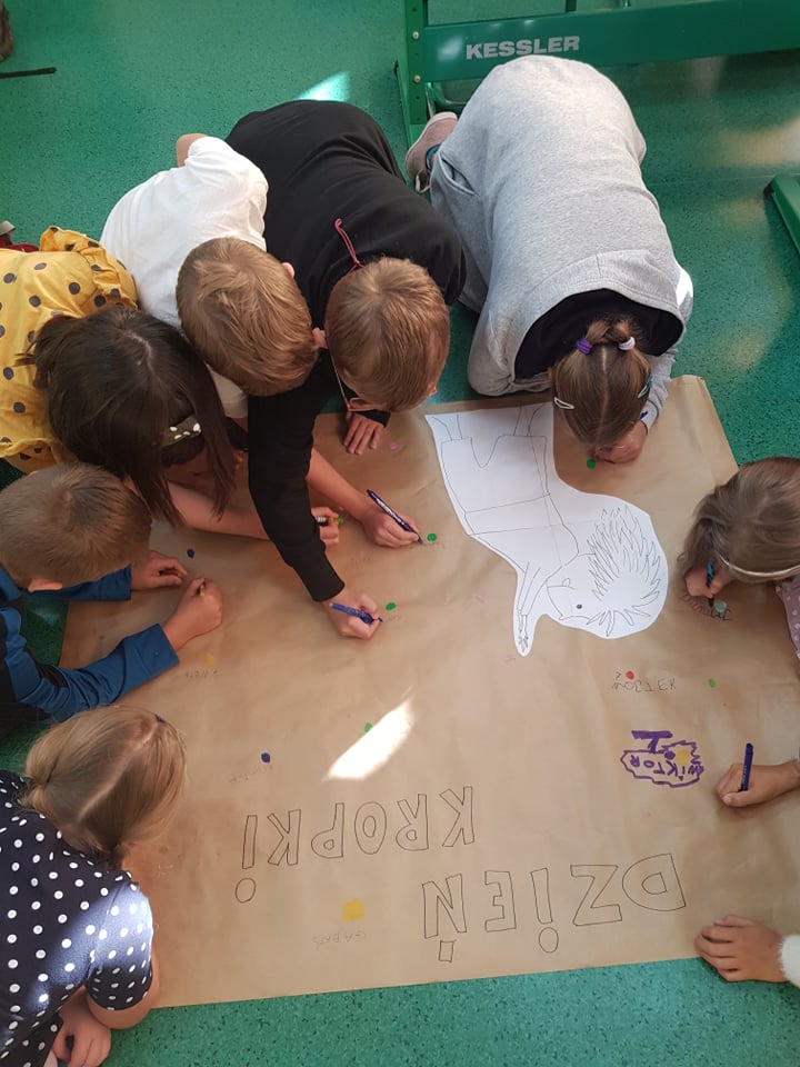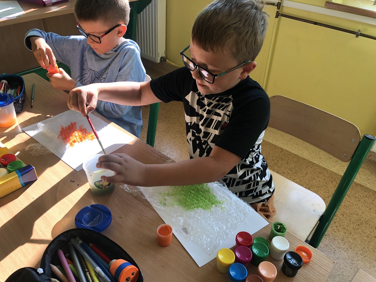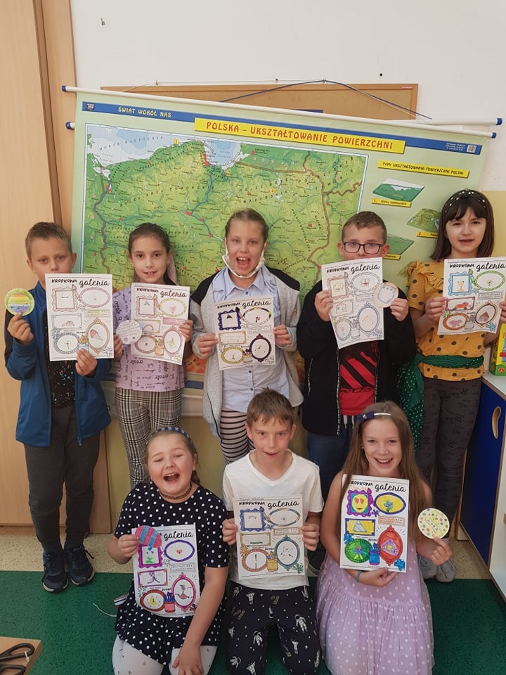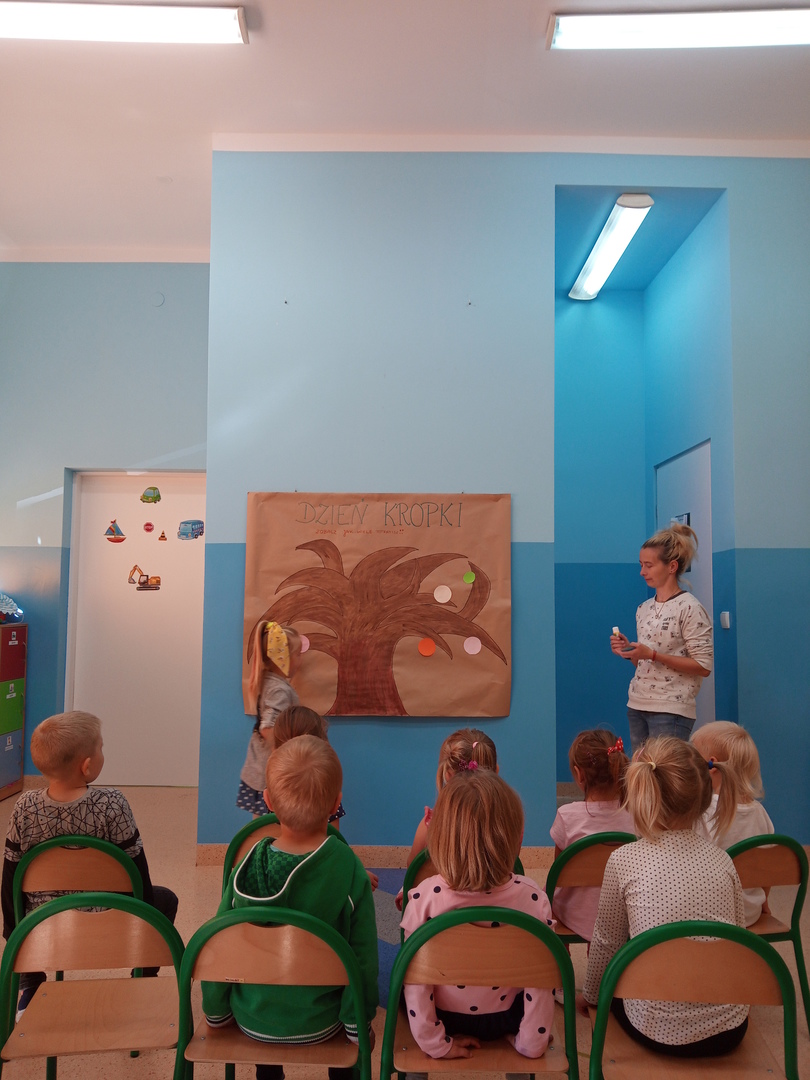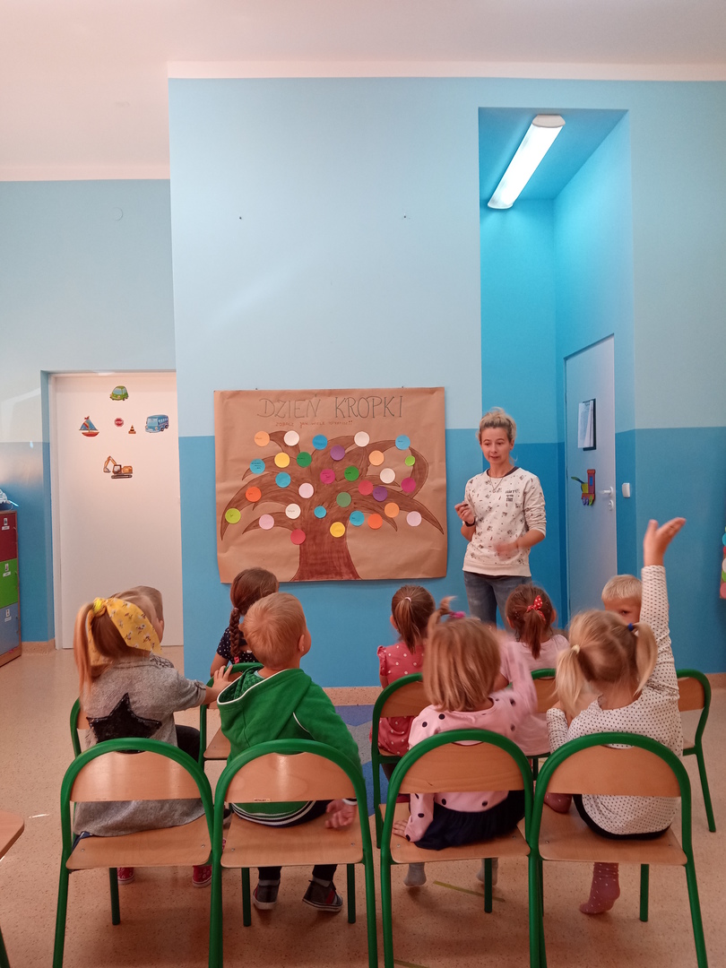 Najmłodsi uczniowie wykonywali również różnego rodzaju prace plastyczne z kropkami w tle, ale Dzień Kropki to nie tylko rozwój talentów plastycznych. Uczniowie mogli wykazać się także w sporcie, podczas zakropkowanych aktywności fizycznych na w-fie. To dopiero była zabawa! :)