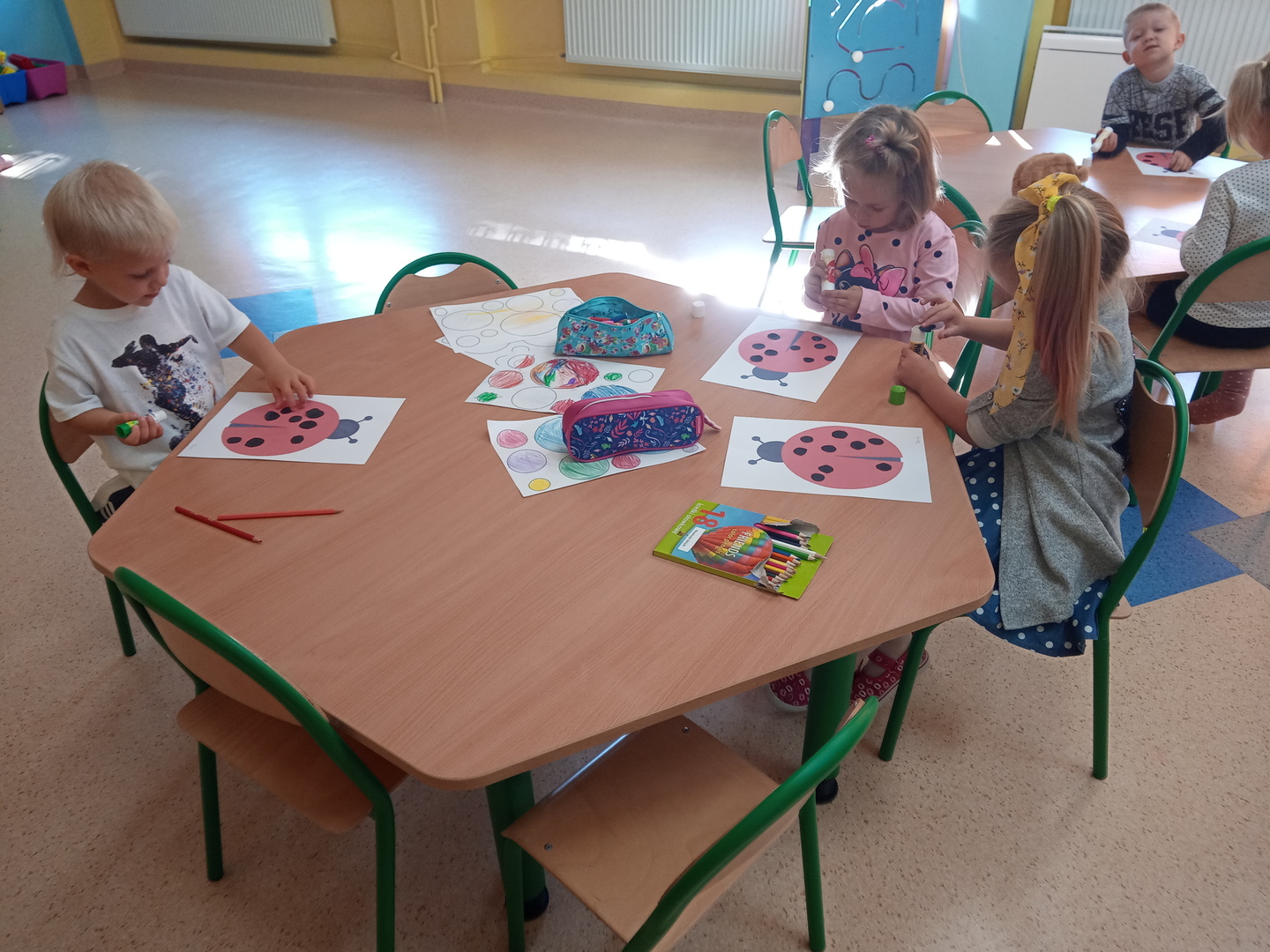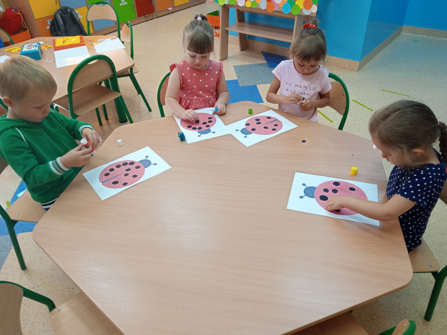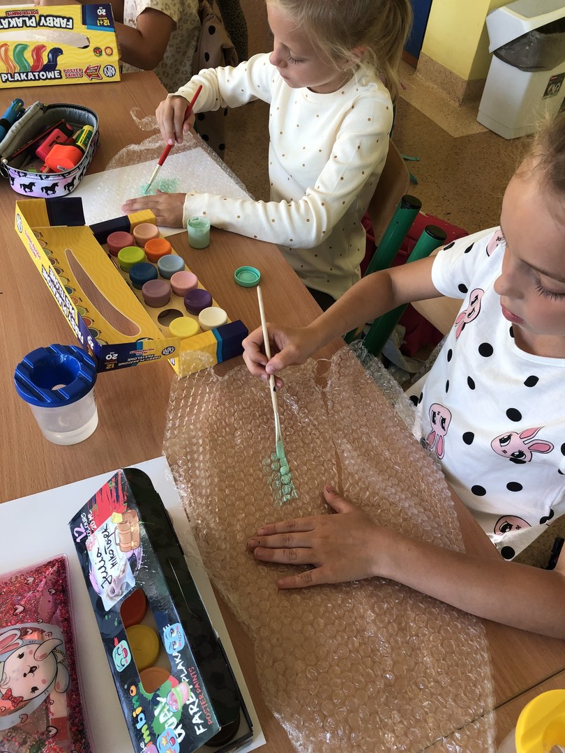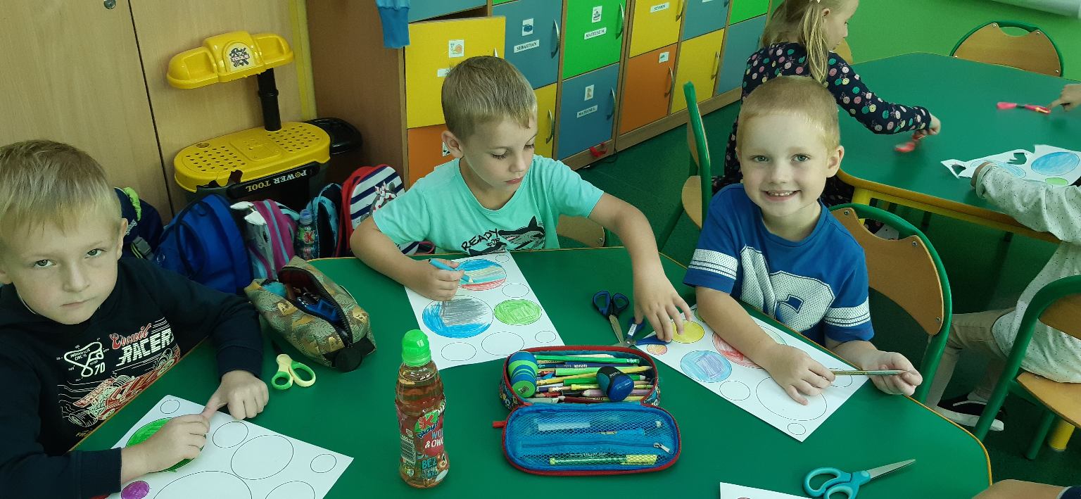 Najmłodsi uczniowie wykonywali również różnego rodzaju prace plastyczne z kropkami w tle, ale Dzień Kropki to nie tylko rozwój talentów plastycznych. Uczniowie mogli wykazać się także w sporcie, podczas zakropkowanych aktywności fizycznych na w-fie. To dopiero była zabawa! :)