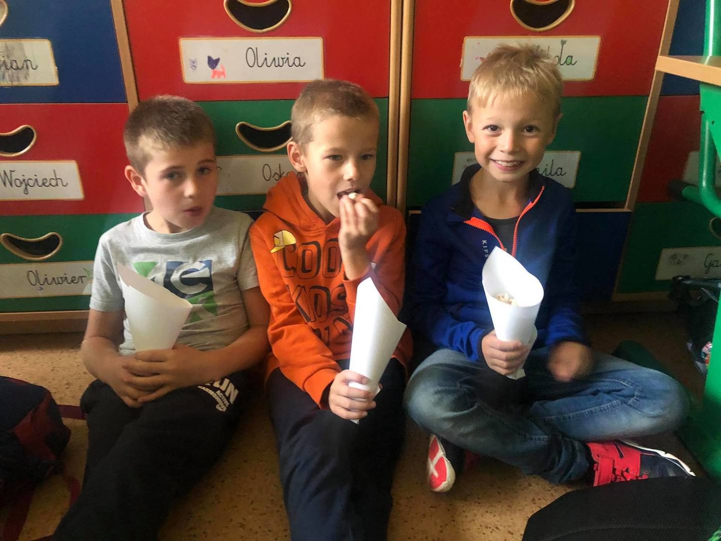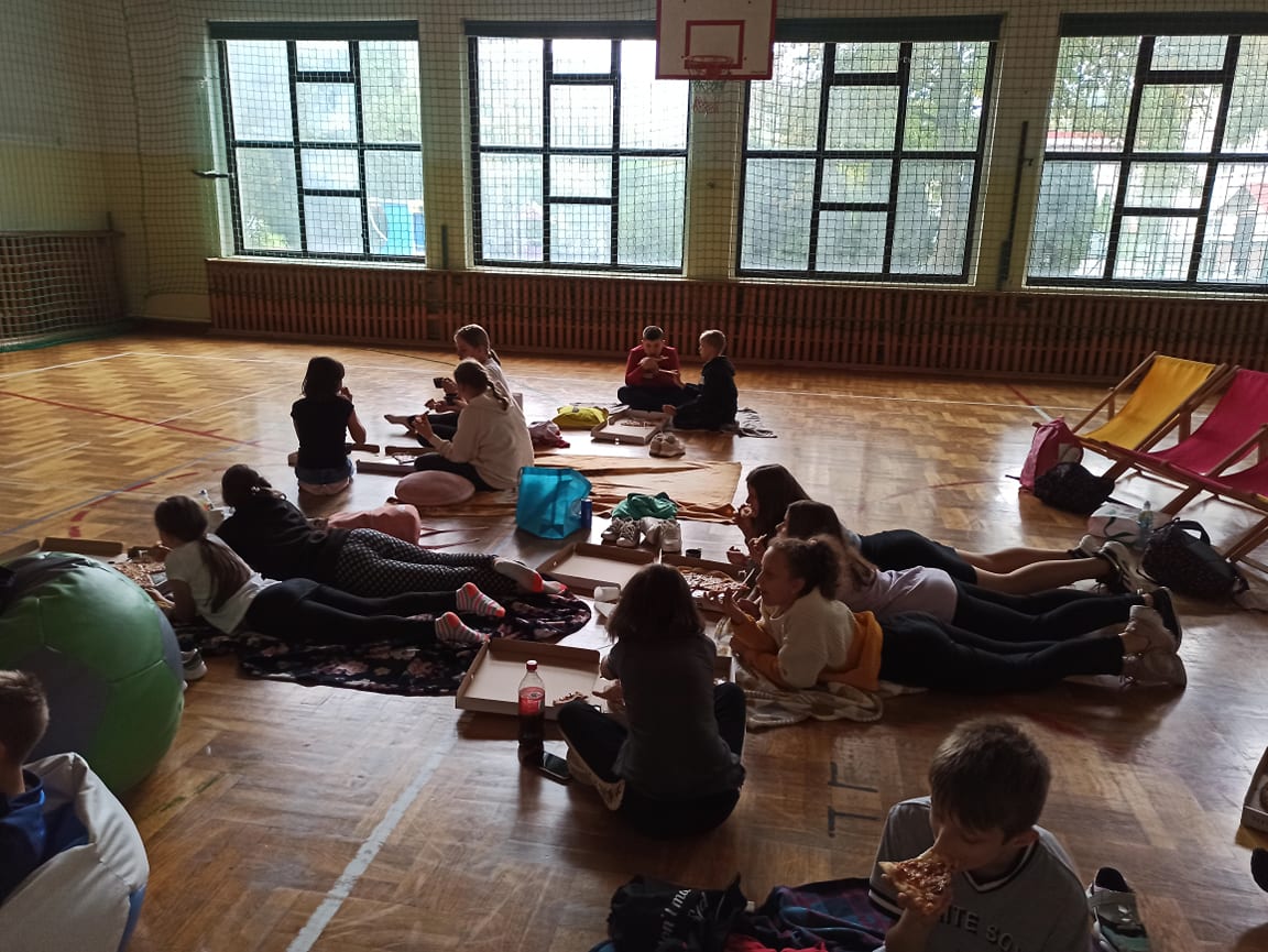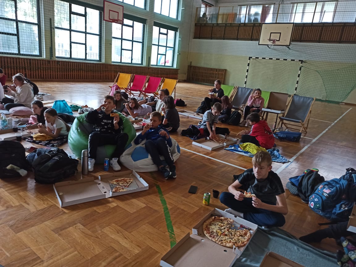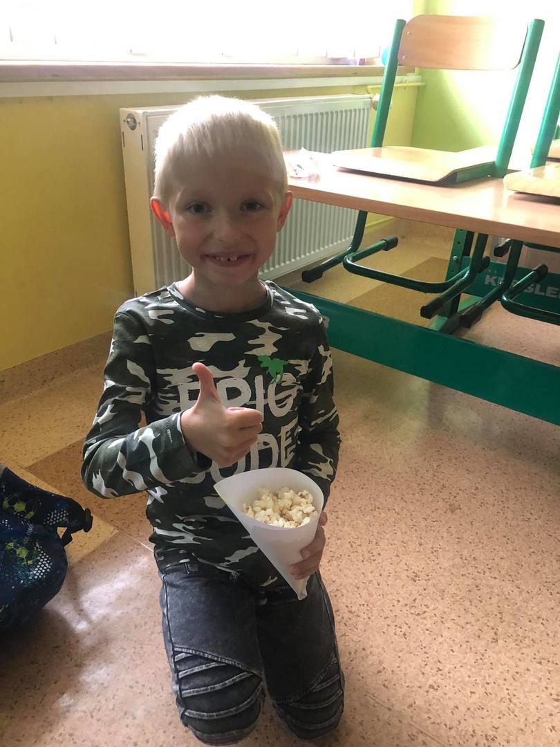 do serdecznych życzeń dołączyły drobne upominki i łakocie. Uczniowie klas I-III spędzili ten dzień na wesoło, oglądając film animowany i zajdając się popcornem. Każdy chętny chłopiec mógł także poczuć się jak prawdziwy superbohater robiąc sobie zabawne zdjęcie :) Po południu dla dzieci z klas IV-VI zorganizowany został seans filmowy w sali gimnastycznej. Zajadali się również zamówioną specjalnie na tę wyjątkową okazję pizzą. Z kolei starsi uczniowie z klas VII-VIII wybrali się wraz z wychowawcami do Krakowa na seans filmowy pt. „Psi patrol”.