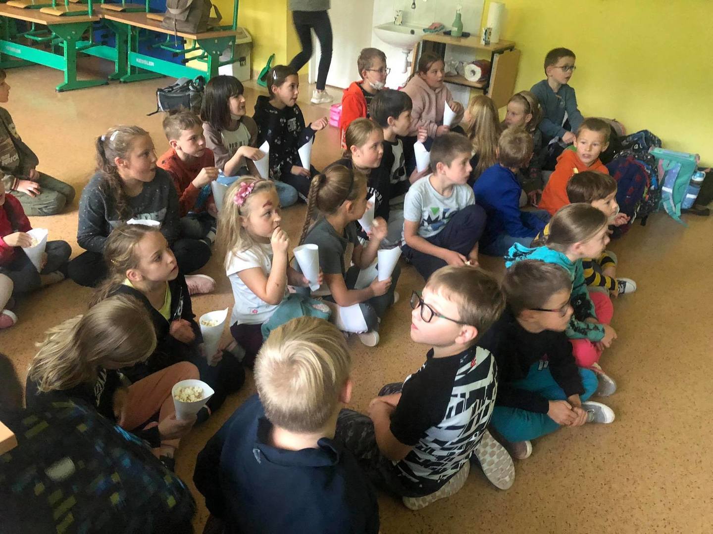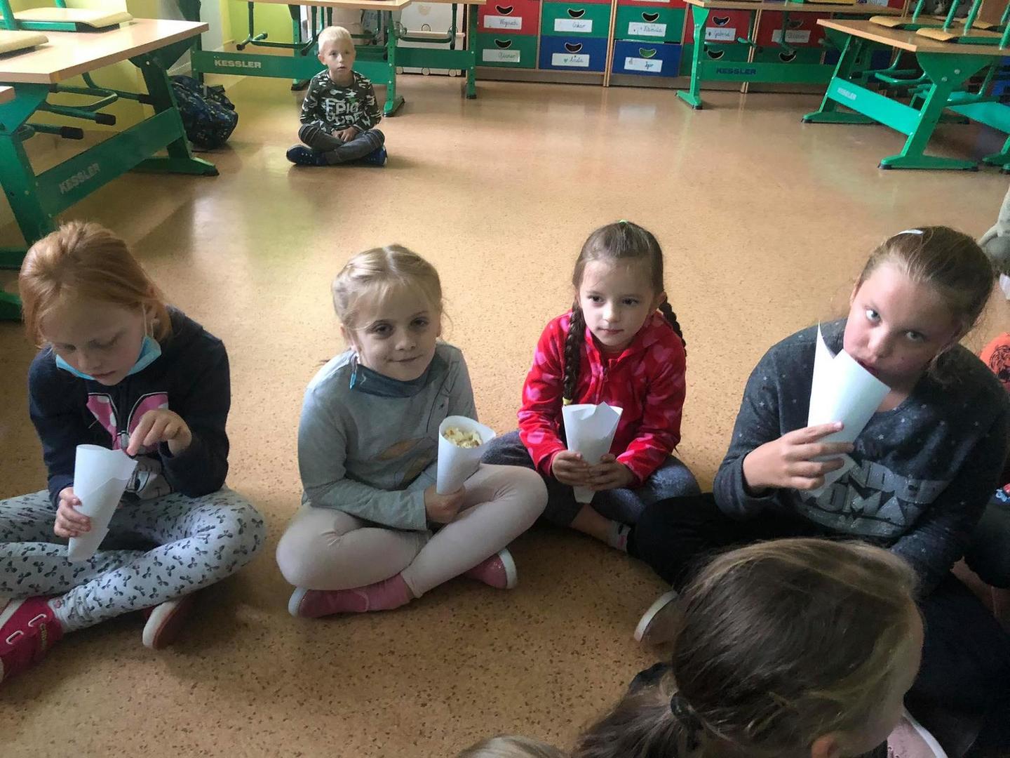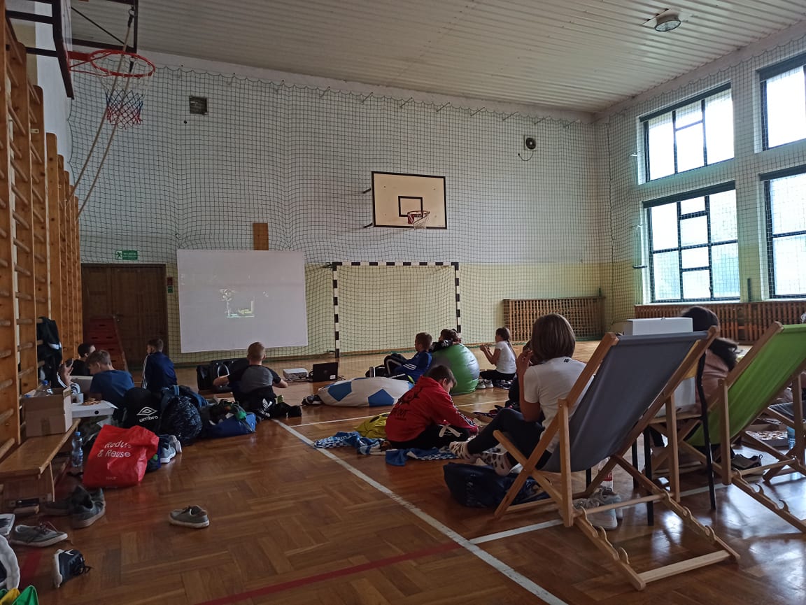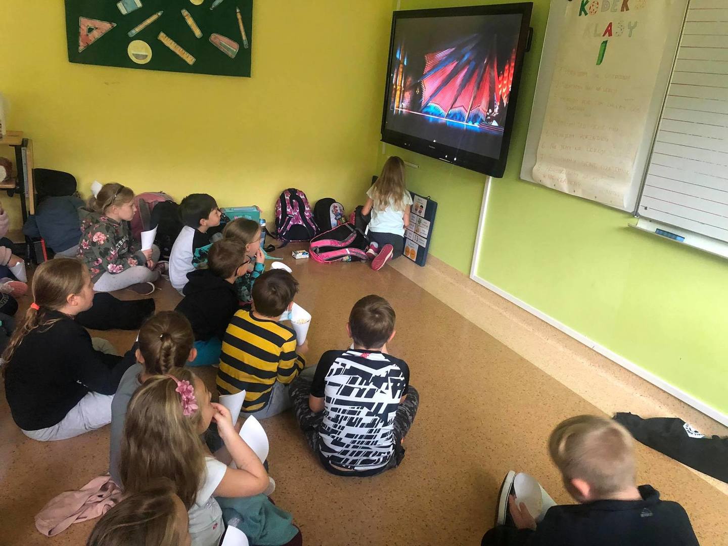 do serdecznych życzeń dołączyły drobne upominki i łakocie. Uczniowie klas I-III spędzili ten dzień na wesoło, oglądając film animowany i zajdając się popcornem. Każdy chętny chłopiec mógł także poczuć się jak prawdziwy superbohater robiąc sobie zabawne zdjęcie :) Po południu dla dzieci z klas IV-VI zorganizowany został seans filmowy w sali gimnastycznej. Zajadali się również zamówioną specjalnie na tę wyjątkową okazję pizzą. Z kolei starsi uczniowie z klas VII-VIII wybrali się wraz z wychowawcami do Krakowa na seans filmowy pt. „Psi patrol”.