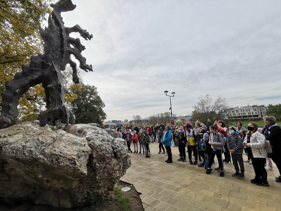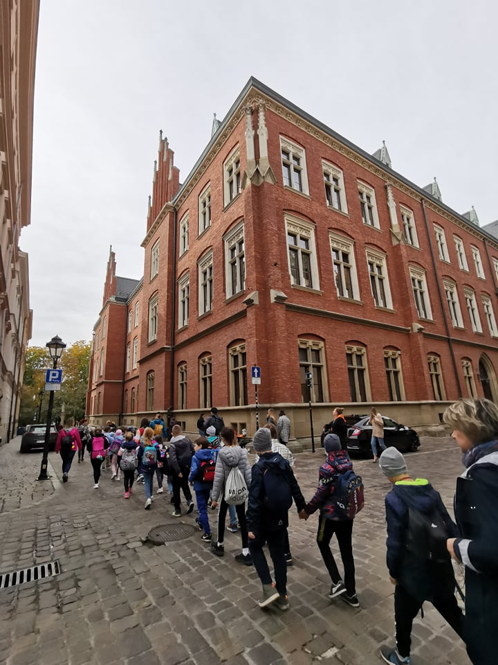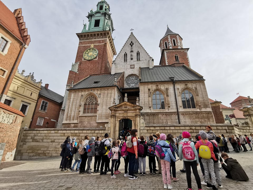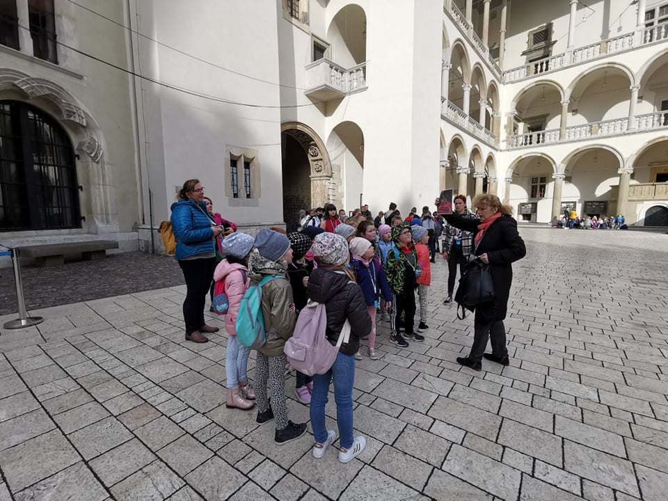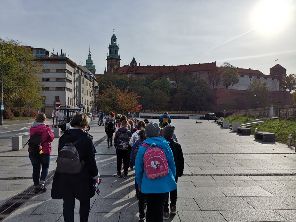 W ramach pierwszego punktu - zwiedzania Krakowa - historycznego zespołu miasta, uczniowie wraz z opiekunami oraz przewodnikiem zwiedzali Wzgórze Wawelskie oraz sprawdzili czy w jamie pod Wawelem nadal mieszka Smok Wawelski. Na rynku zobaczyli Sukiennice, Wieżę Ratuszową i Kościół Mariacki. Spacerowali historycznymi uliczkami miasta Krakowa i odwiedzili dzielnicę uniwersytecką.