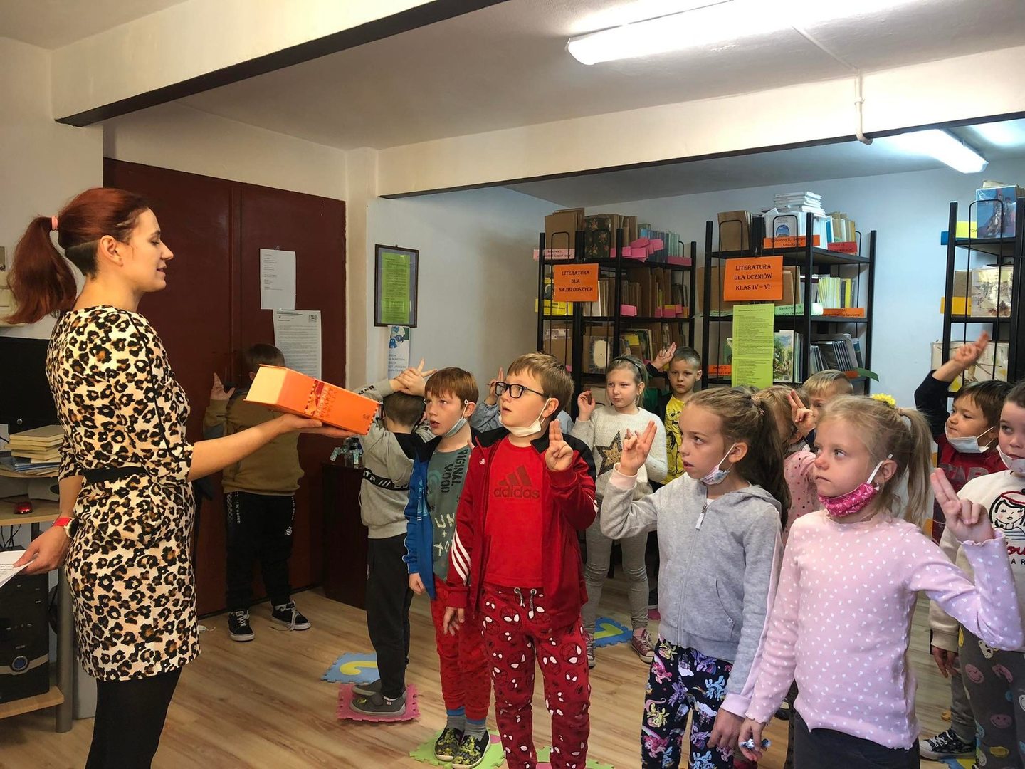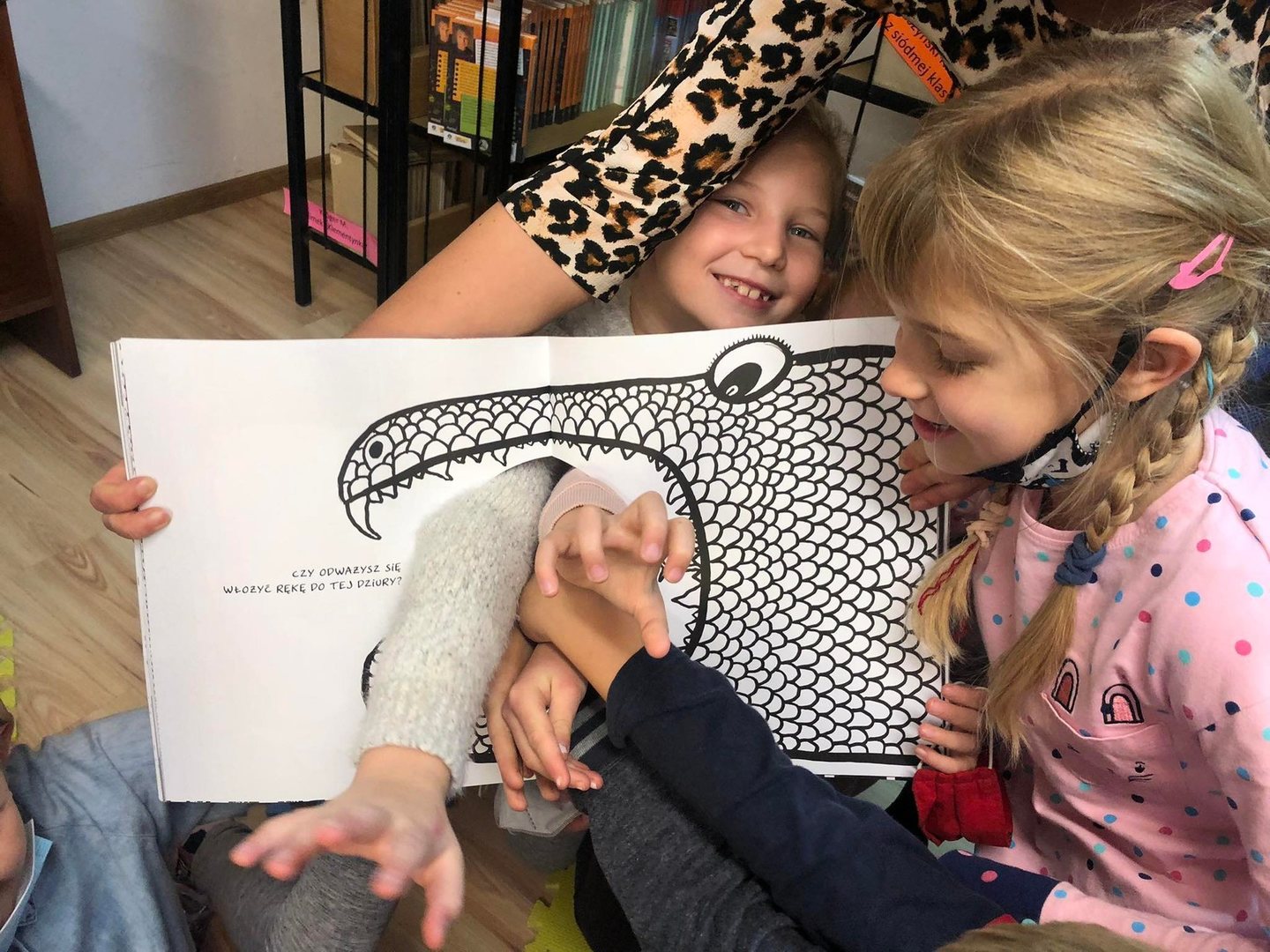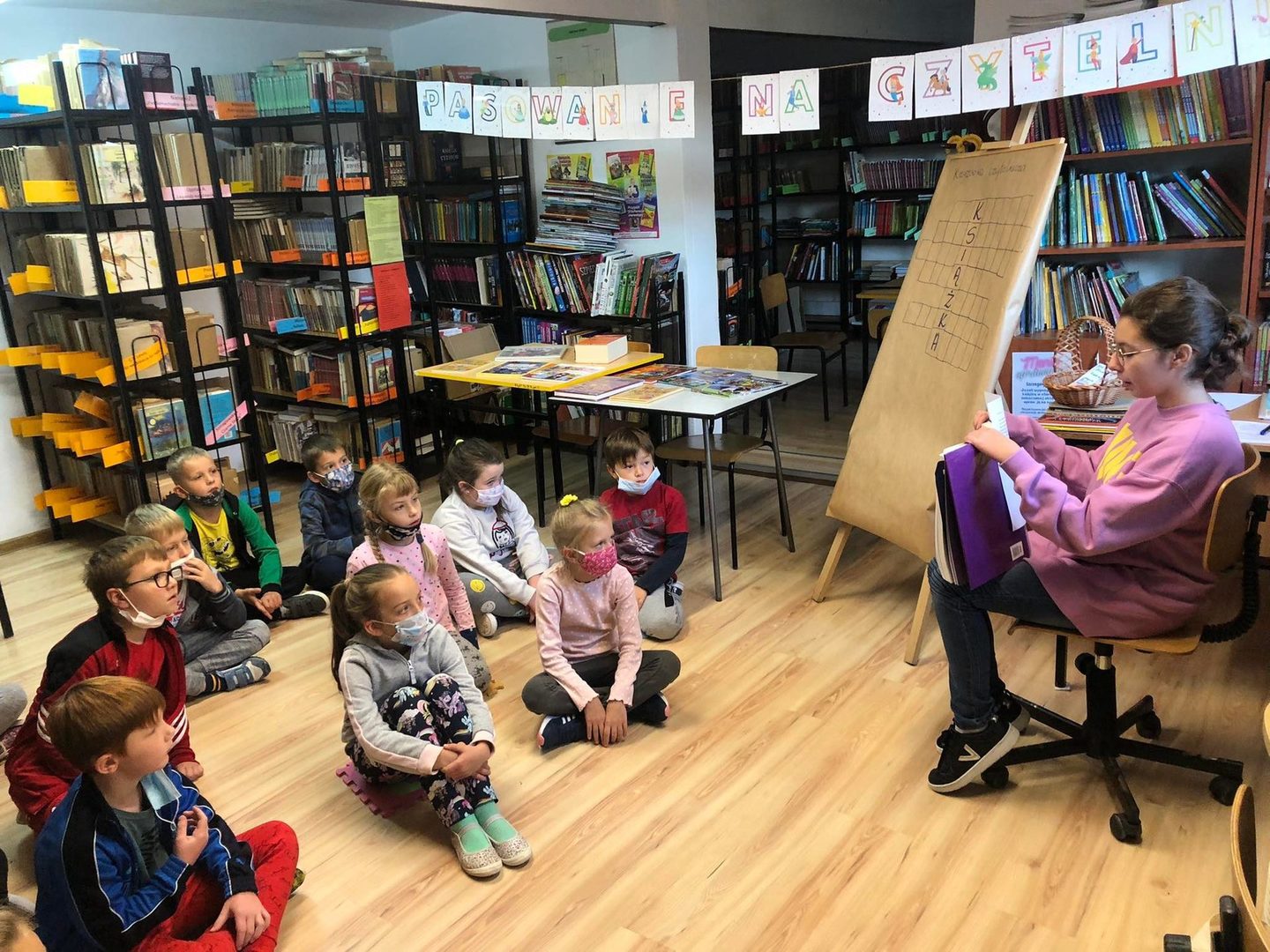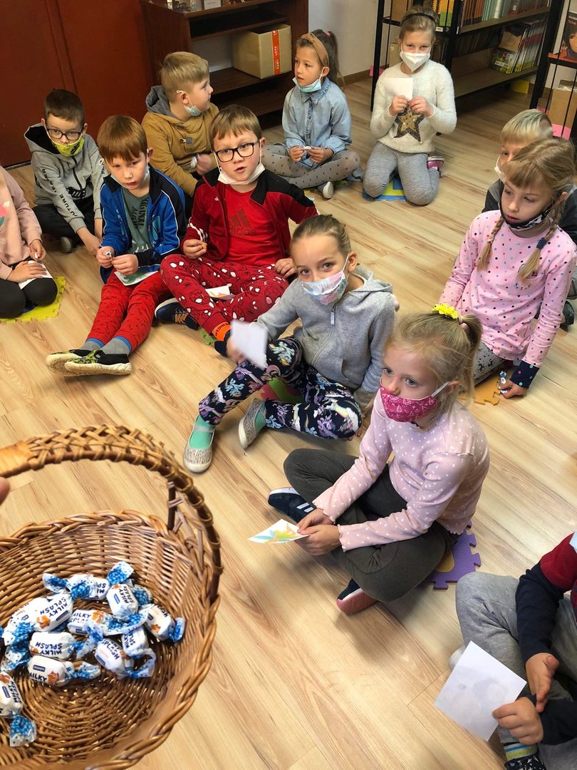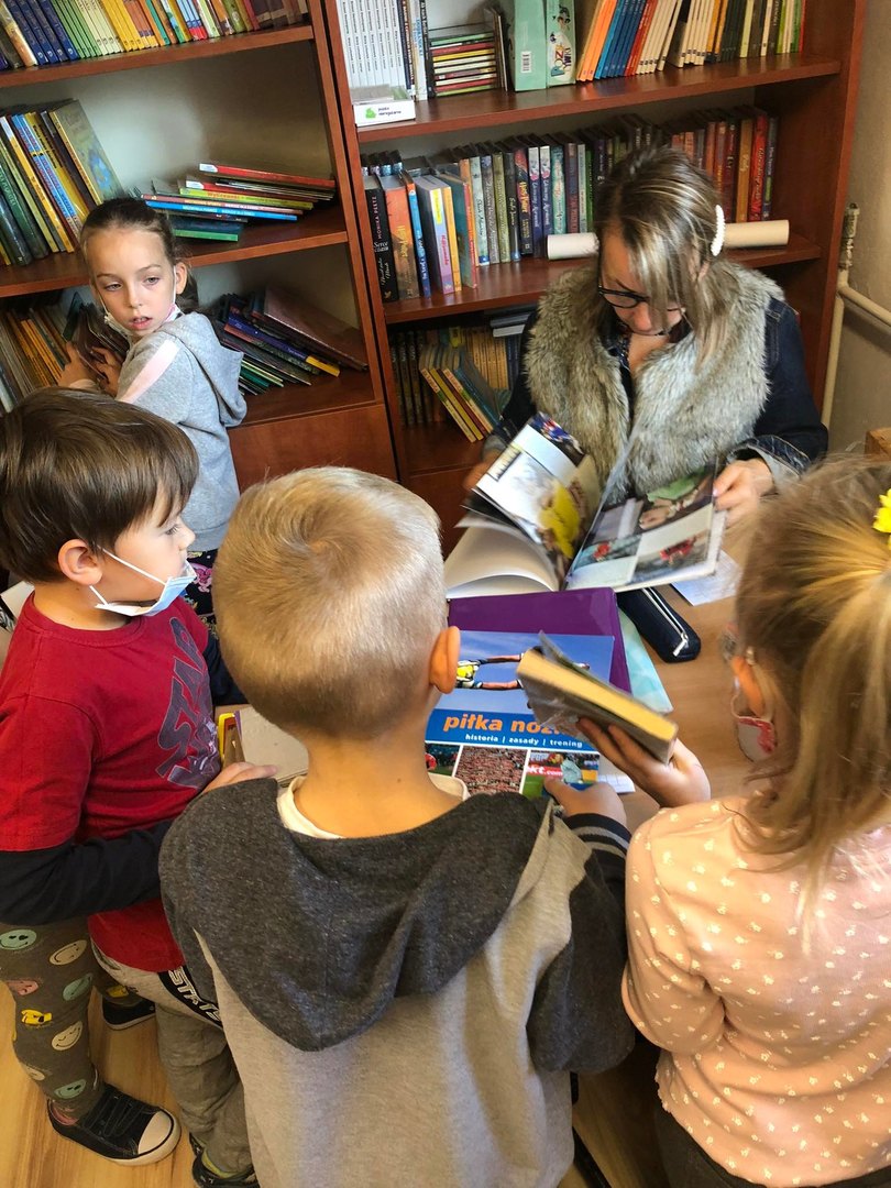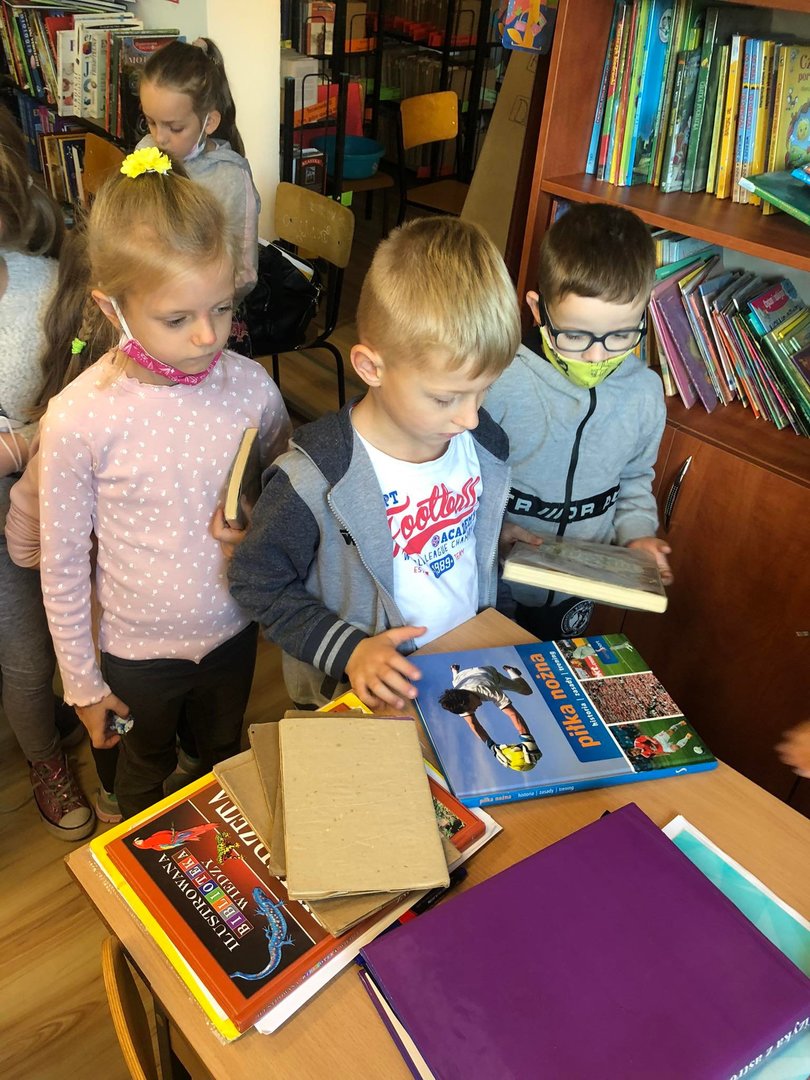 Pierwszaki przekonali się także, że nie wszystkie książki służą tylko do czytania, ponieważ z niektórymi można spędzać wiele godzin na kreatywnej zabawie. Dowiedzieli się również, że w bibliotece każdy znajdzie coś dla siebie, bez względu na to, czy interesuje się sportem, zwierzętami czy rękodziełem :)