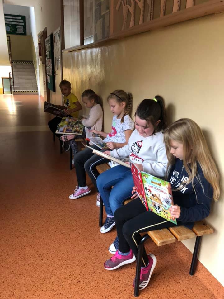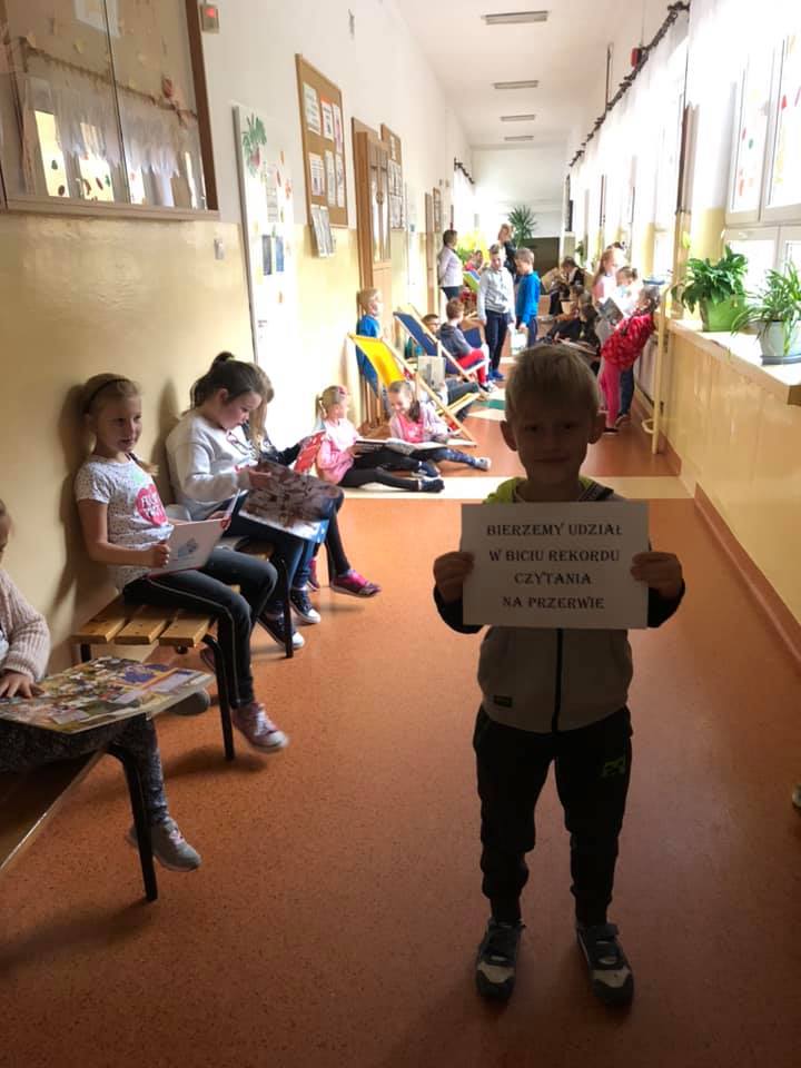 8 października, nasza szkoła po raz pierwszy włączyła się w ogólnopolską (a nawet międzynarodową) akcję bicia rekordu w ilości osób czytających na przerwie. Akcja ta koordynowana jest przez Bibliotekę Pedagogiczną Wojewódzkiego Ośrodka Metodycznego w Gorzowie Wlkp. W naszej szkole czytali wszyscy - mali i duzi