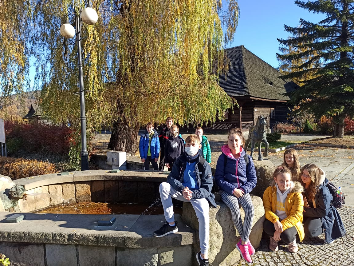 Po tej wizycie uczniowie udali się na przechadzkę po Suchej Beskidzkiej szlakiem