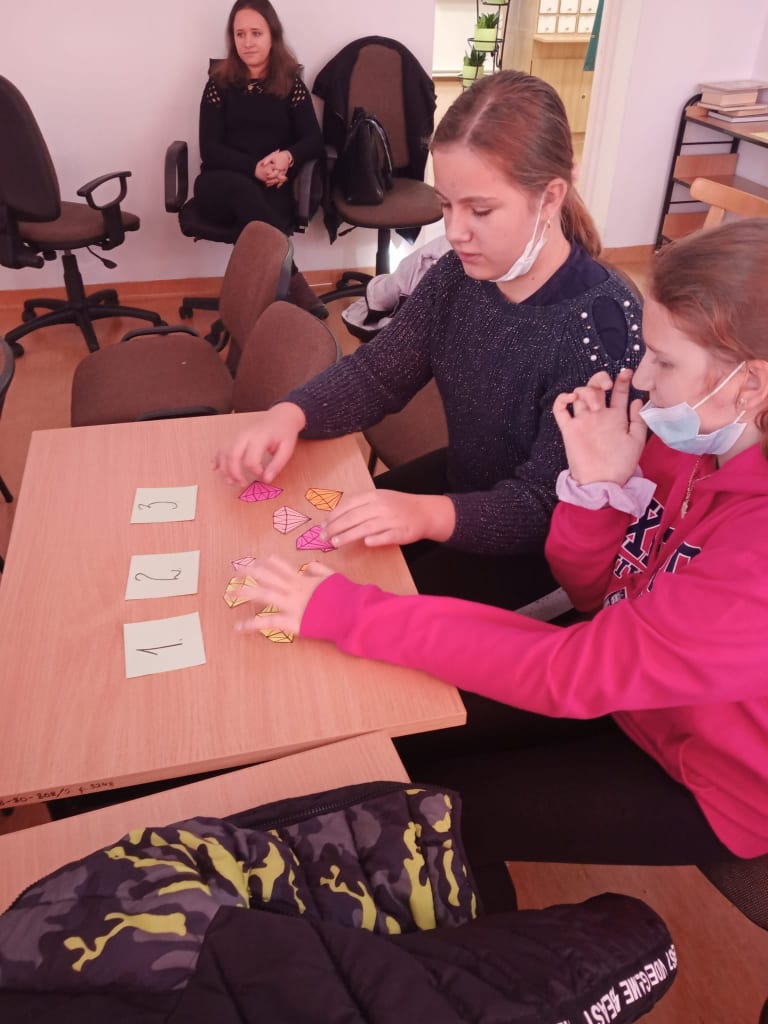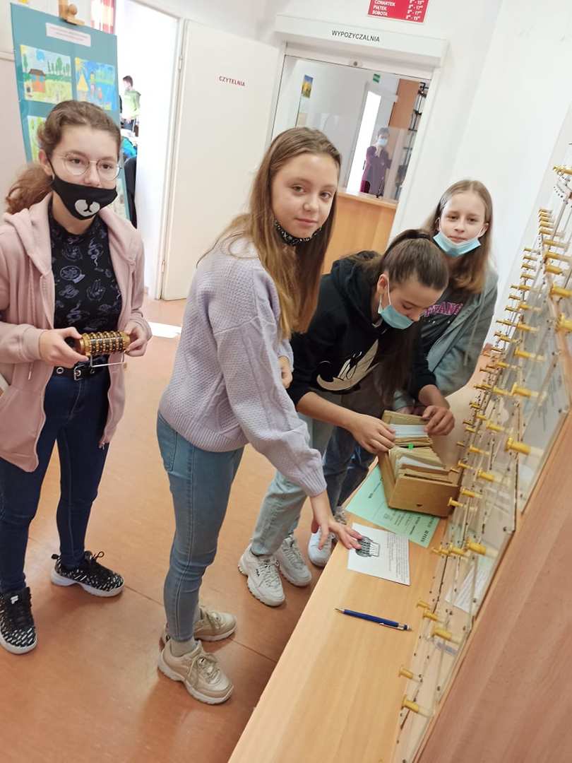 pracując w formie stacji zadaniowych wzięły udział w bibliotecznym escape roomie,