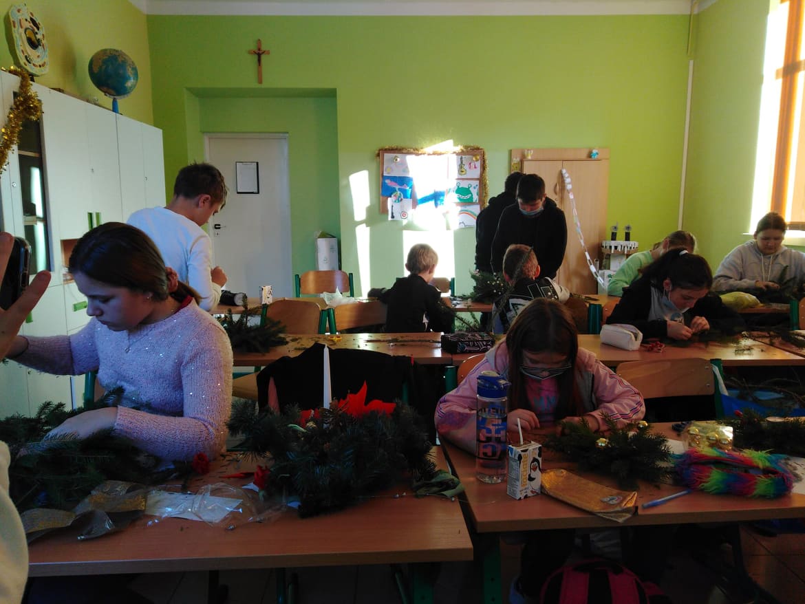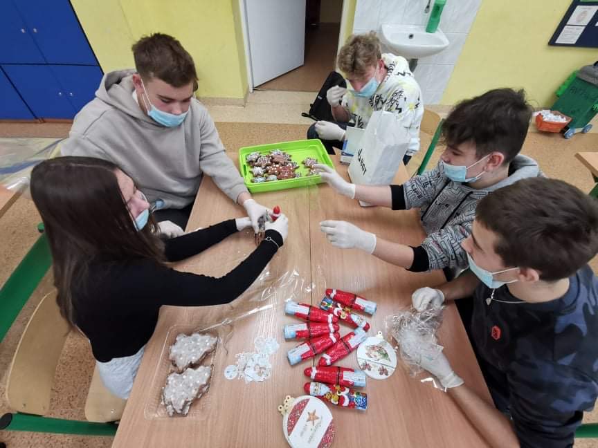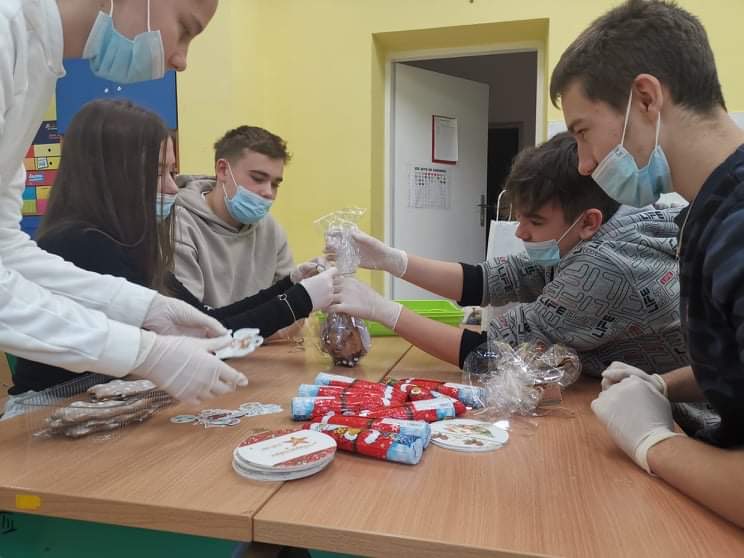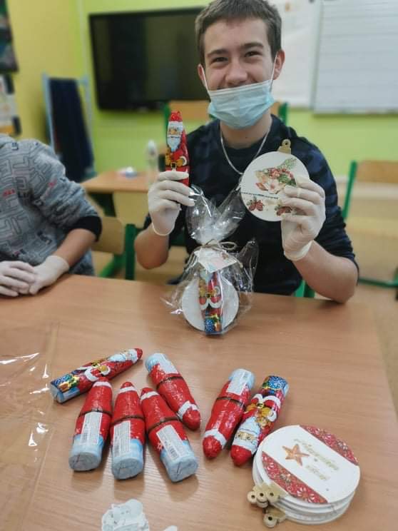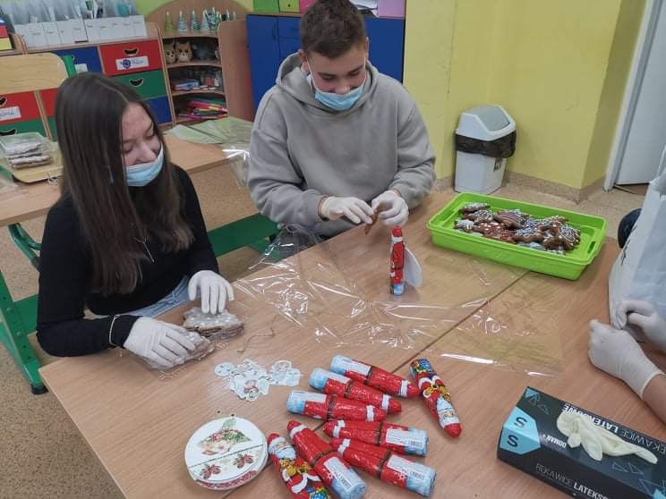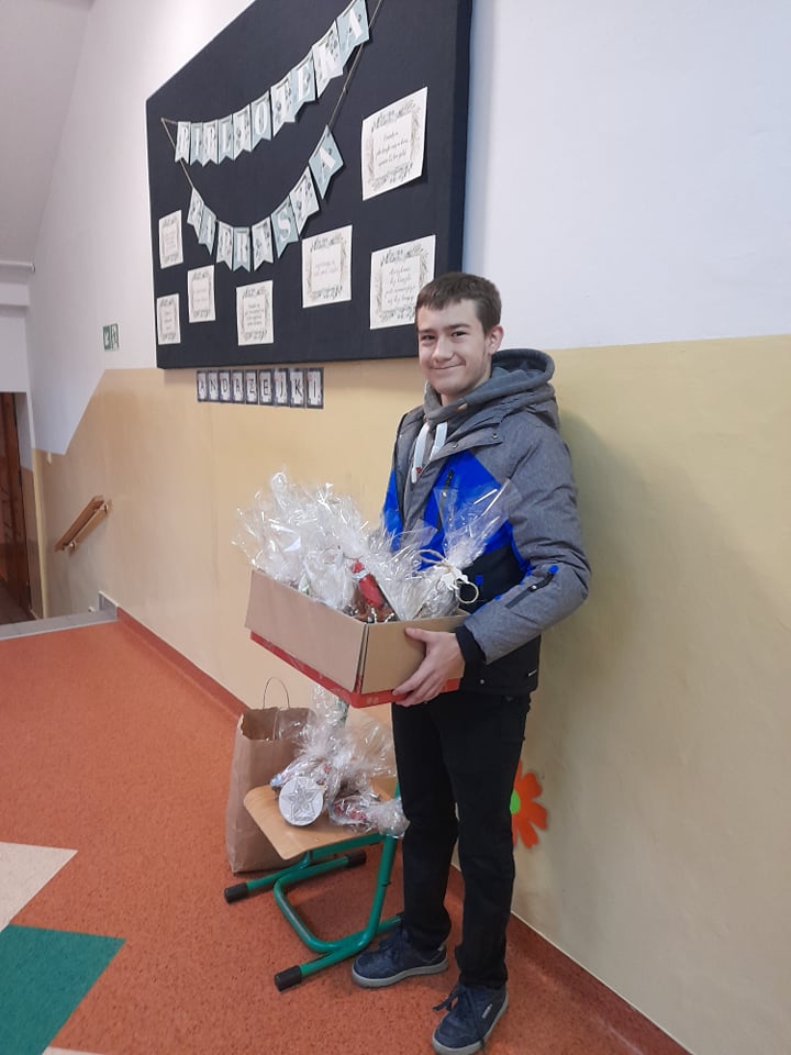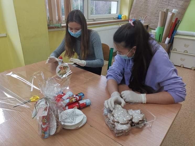 W tym roku nasza szkoła kolejny raz włączyła się do akcji Razem na Święta. Uczniowie naszej szkoły wzięli udział w przygotowaniu paczek dla dzieci z Ośrodka Rehabilitacyjno-Edukacyjno-Wychowawczego w Tarnawie Górnej, które przekazane zostały przez Przewodniczącego naszej szkoły. Dodatkowo Uczniowie poszczególnych klas wykonali kartki świąteczne dla mieszkańców DPS-u w Zebrzydowicach oraz stroiki dla swoich dziadków.