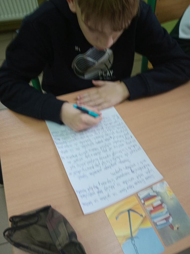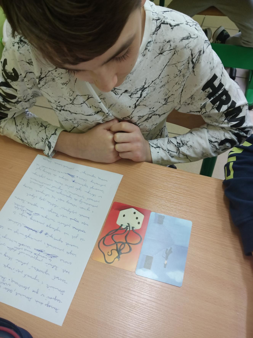 W grudniu uczniowie klas starszych wzięli udział w konkursie na najciekawsze opowiadanie, które napisać mieli na podstawie wylosowanych kart z gry planszowej DIXIT. Wszystkie opowiadania były bardzo ciekawe, uczniowie kreatywnie podeszli do zadania.