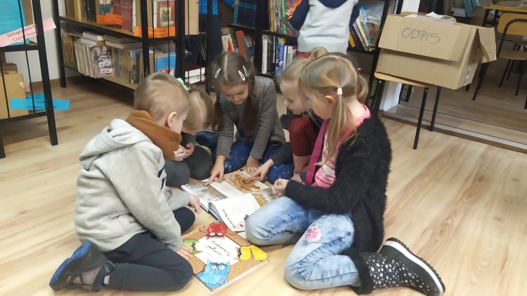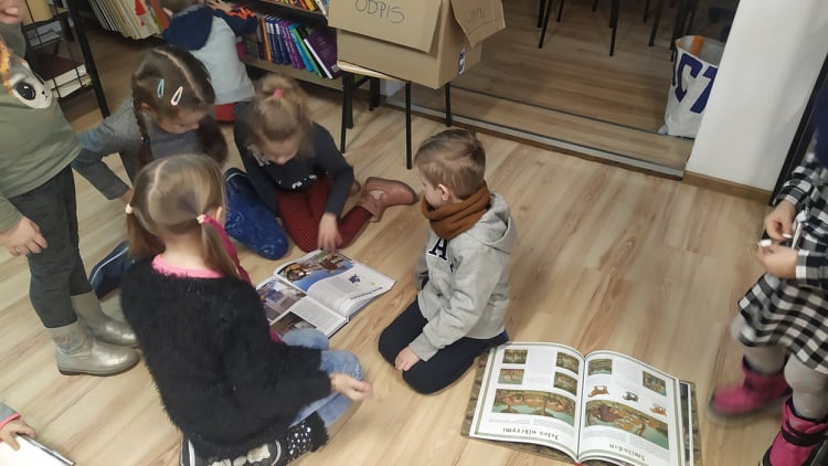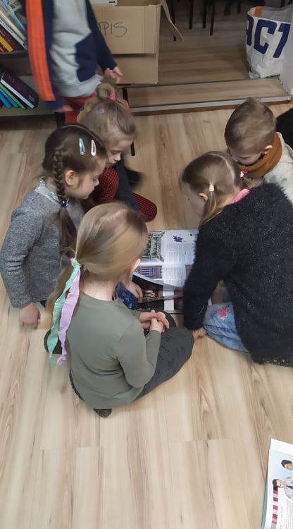 Starsze przedszkolaki oraz zerówkowicze w ostatnim czasie odwiedzili szkolną bibliotekę. Razem z nauczycielką biblioteki z zaciekawieniem oglądali kolorowe albumy oraz książeczki.