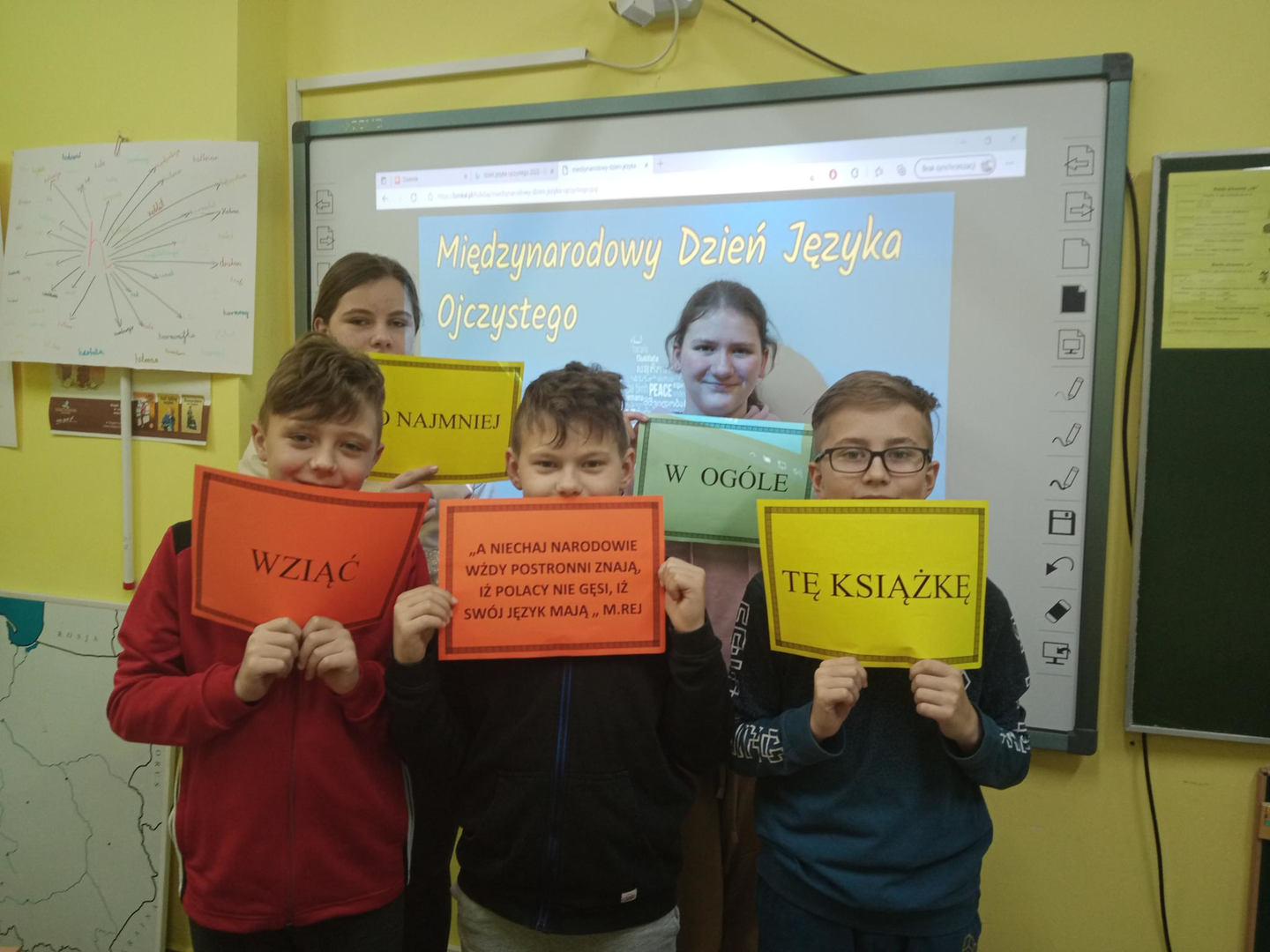 21 lutego uczniowie klasy IV oraz VI świętowali Międzynarodowy Dzień Języka Ojczystego. Święto to ma służyć promocji języka ojczystego oraz uświadomieniu - szczególnie młodym, jak ważne jest prawidłowe posługowanie się językiem ojczystym w życiu codziennym.