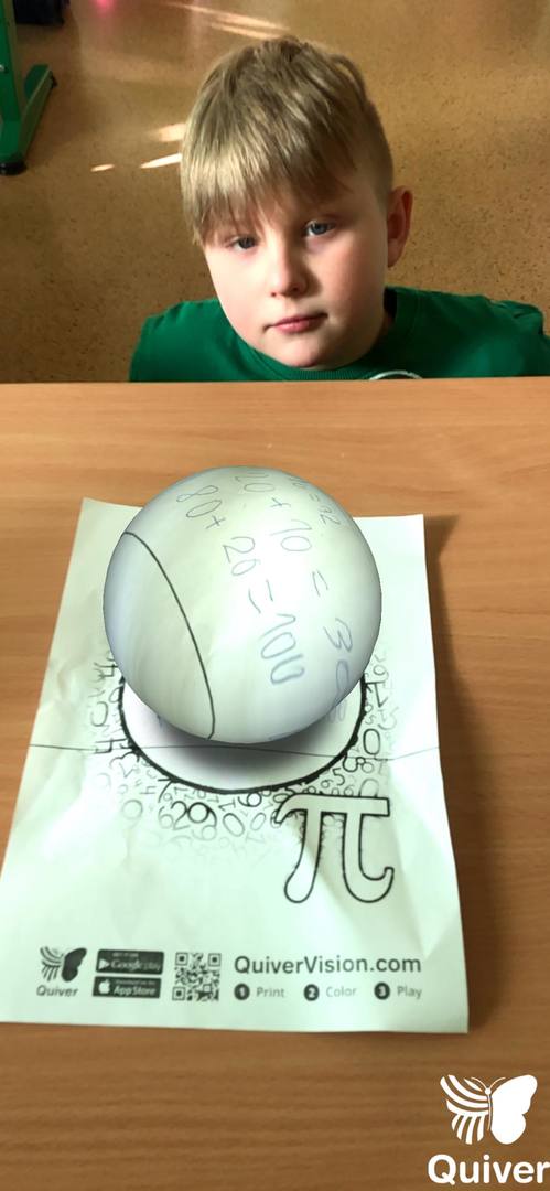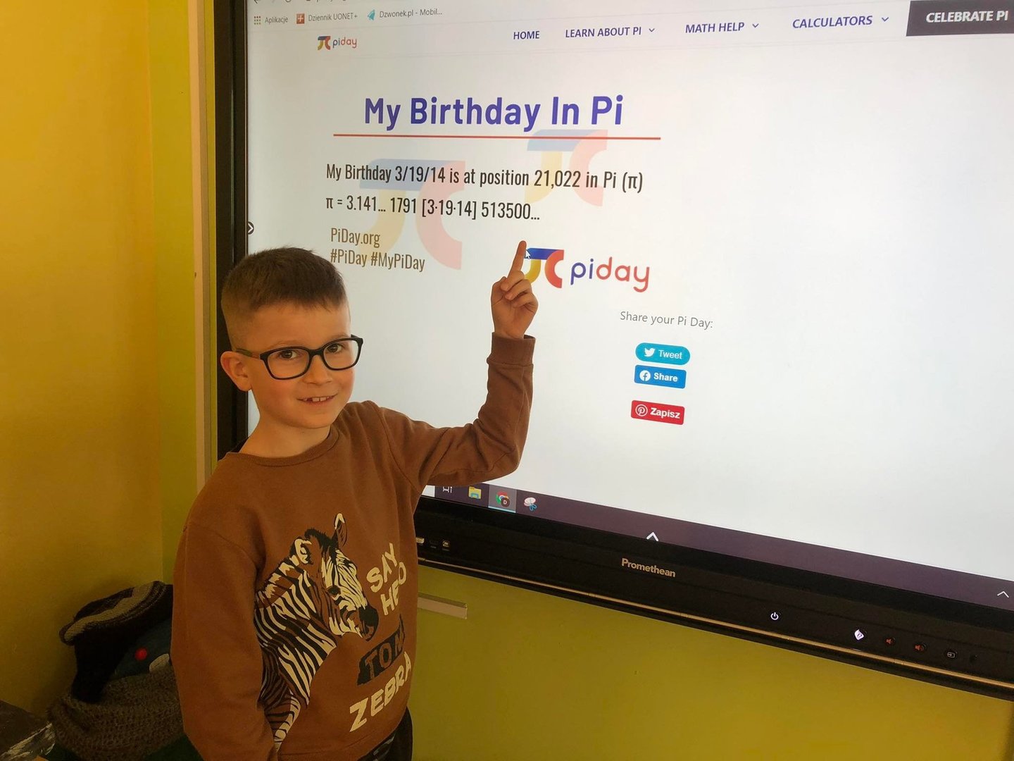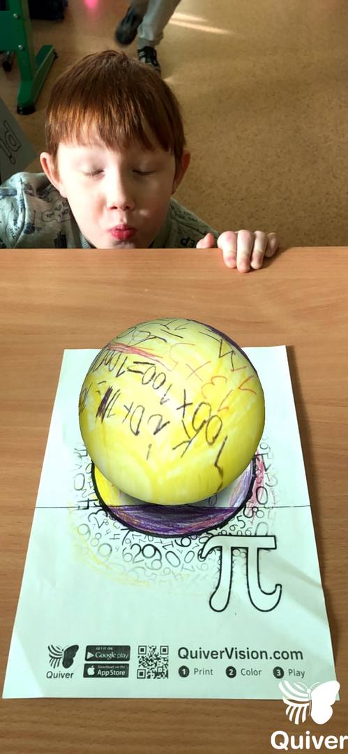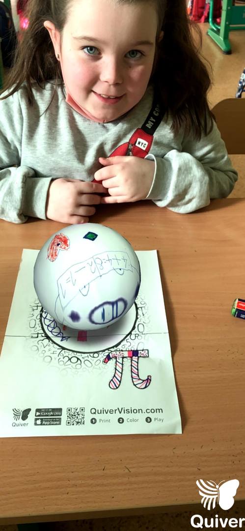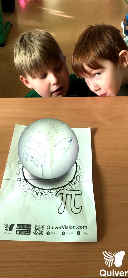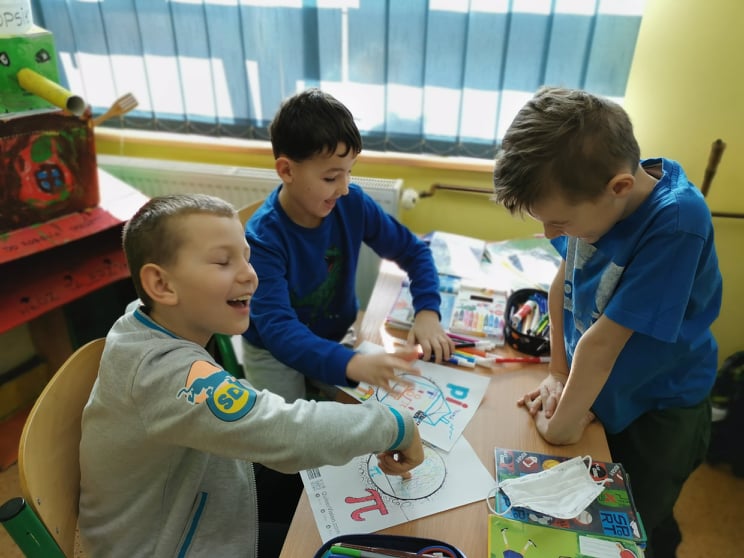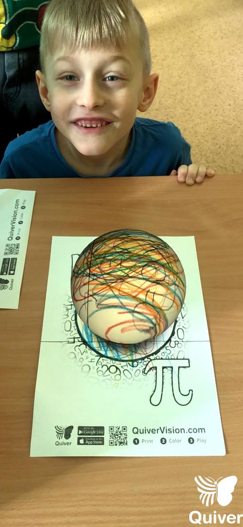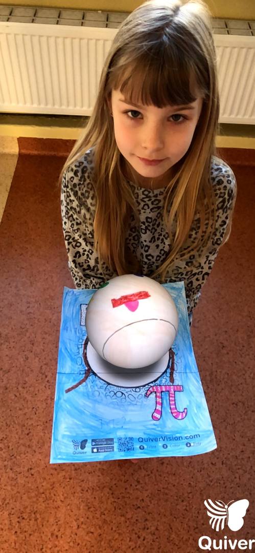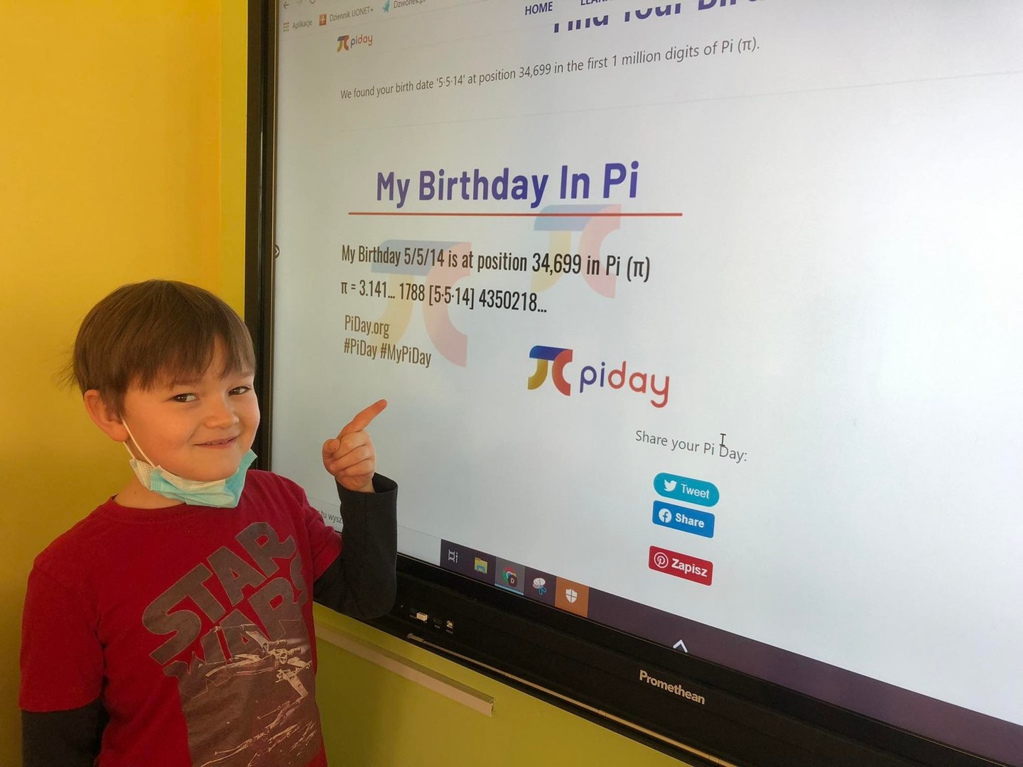 Uczniowie kolorowali także specjalne karty pracy, które za pomocą rozszerzonej rzeczywistości "ożyły" :) Chociaż sama liczba Pi i jej zrozumienie sprawia najmłodszym uczniom trudności, to podczas jej poznawania świetnie się bawili. Sprawdzaliśmy między innymi, czy w pierwszym milionie po przecinku ukryta jest nasza data urodzin. Dzieci dowiedziały się również, ile wynosi rekord zapamiętanych cyfr liczby Pi - to aż ponad 70,000! A rekordzista recytował je ponad 17 godzin!