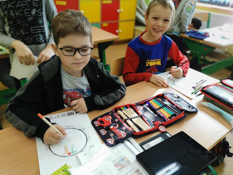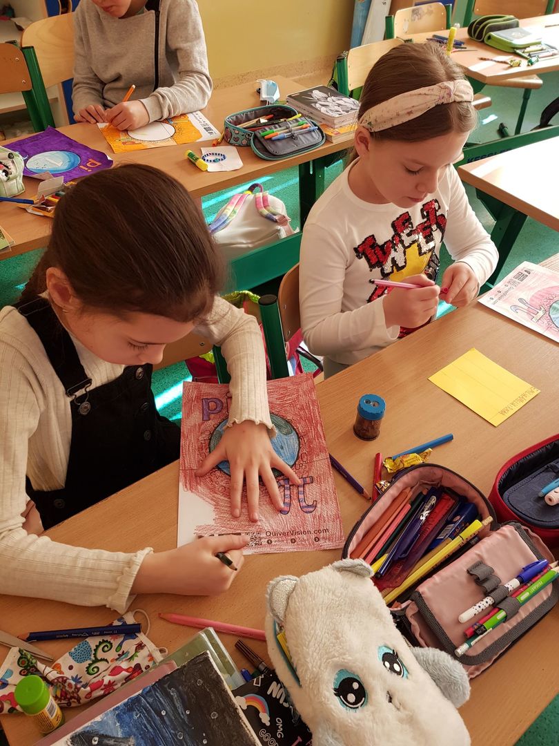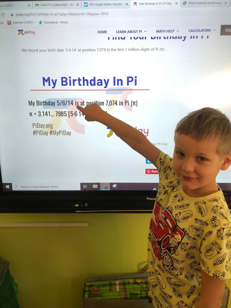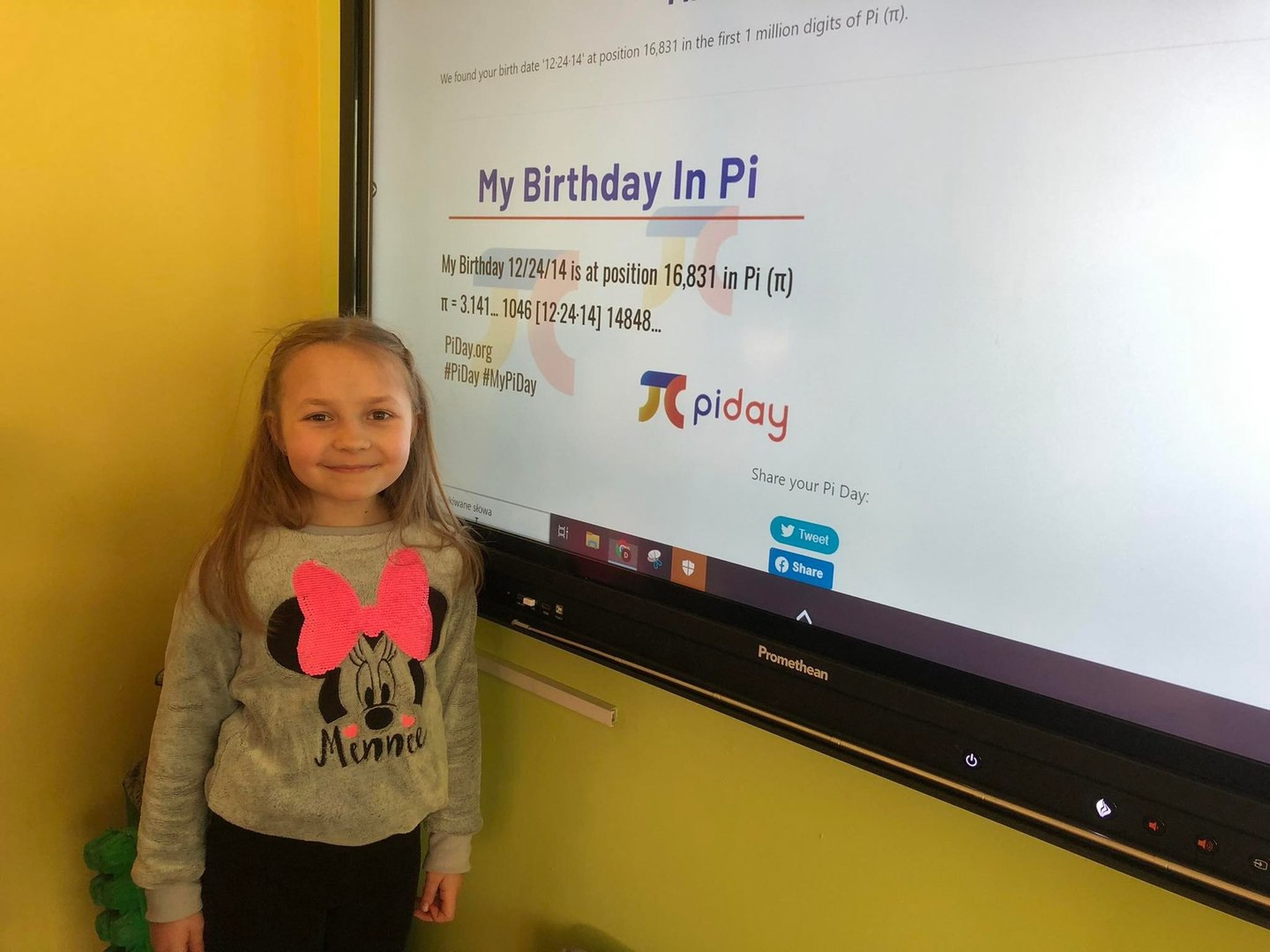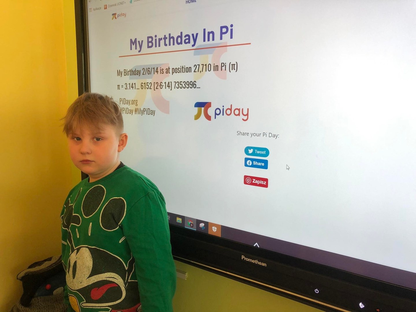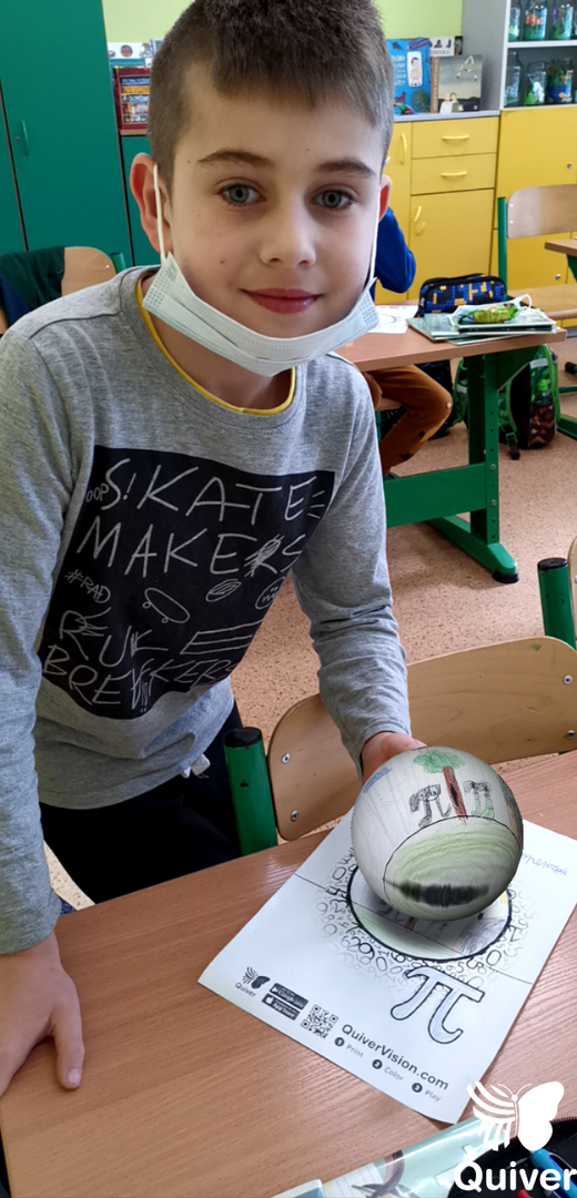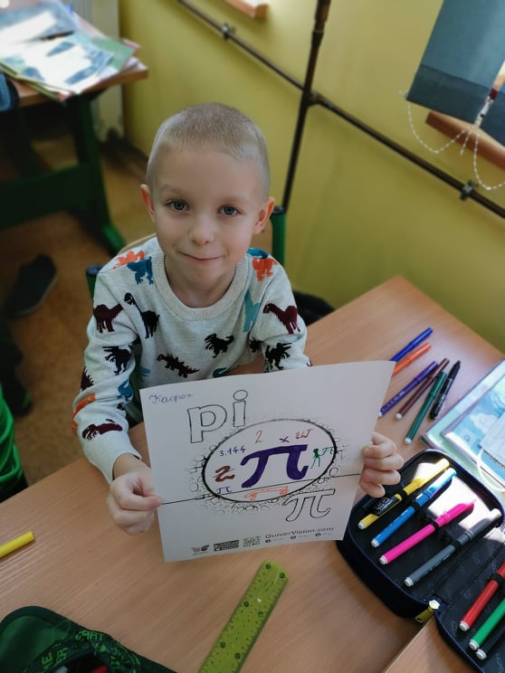 Uczniowie kolorowali także specjalne karty pracy, które za pomocą rozszerzonej rzeczywistości "ożyły" :) Chociaż sama liczba Pi i jej zrozumienie sprawia najmłodszym uczniom trudności, to podczas jej poznawania świetnie się bawili. Sprawdzaliśmy między innymi, czy w pierwszym milionie po przecinku ukryta jest nasza data urodzin. Dzieci dowiedziały się również, ile wynosi rekord zapamiętanych cyfr liczby Pi - to aż ponad 70,000! A rekordzista recytował je ponad 17 godzin!
