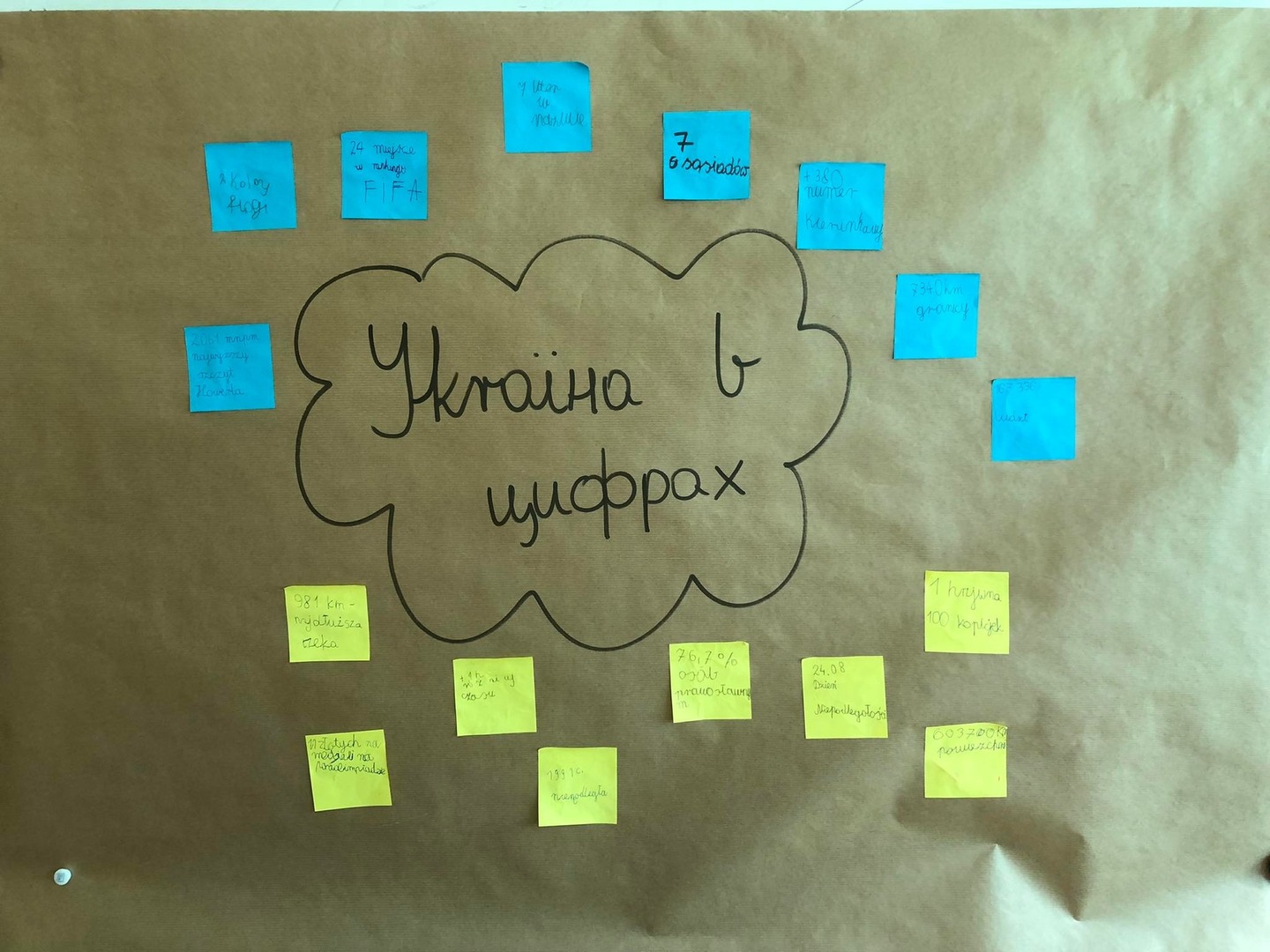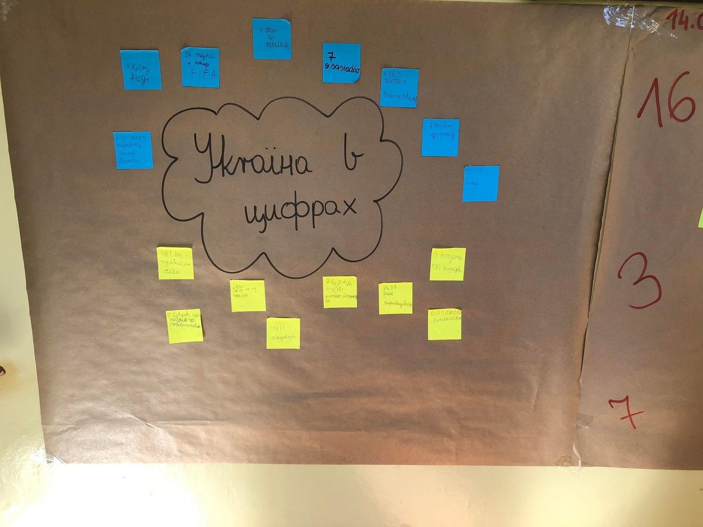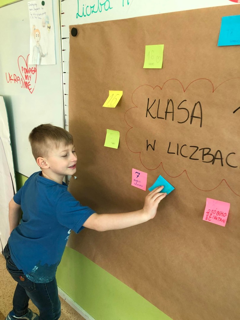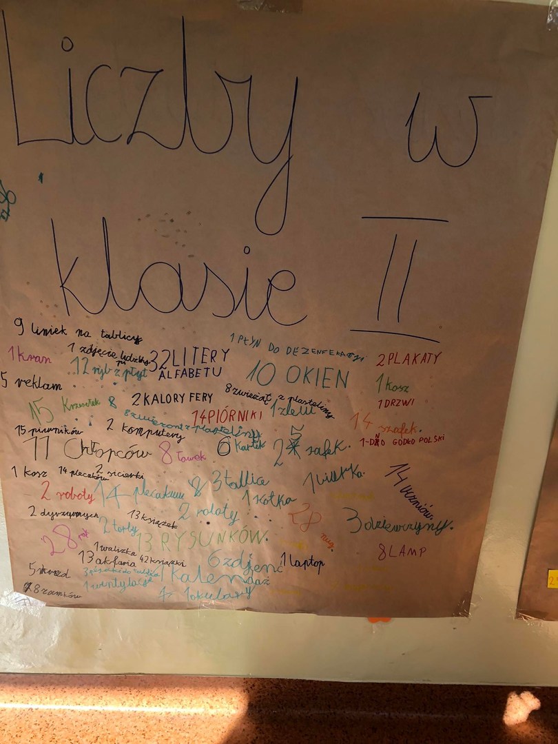 W klasach 1-3, cały poniedziałek podporządkowany był matematyce. Dzieci wykonały plakaty "Liczby w klasie.." - każda klasa przygotowała własny plakat opisując na nim liczby związane właśnie z nimi. Dodatkowo wykonano plakat "Ukraina w liczbach...".