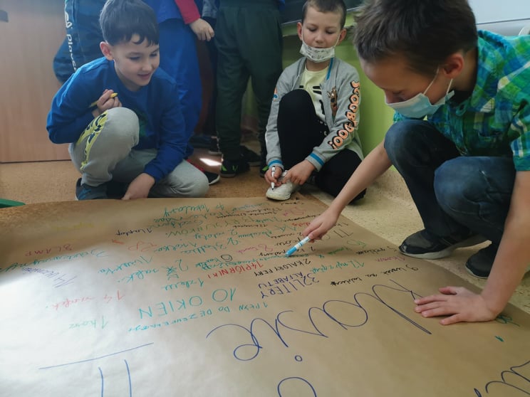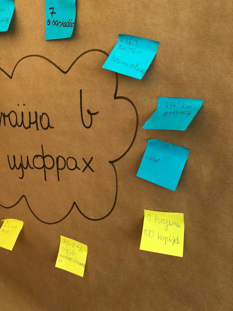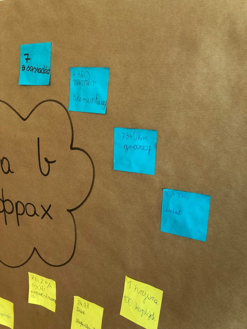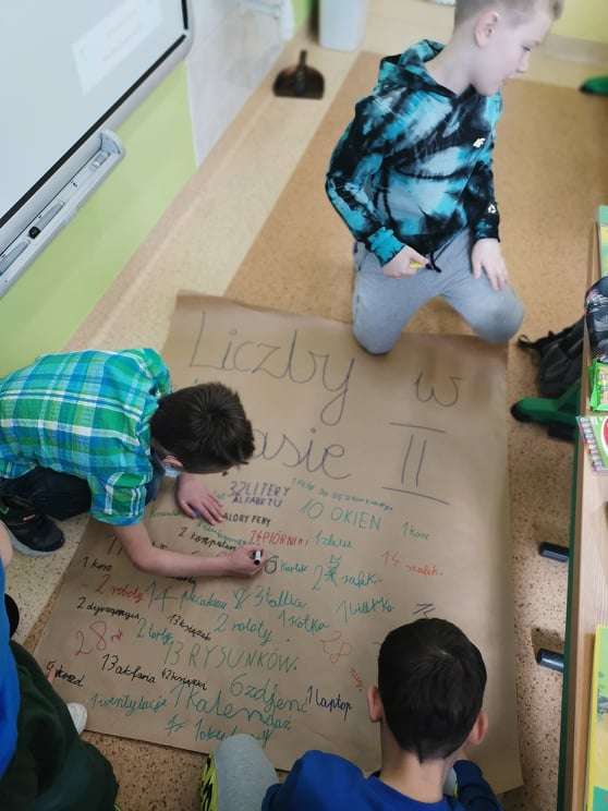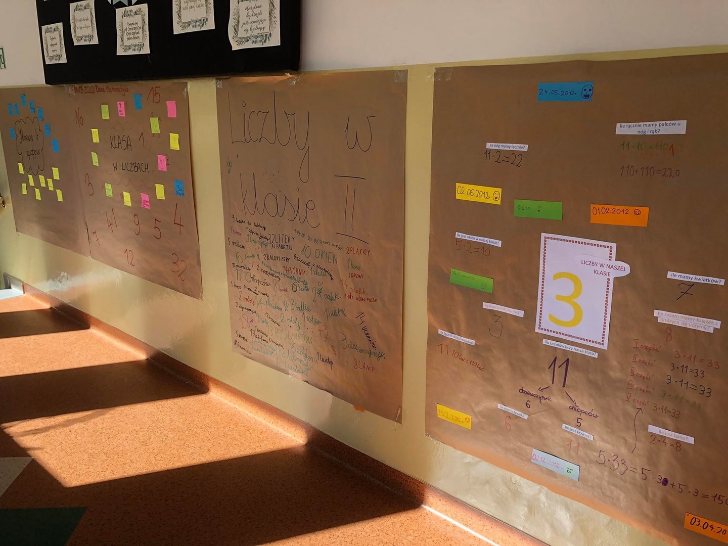W klasach 1-3, cały poniedziałek podporządkowany był matematyce. Dzieci wykonały plakaty "Liczby w klasie.." - każda klasa przygotowała własny plakat opisując na nim liczby związane właśnie z nimi. Dodatkowo wykonano plakat "Ukraina w liczbach...".