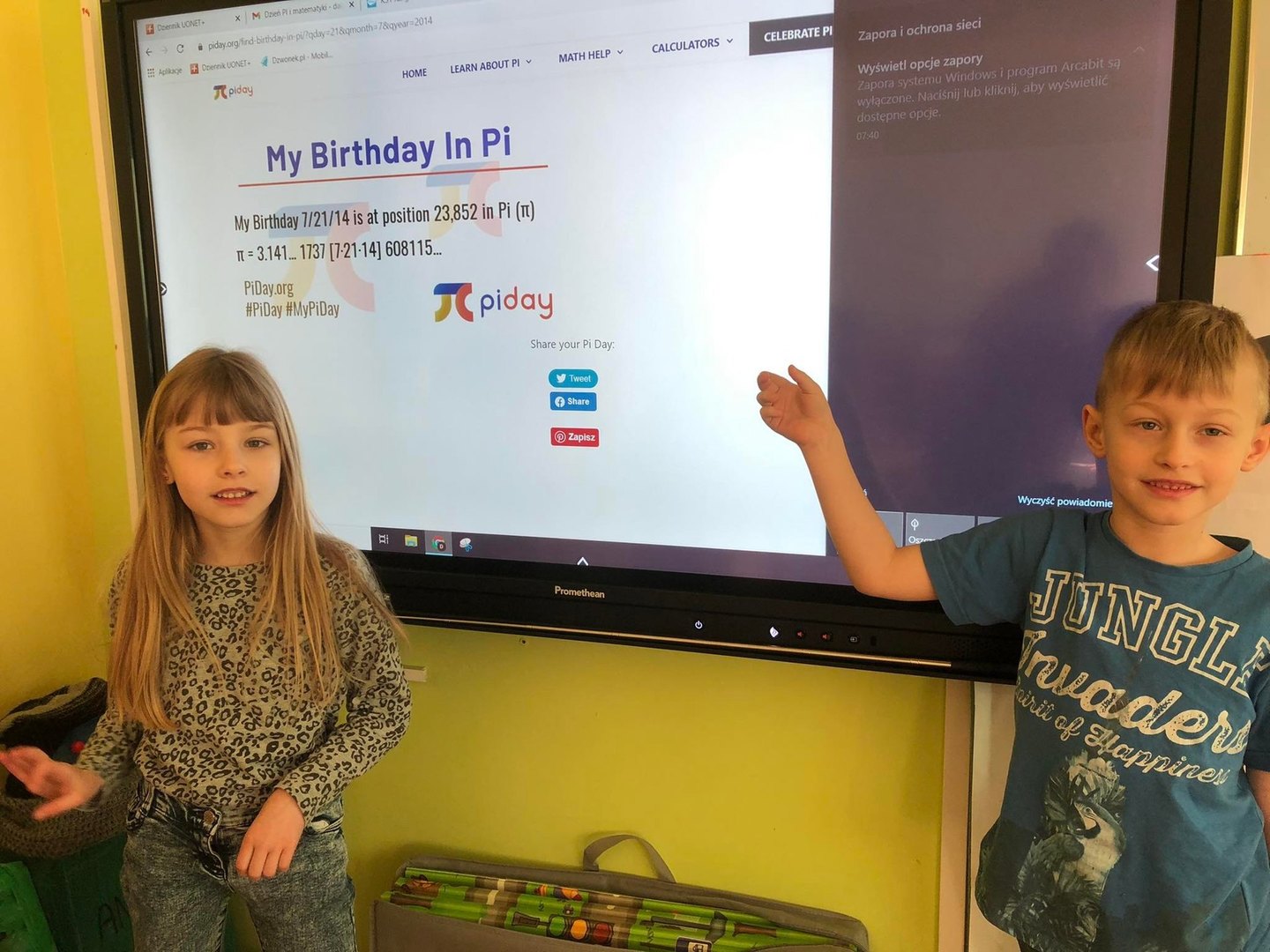 Uczniowie klas IV-VIII tej okazji wzięli udział w projekcji filmu, który przybliżył historię odkrywania, własności, zastosowanie a także ciekawostki o stałej Archimedesa. Następnie rozwiązywali quizy matematyczne na https://wordwall.net. gdzie mieli okazję powtórzyć i utrwalić sobie materiał dobrze się przy tym bawiąc.