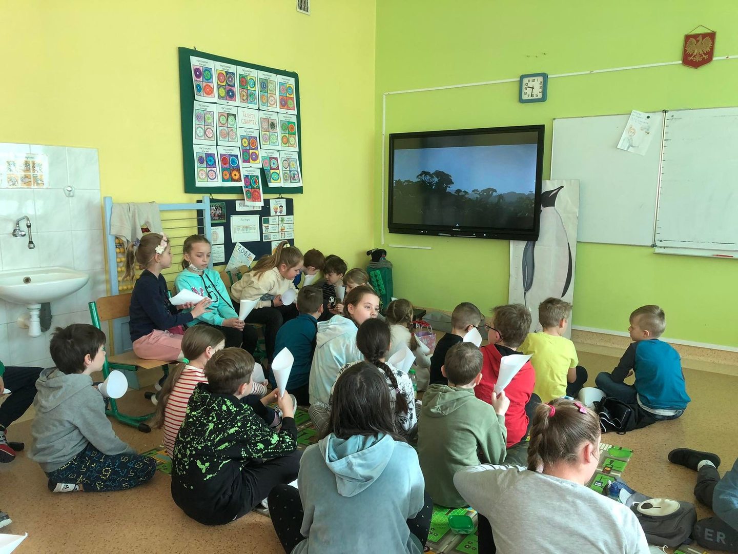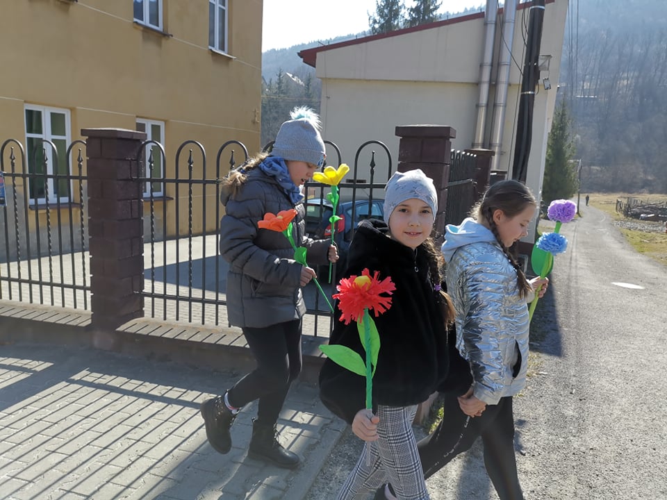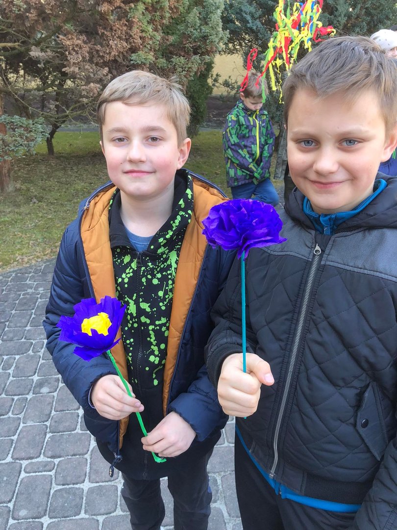 Dla najmłodszych uczniów ten dzień upłynął pod znakiem rozrywki. Oprócz spaceru, w szkole czekała na nich bajka oraz pyszny poprocn, a potem wiosenne zagadki.