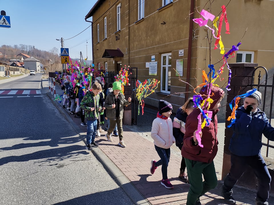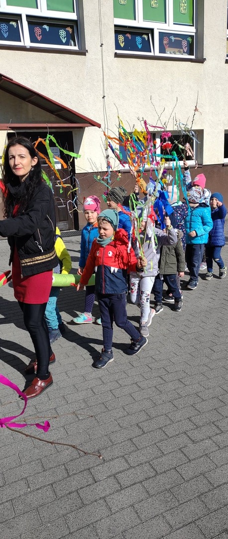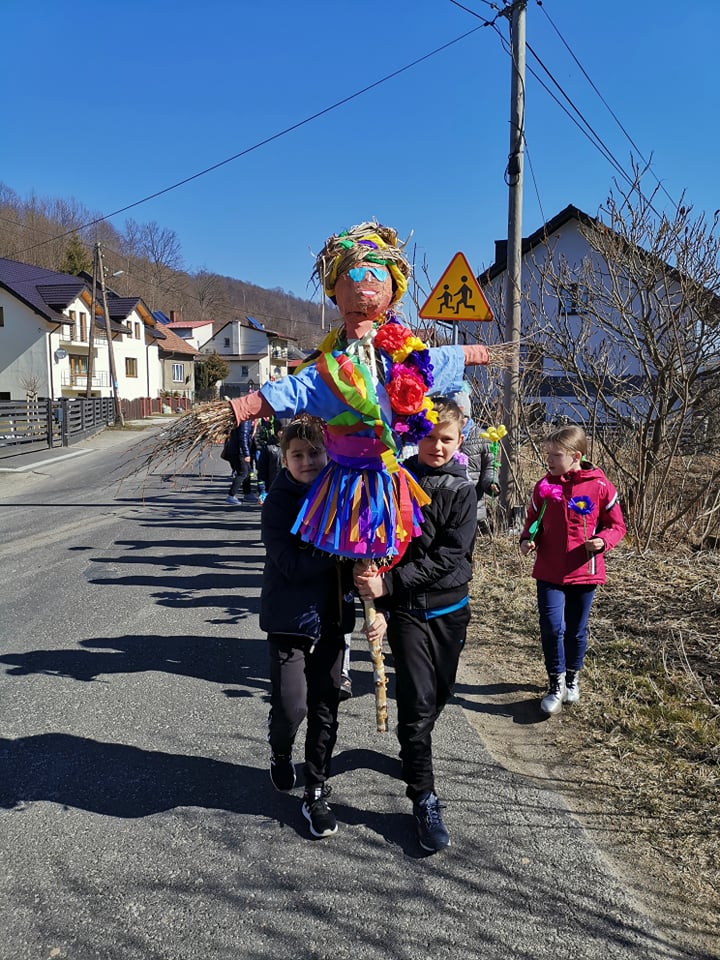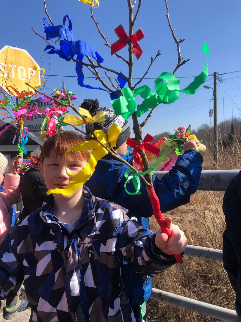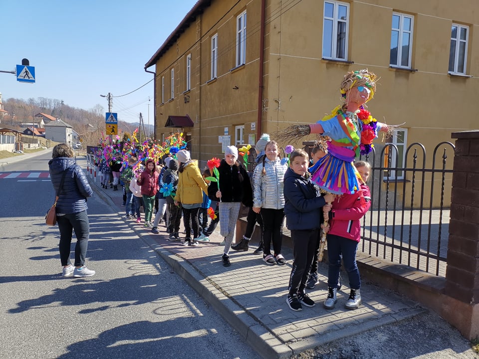 21 marca cała szkoła świętowała nadejście wiosny. Mamy nadzieję, że zawita ona u nas nie tylko w kalendarzu, ale także w pogodzie. Klasy 1-3 symbolicznie pożegnały przepiękną, kolorową Marzannę podczas spaceru po najbliższej okolicy. Barwny pochód dzieci niosących gaiki musiał pięknie wyglądać i na pewno rozweselił nie jednego przechodnia :)