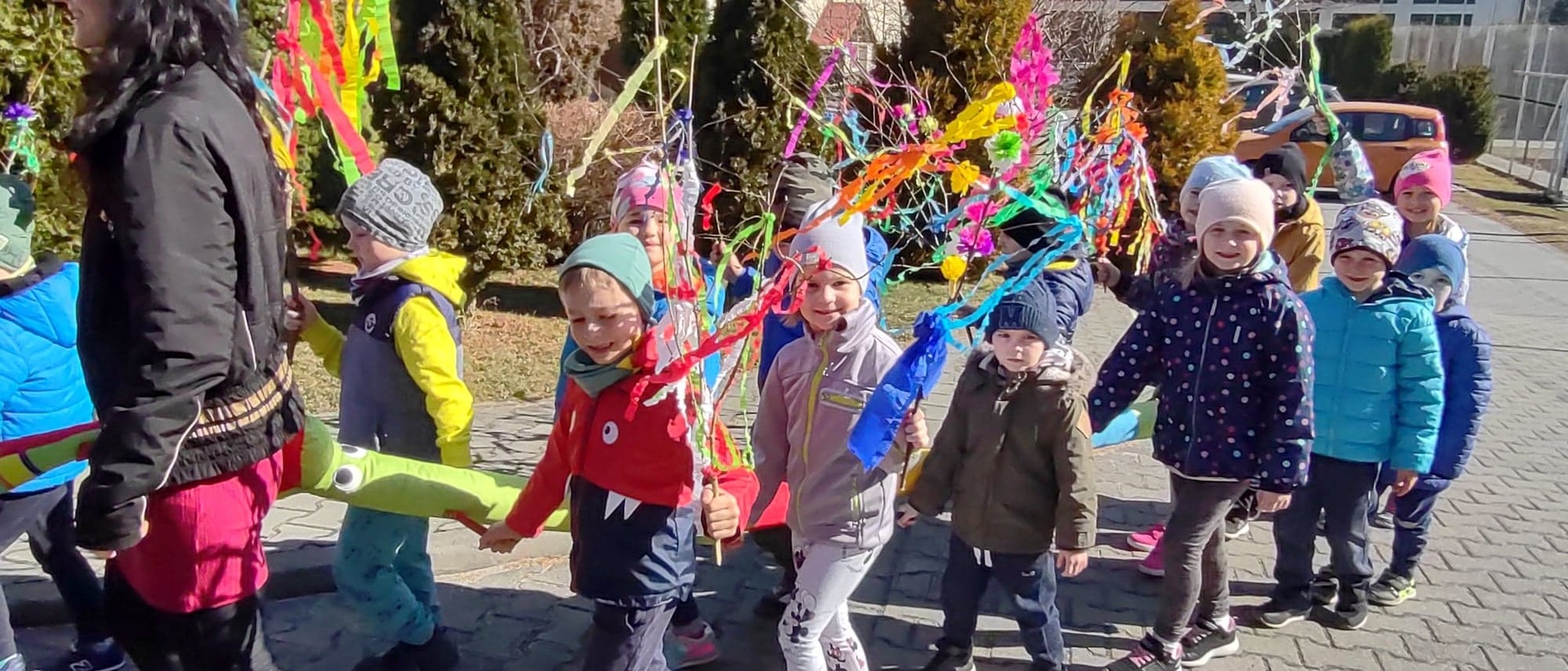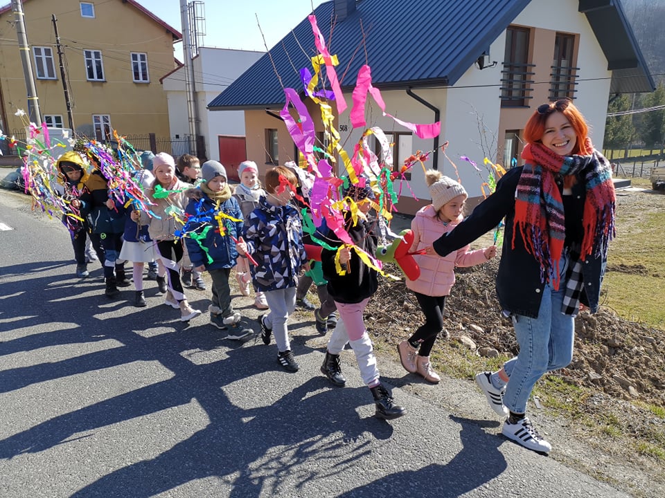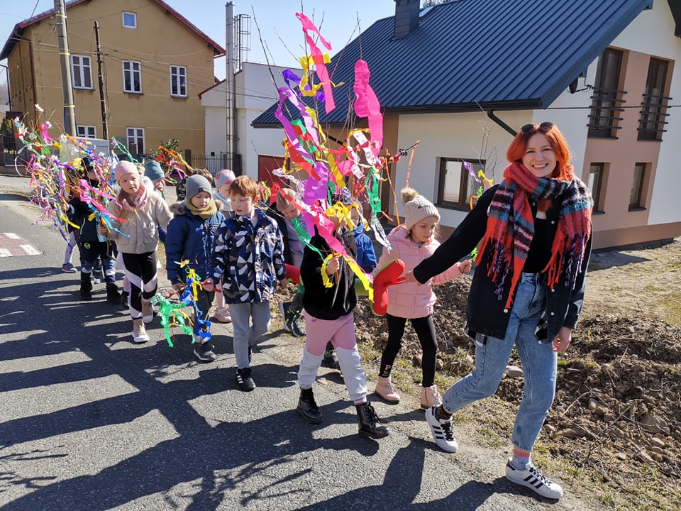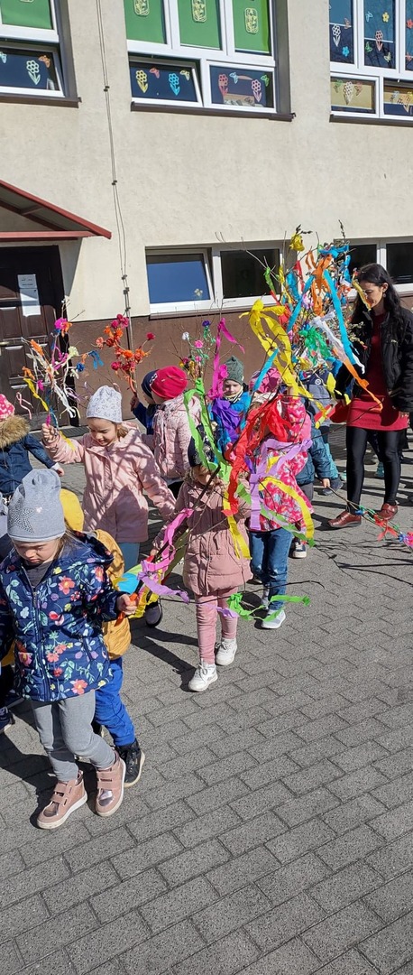 21 marca cała szkoła świętowała nadejście wiosny. Mamy nadzieję, że zawita ona u nas nie tylko w kalendarzu, ale także w pogodzie. Klasy 1-3 symbolicznie pożegnały przepiękną, kolorową Marzannę podczas spaceru po najbliższej okolicy. Barwny pochód dzieci niosących gaiki musiał pięknie wyglądać i na pewno rozweselił nie jednego przechodnia :)