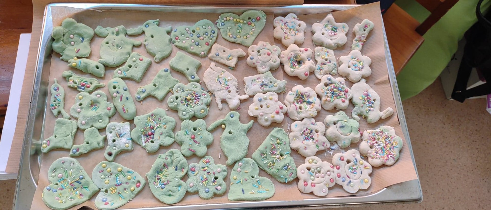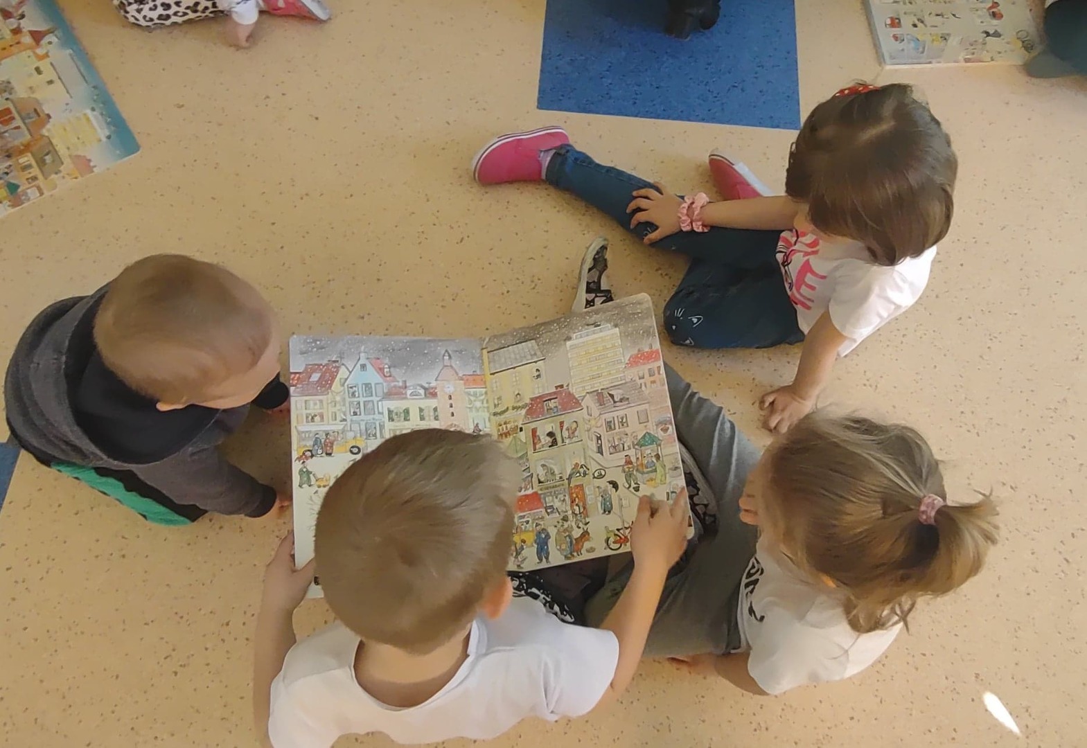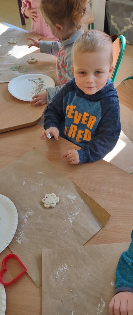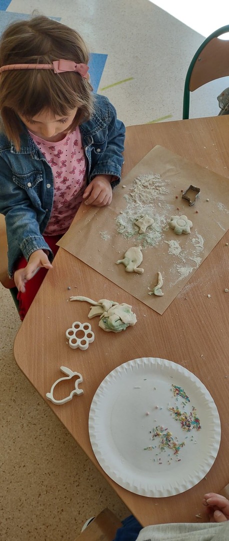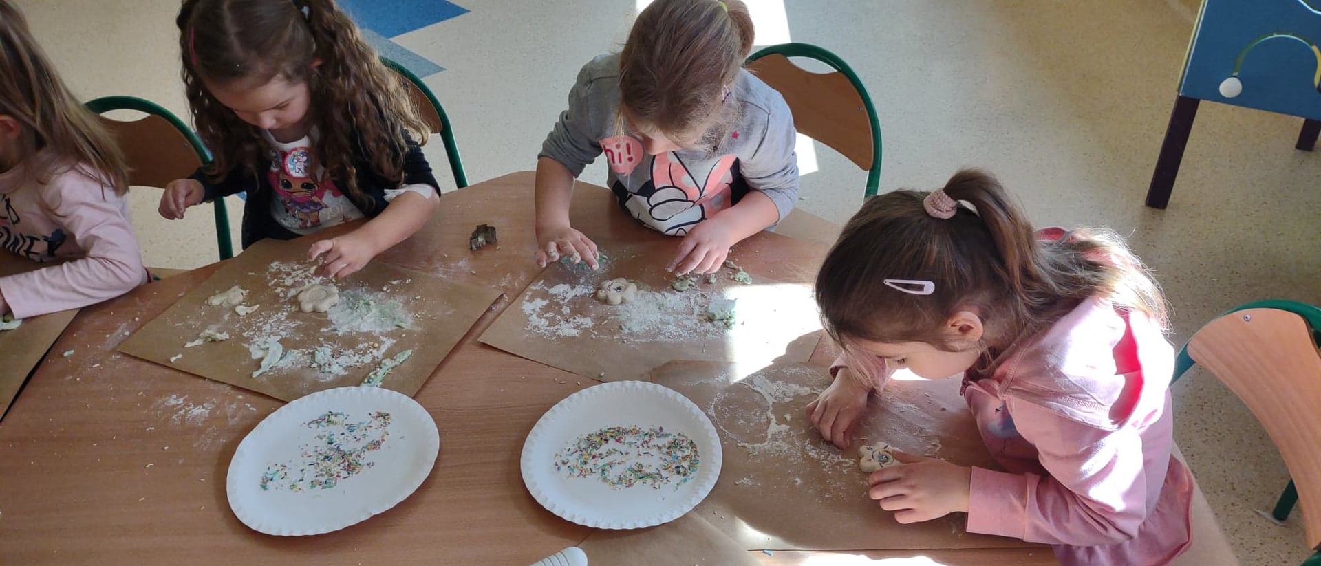 Tymczasem grupa 0a świetnie bawiła się na wiosennych warsztatch bibliotecznych. Dzieci pracowały z książeczkami z serii "Ulica Czereśniowa", poznając poszczególne pory roku. Dodatkowo z masy solnej ulepiły piękne, wiosenne ozdoby, które zawiesiły na drzewku w sali.