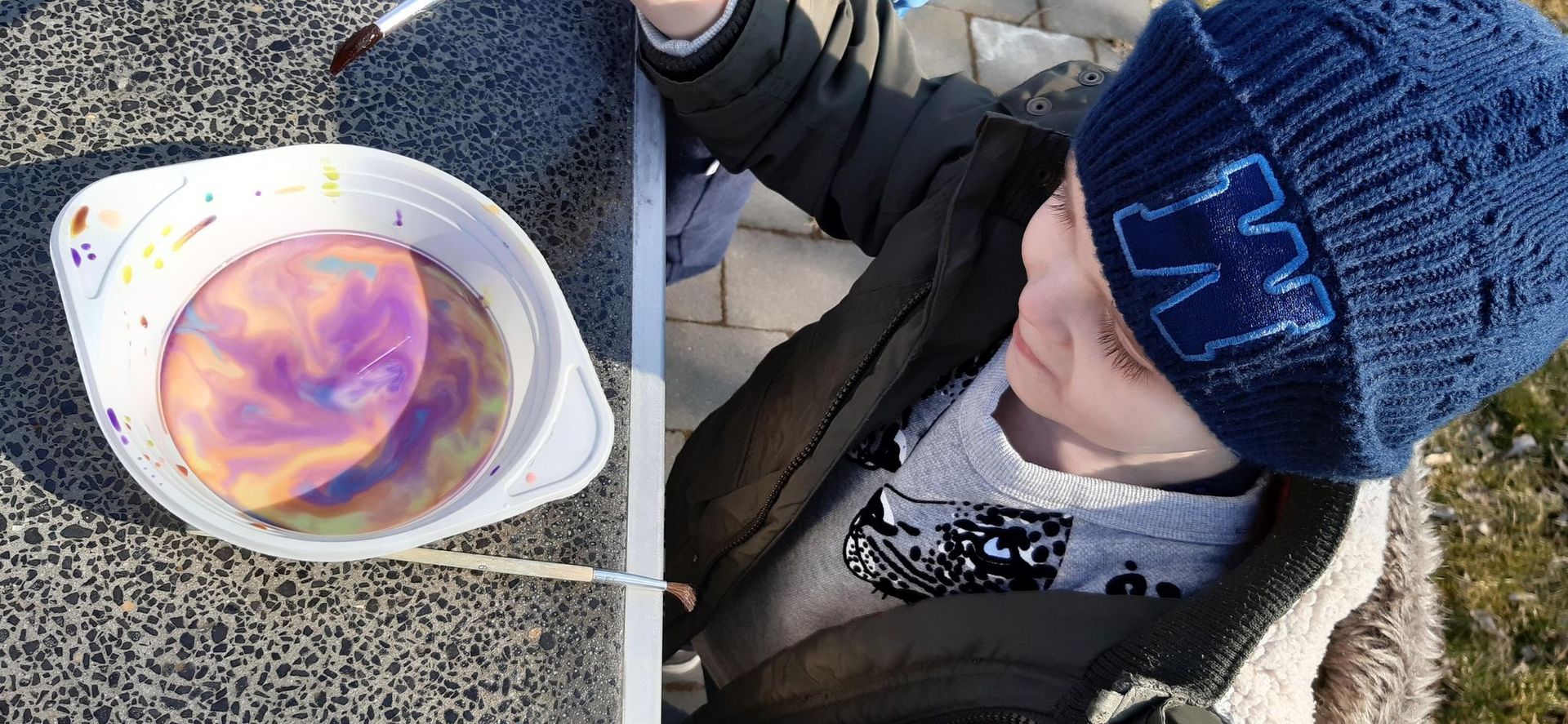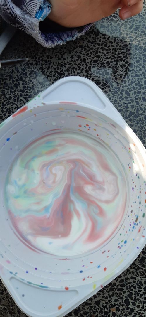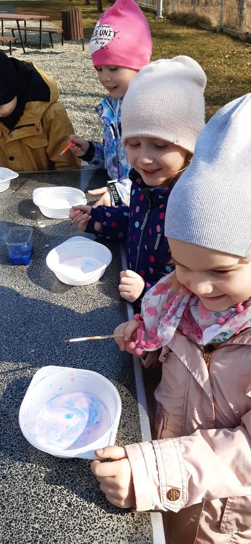Malowanie w plenerze na kartce papieru jest już podobno niemodne ;) teraz maluje się na...MLEKU! Tak, dobrze przeczytaliście. Piękne, kolorowe obrazki na mleku tworzyły dzieciaki z grupy 0b. Wyszło przepięknie!