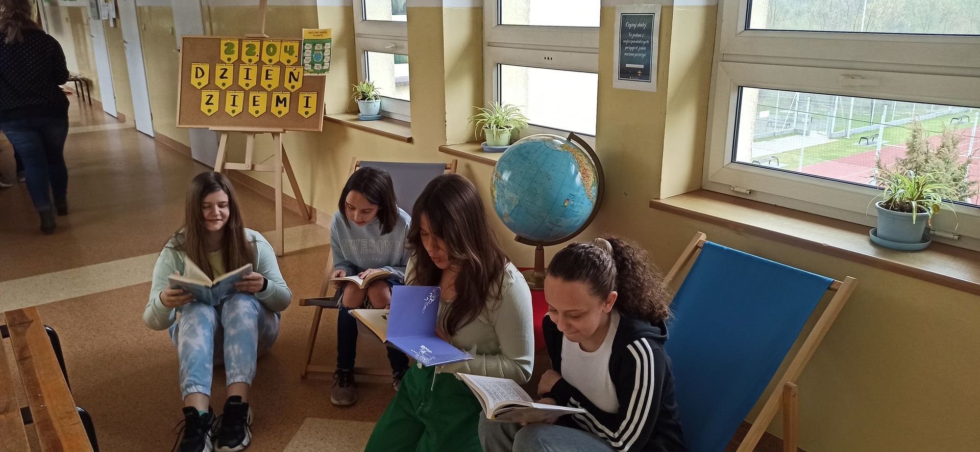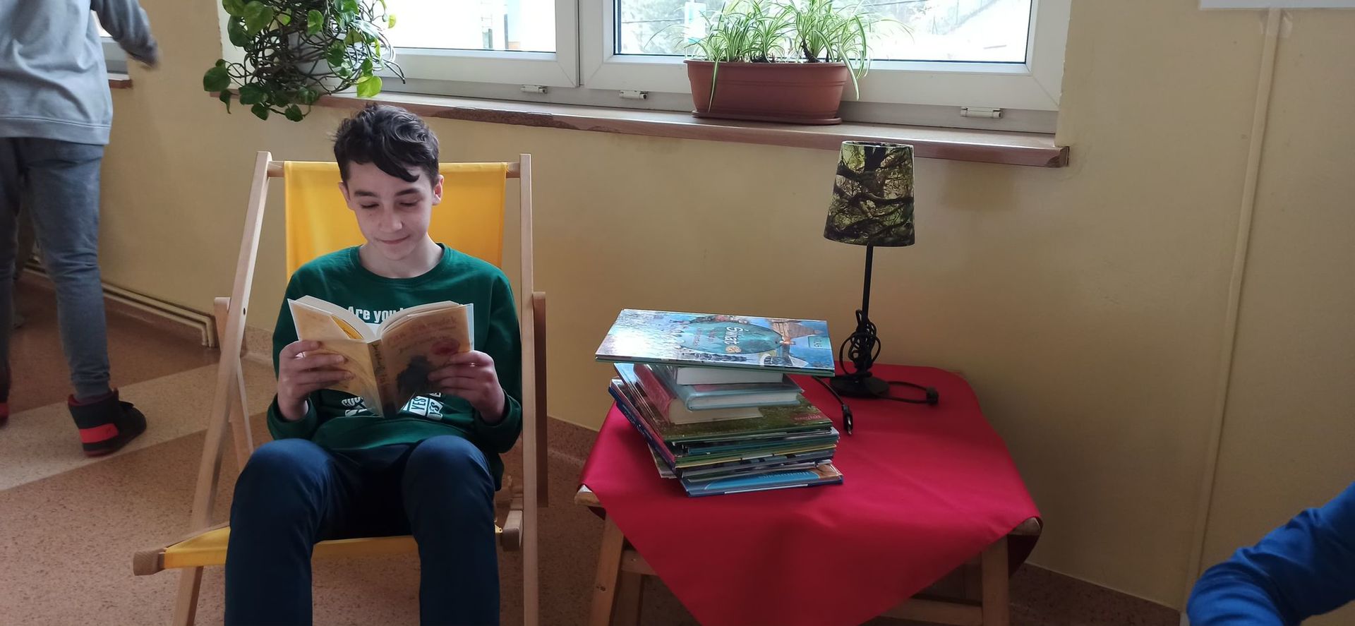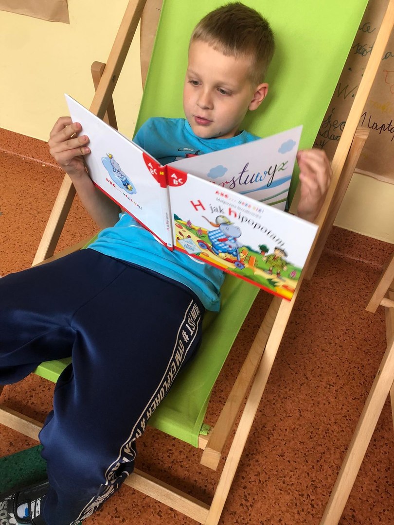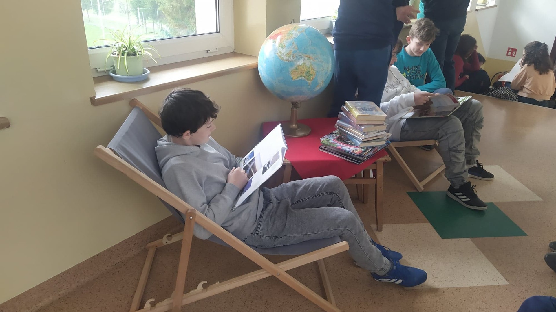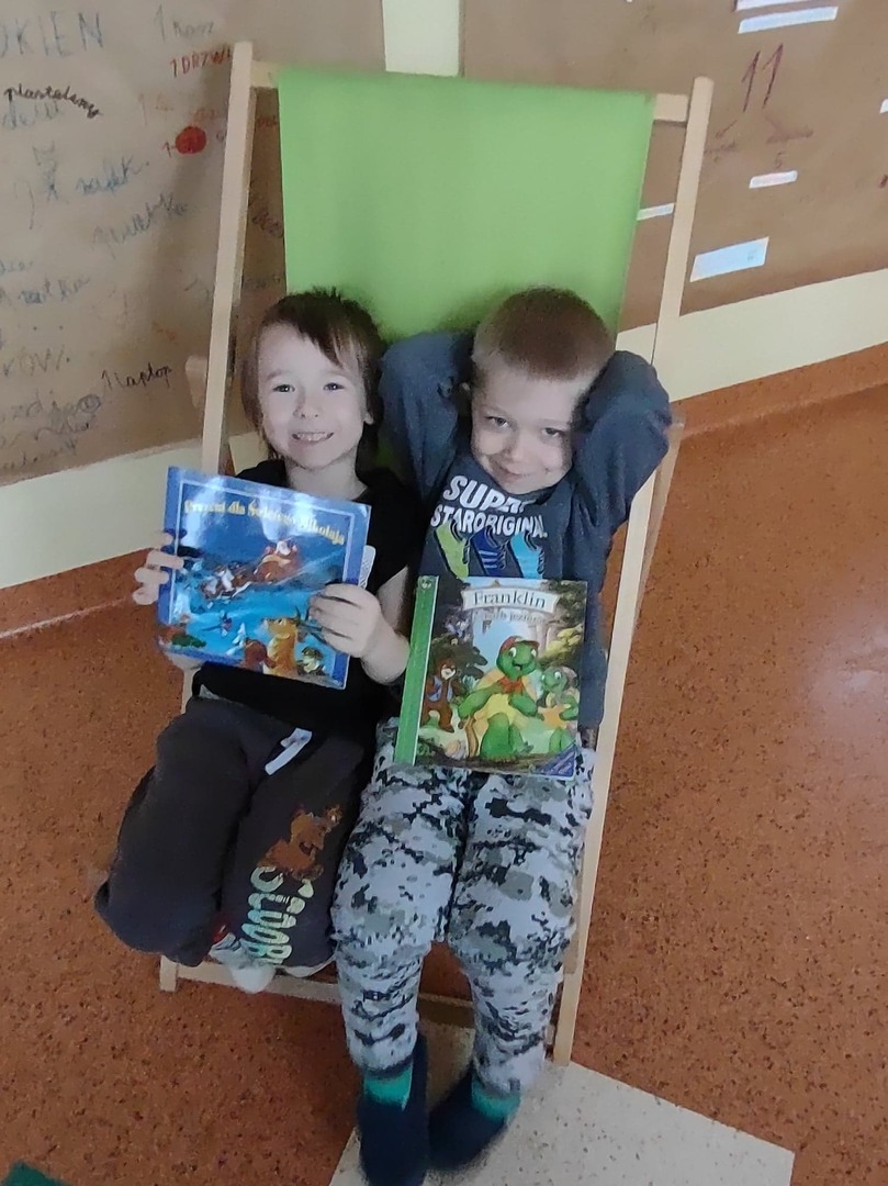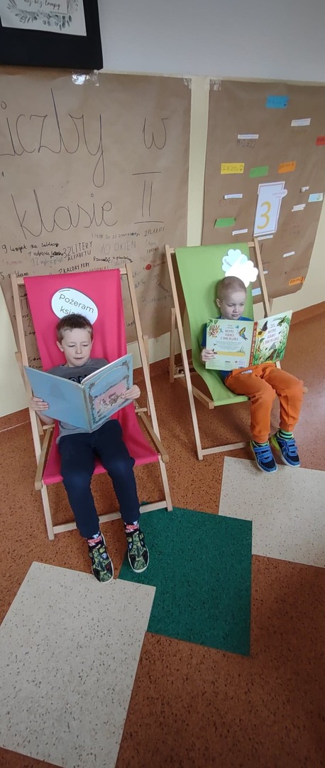 W poniedziałek 23 kwietnia świętowaliśmy Dzień Książki. Z tej okazji książki z naszej biblioteki w magiczny sposób przywędorwały na nasze szkolne korytarze. Ponieważ wygodna pozycja przy czytaniu jest bardzo ważna, razem z książkami pojawiły się nasze kolorowe leżaczki :)
