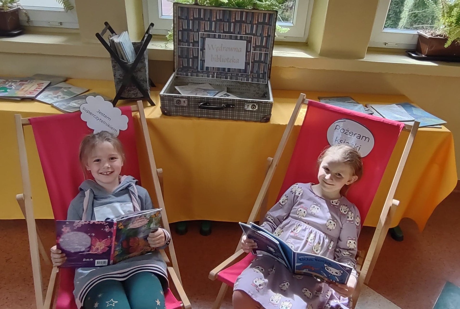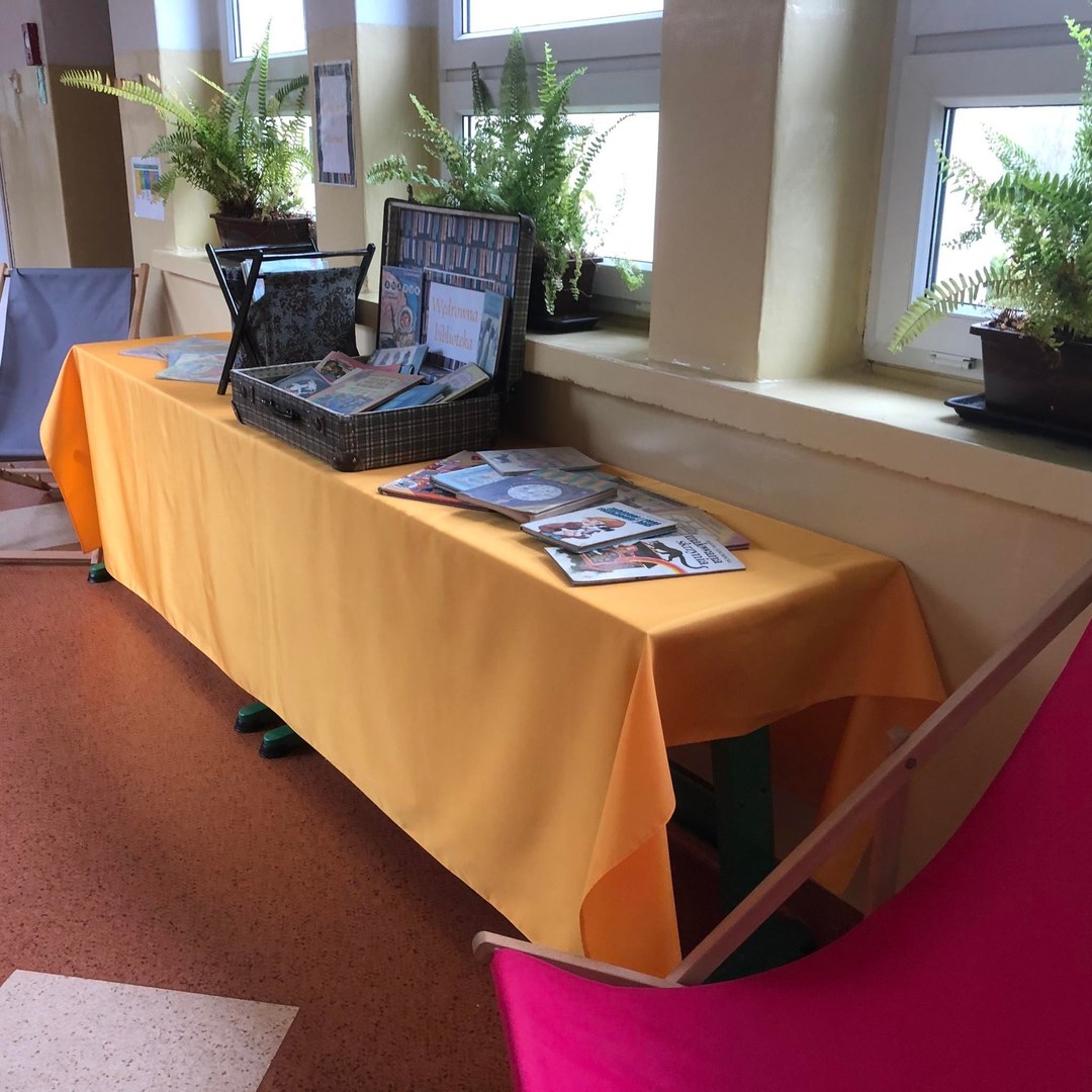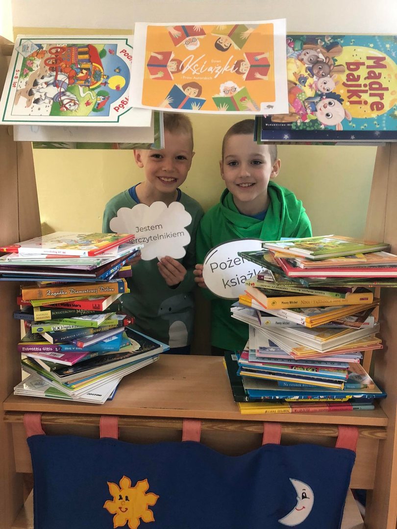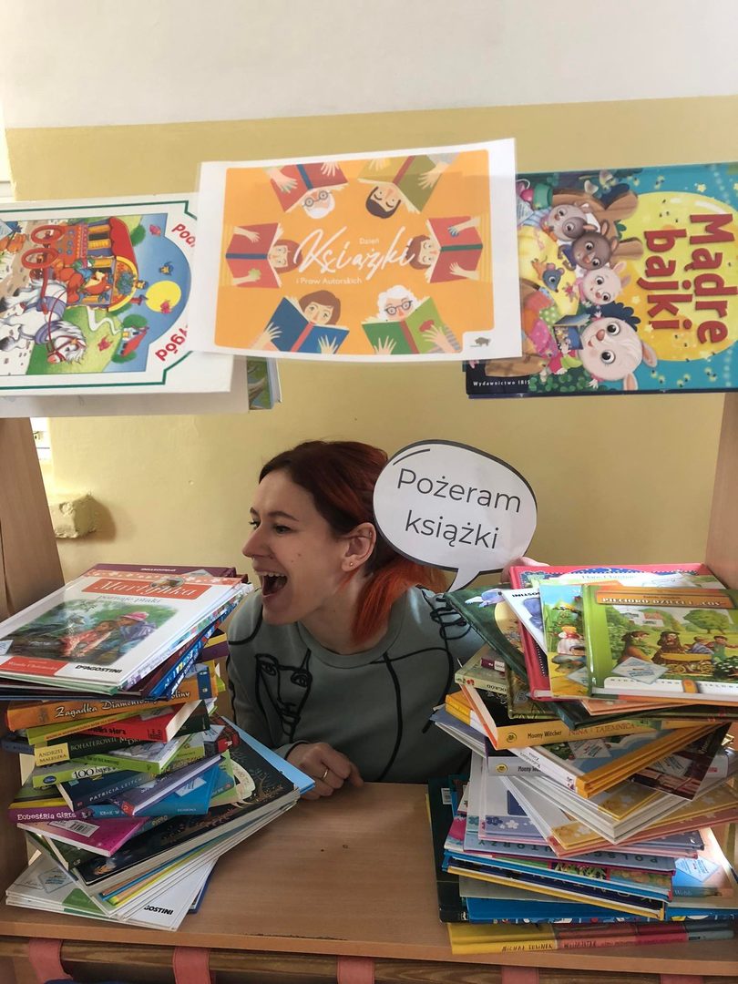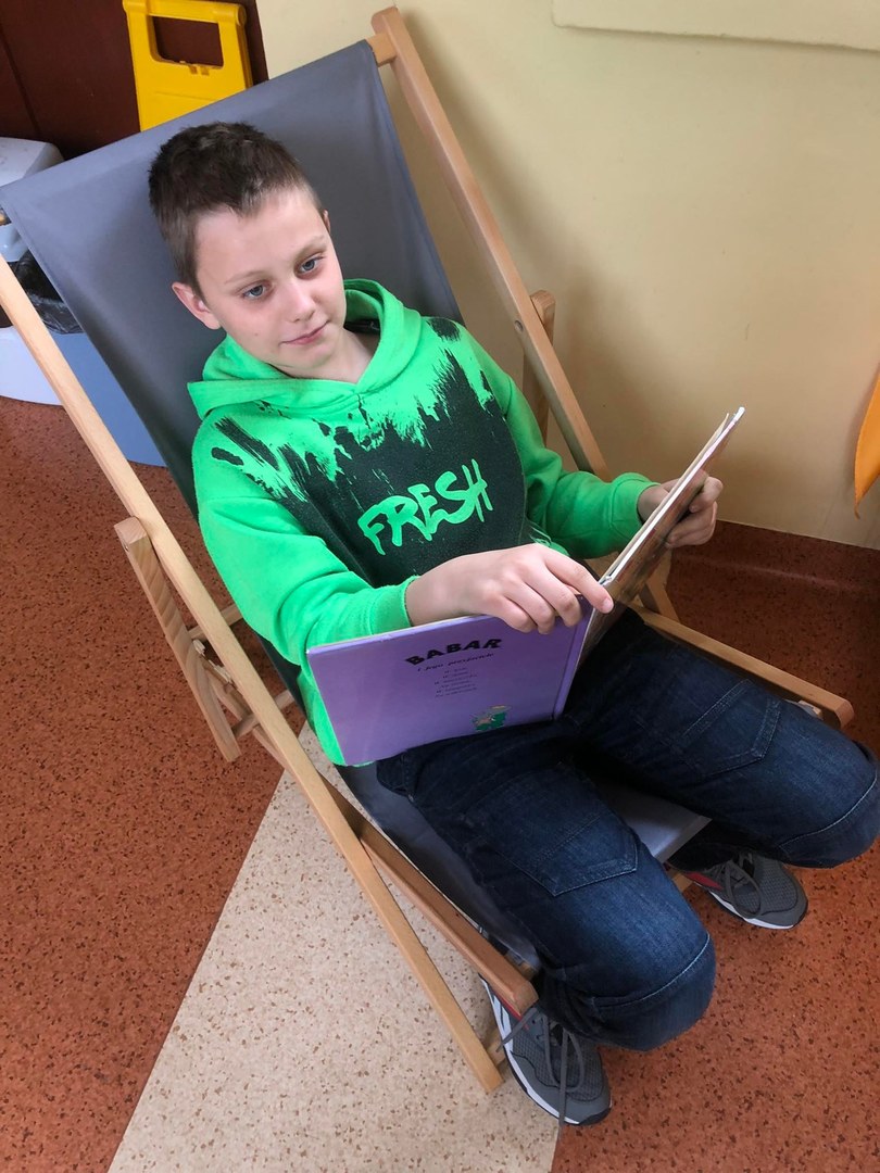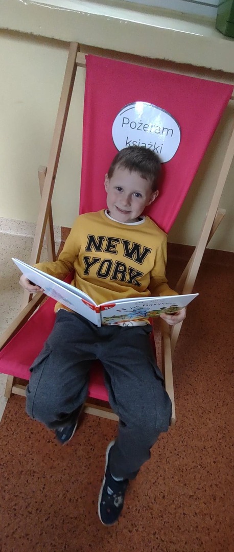 W poniedziałek 23 kwietnia świętowaliśmy Dzień Książki. Z tej okazji książki z naszej biblioteki w magiczny sposób przywędorwały na nasze szkolne korytarze. Ponieważ wygodna pozycja przy czytaniu jest bardzo ważna, razem z książkami pojawiły się nasze kolorowe leżaczki :)