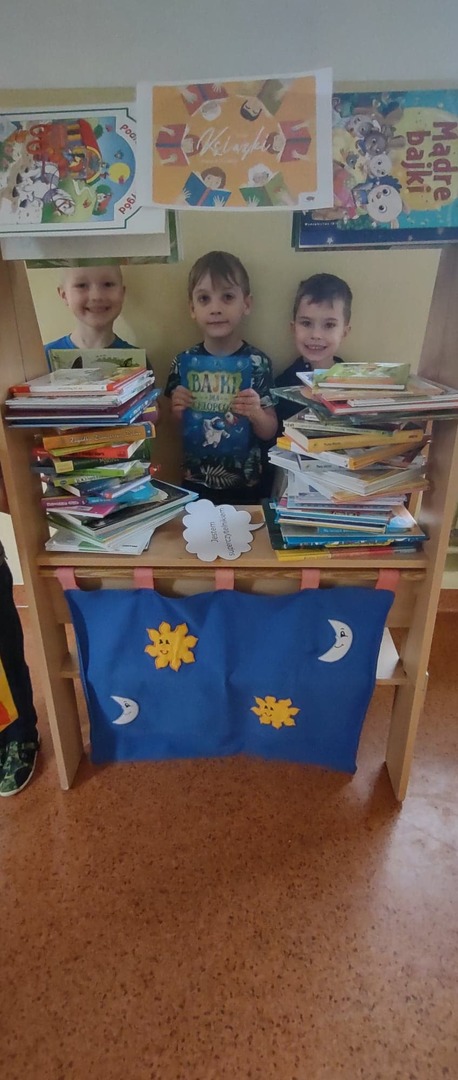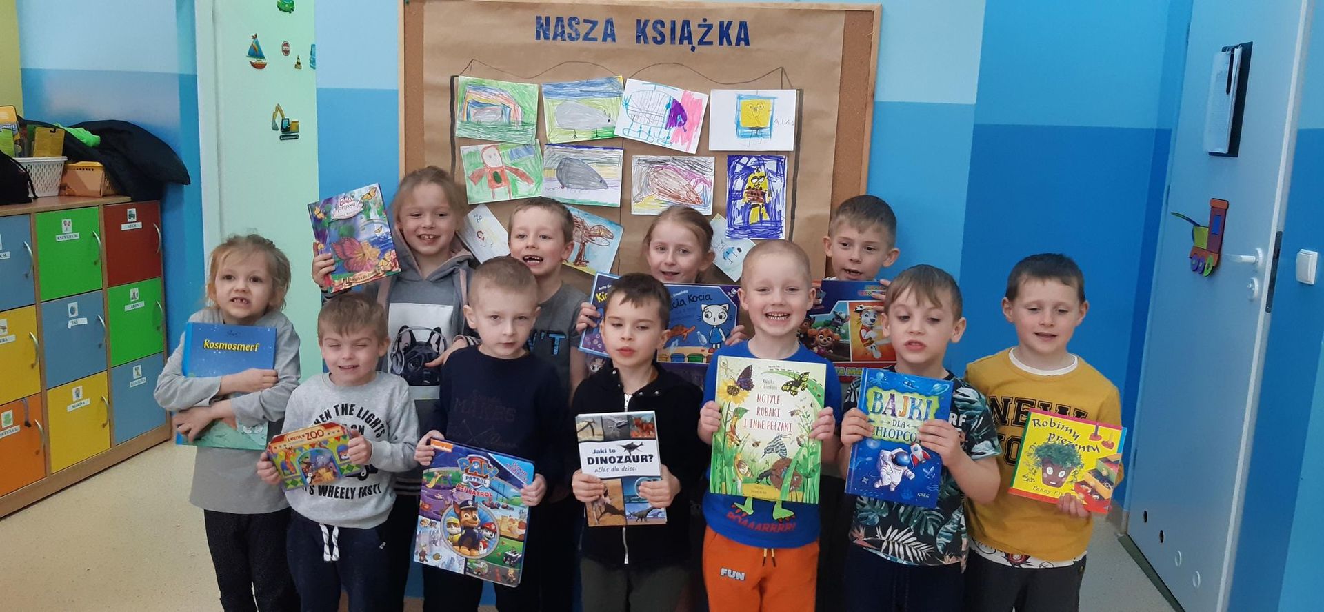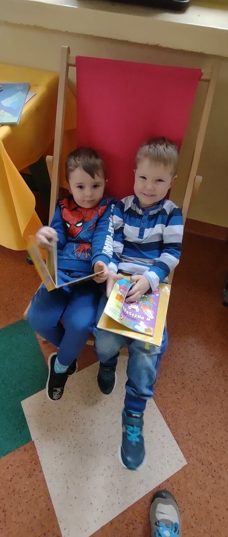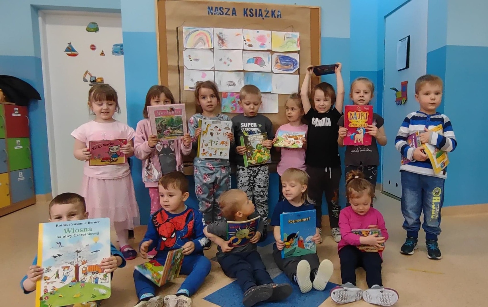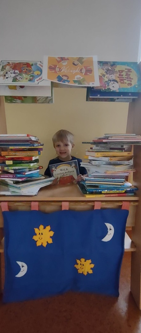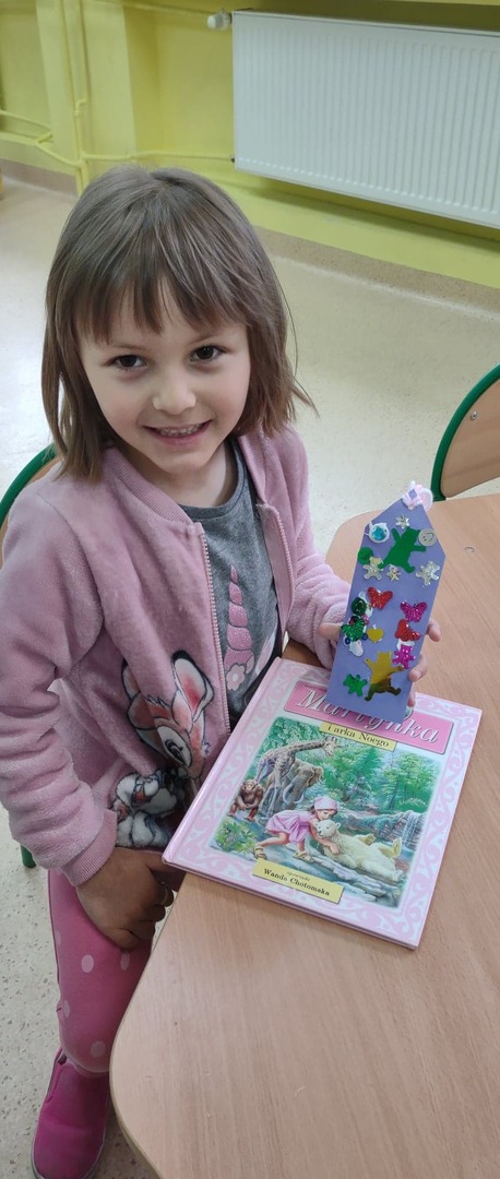 Do naszych książkowych zabaw włączyły się przedszkolaki, które nie tylko odwiedziły bibliotekę, ale także wspólnie stworzyły okładkę swojej książki i zakładki. Przyniosły również ulubione książeczki, które wspólnie oglądały.