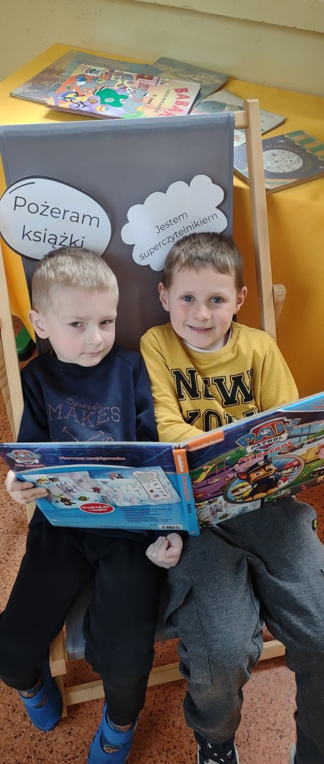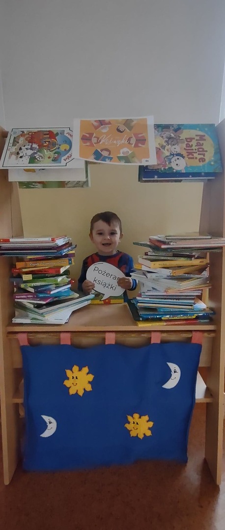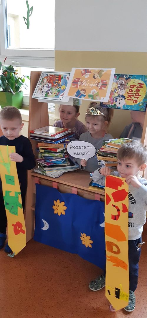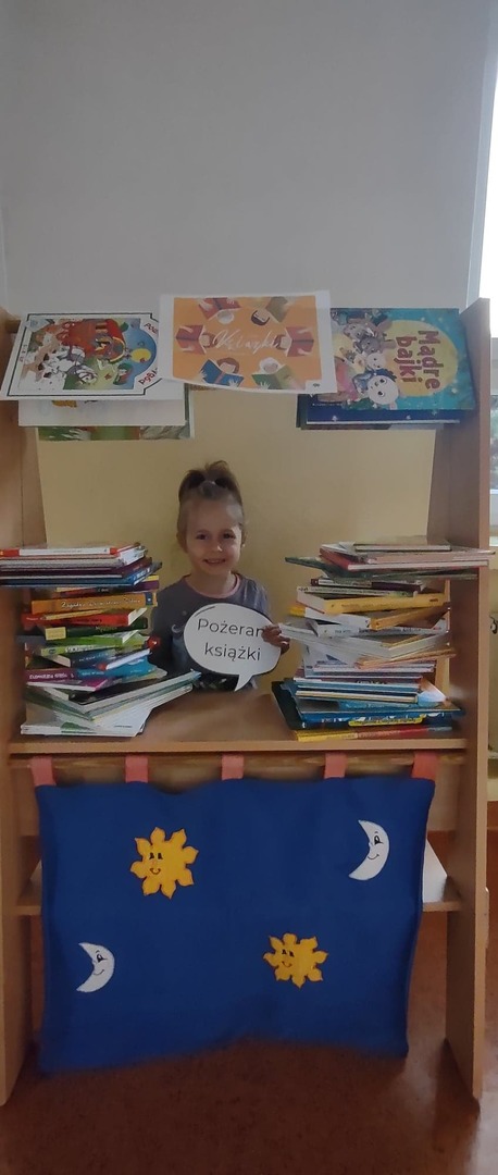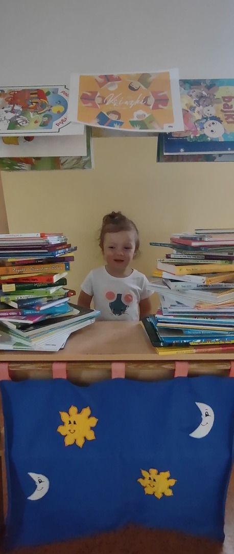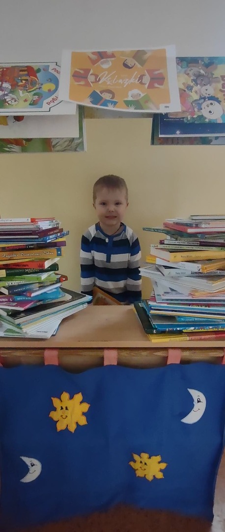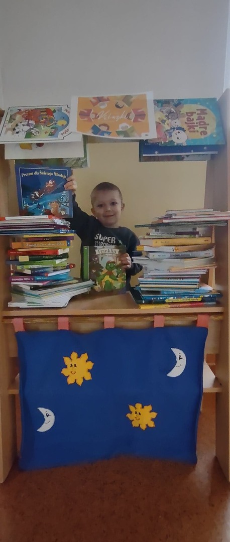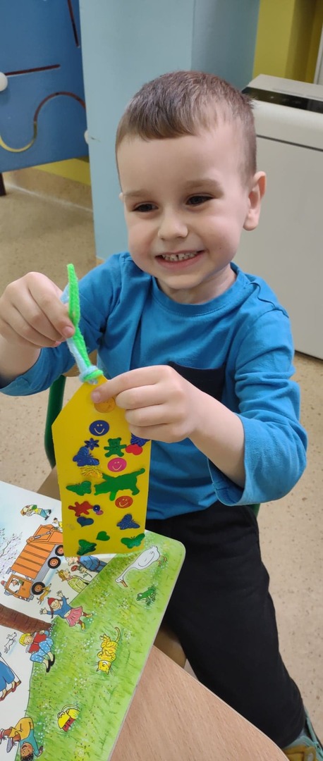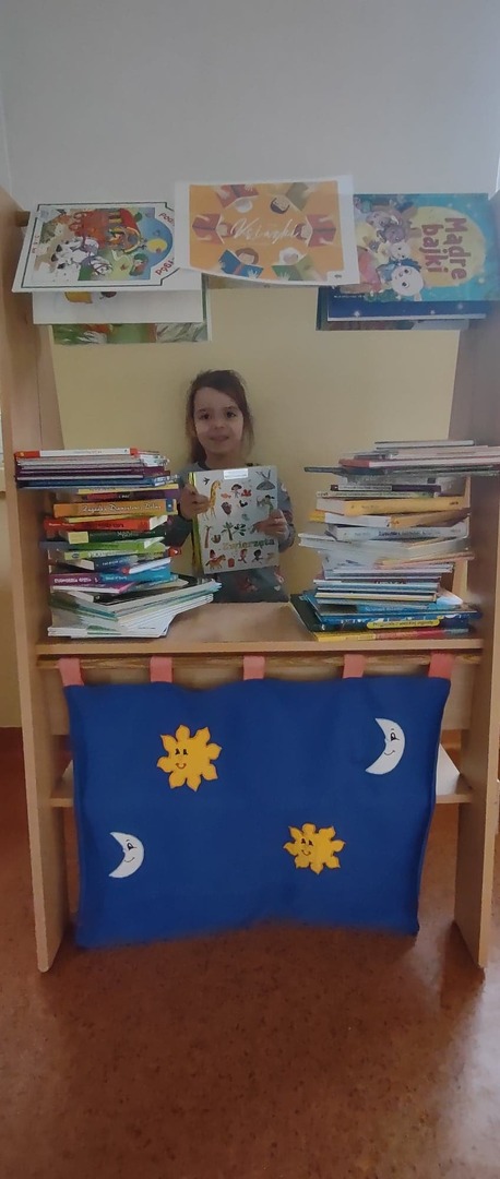 Do naszych książkowych zabaw włączyły się przedszkolaki, które nie tylko odwiedziły bibliotekę, ale także wspólnie stworzyły okładkę swojej książki i zakładki. Przyniosły również ulubione książeczki, które wspólnie oglądały.
