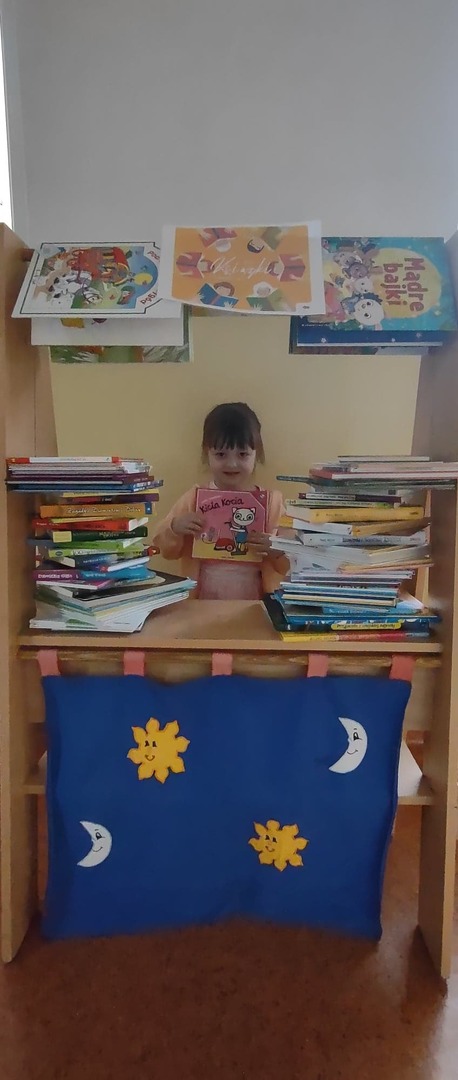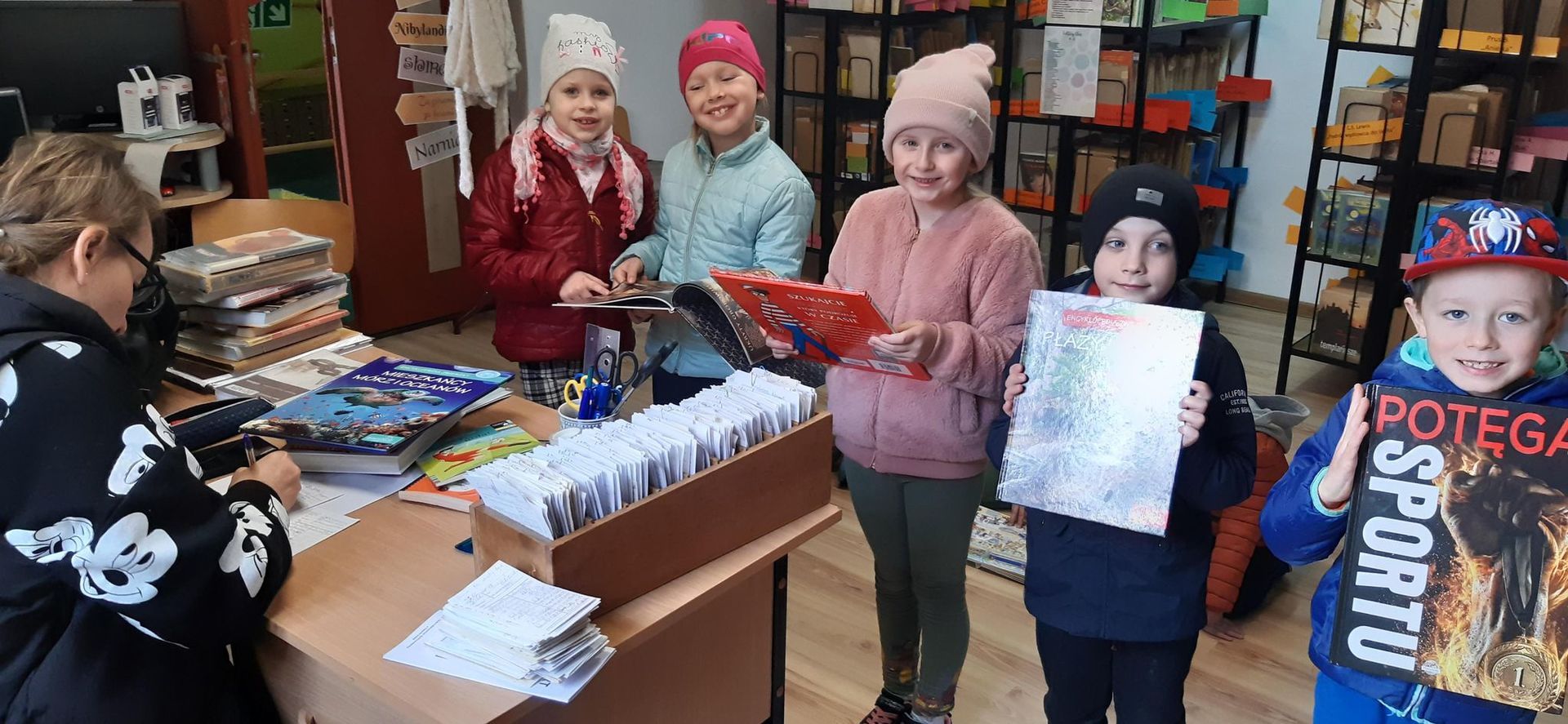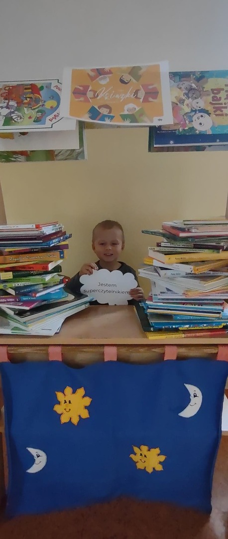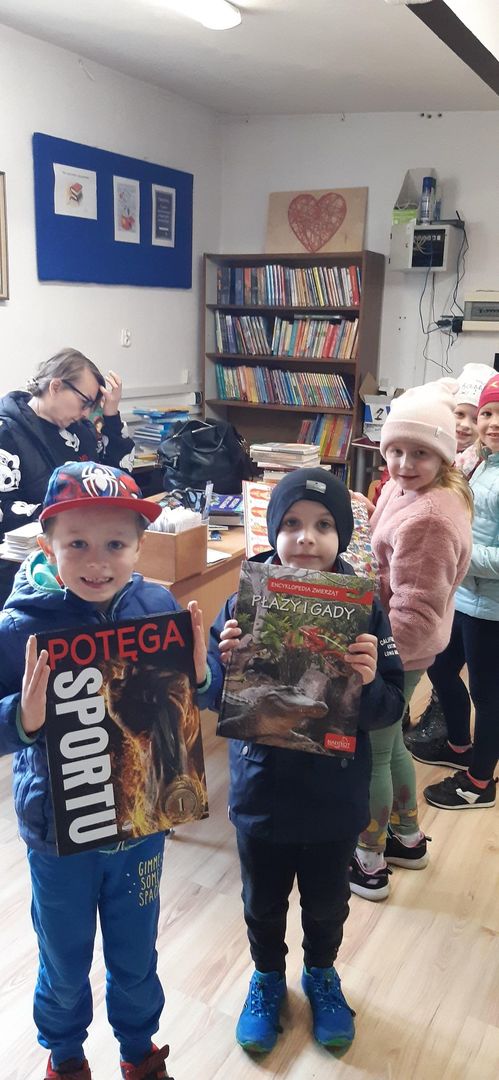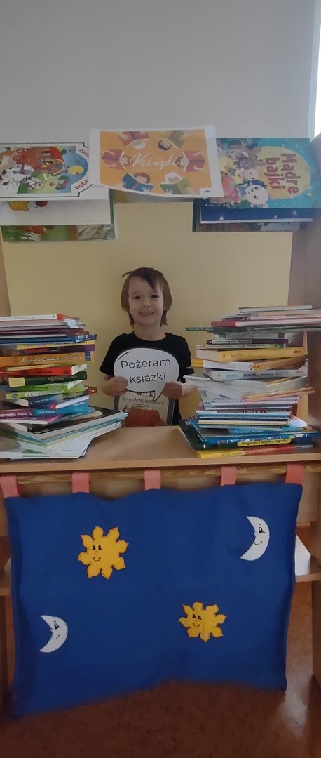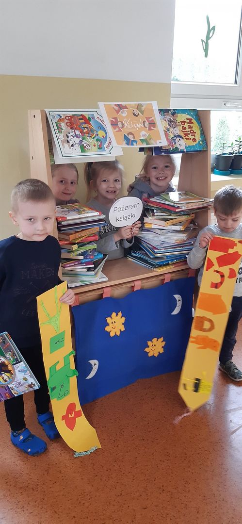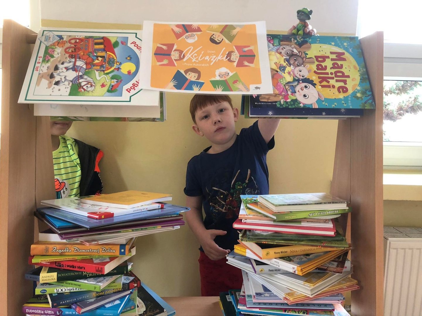 Do naszych książkowych zabaw włączyły się przedszkolaki, które nie tylko odwiedziły bibliotekę, ale także wspólnie stworzyły okładkę swojej książki i zakładki. Przyniosły również ulubione książeczki, które wspólnie oglądały.