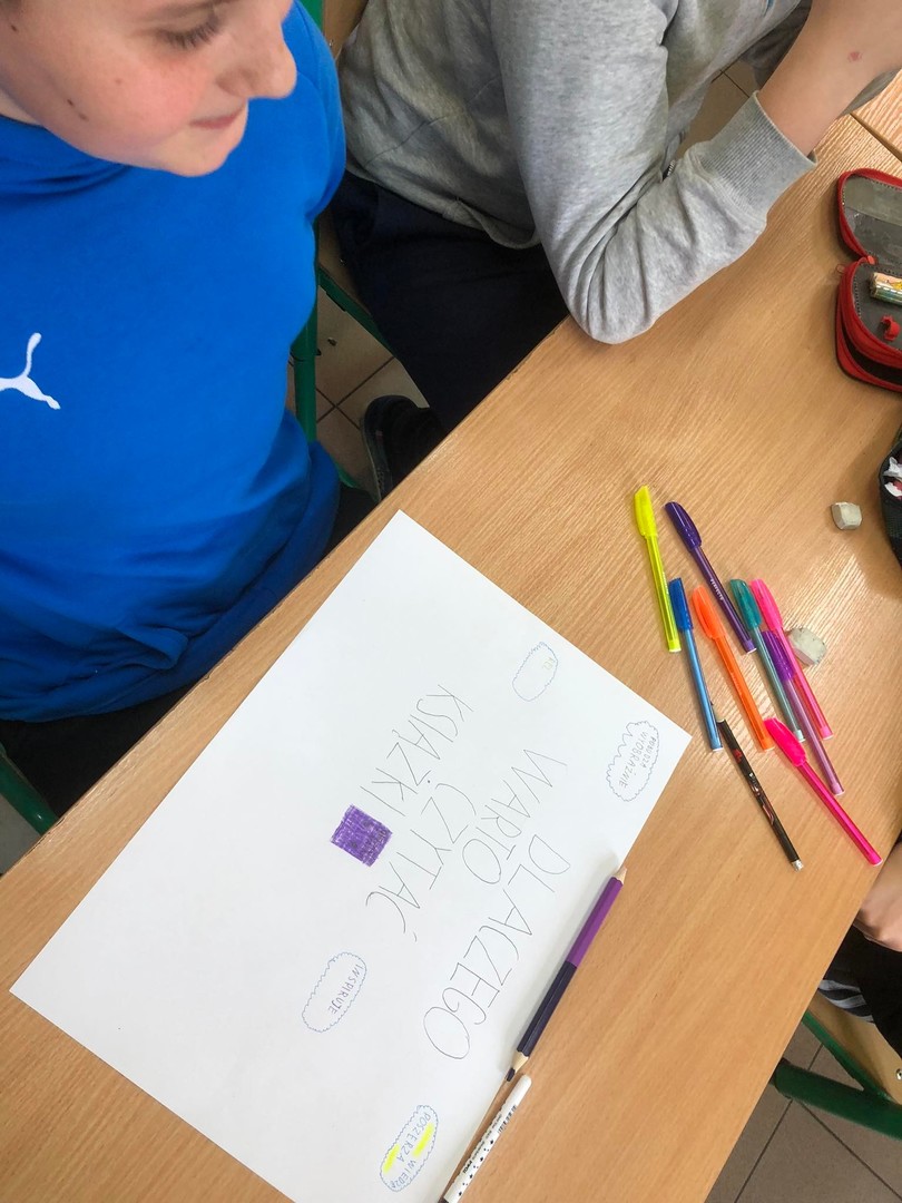 Uczniowie klas IV-V na zajęciach stworzyli plakaty promujące czytanie, trzeba przyznać, że ich pomysły oraz wykonanie były bardzo ciekawe :) Uczniowie klasy IV i VI dodatkowo zajeli się wykonaniem przepięknych zakładek nawiązujących do omawianych lektur.