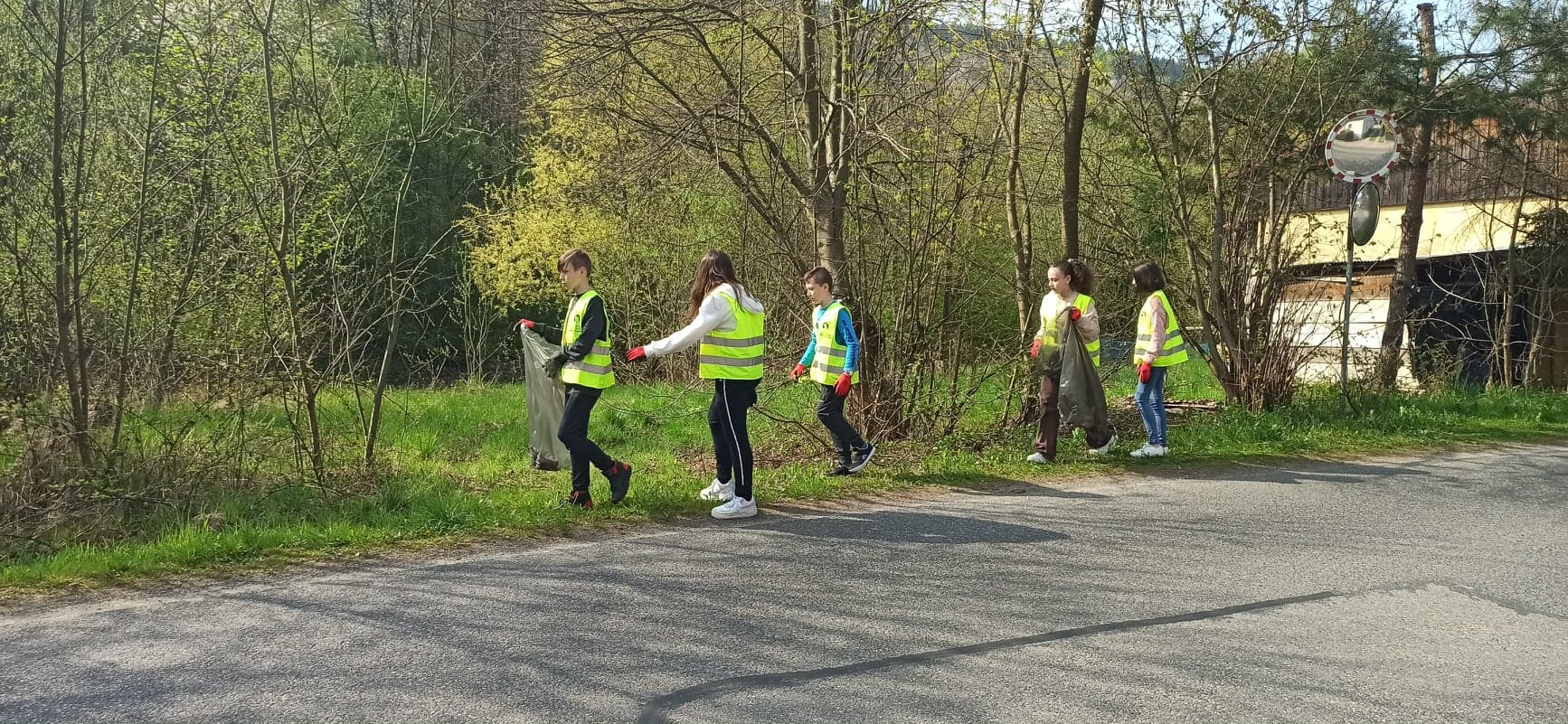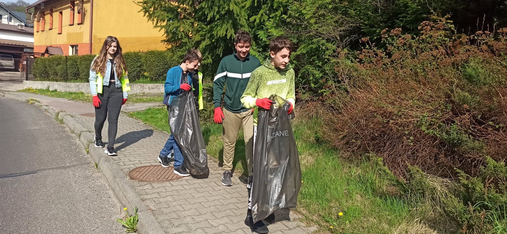 Wypoczęci po długim weekendzie uczniowie klas szóstej i siódmej wybrali się 4 maja na akcję sprzątania najbliższej okolicy organizowanej w ramach „Wielkiego Sprzątania Małopolski”.