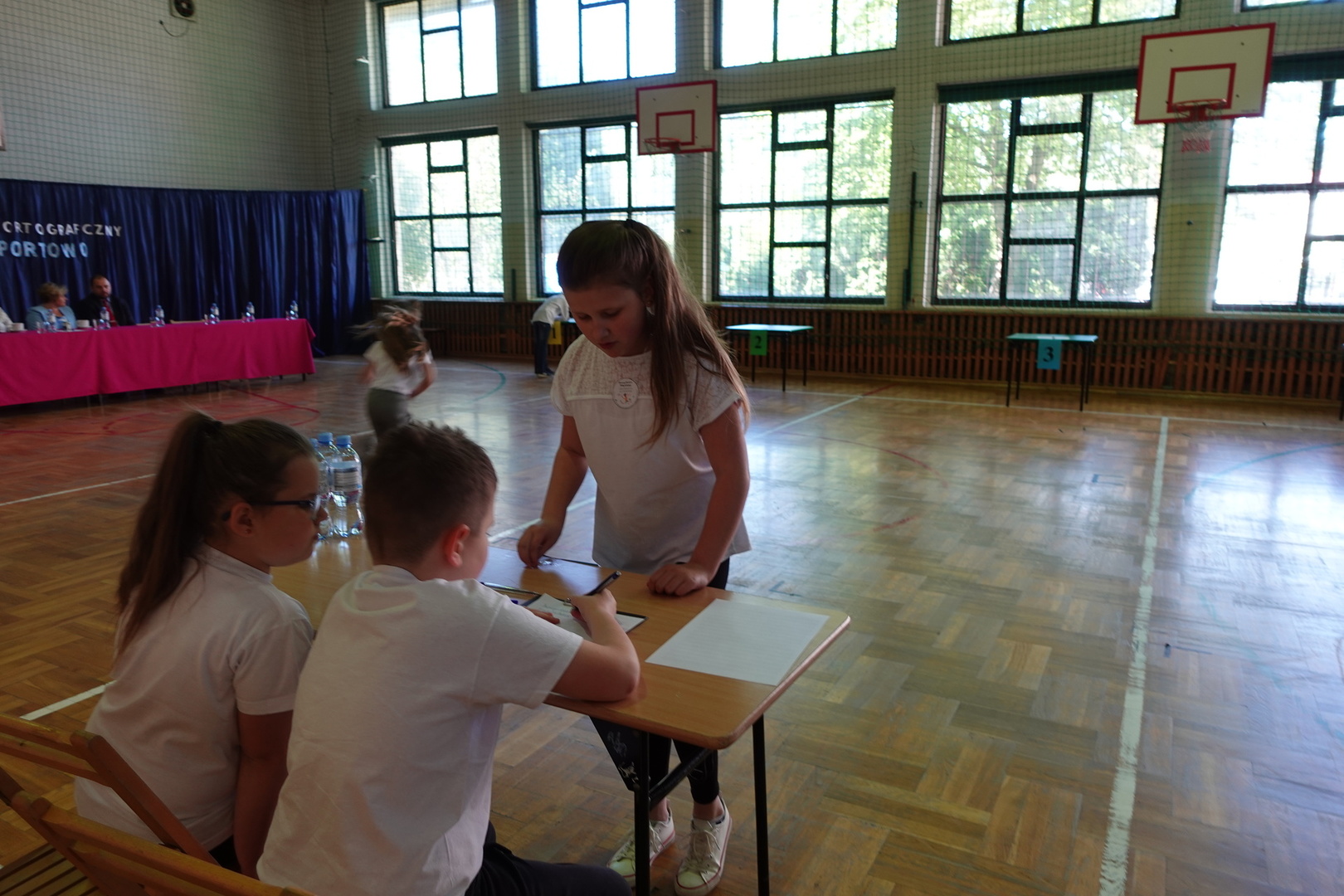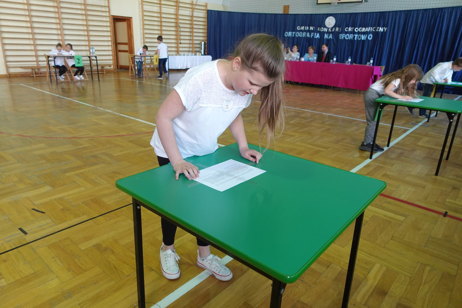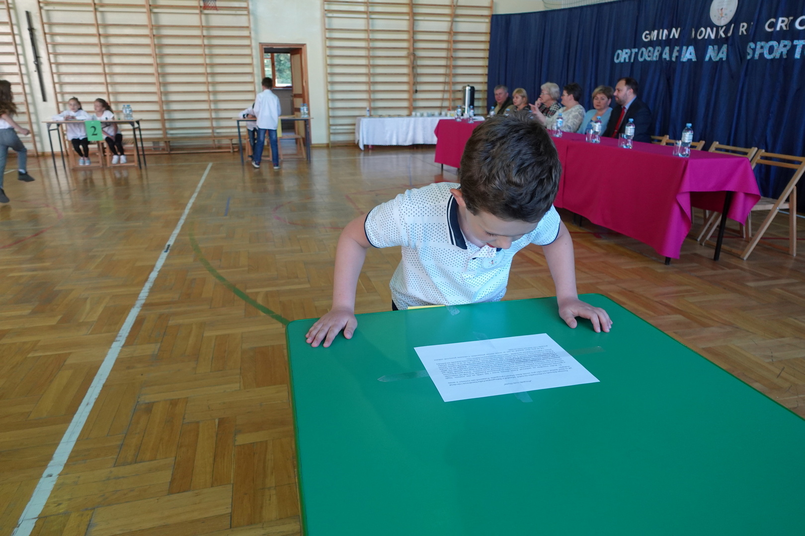 Do konkursu przystąpiły cztery trzyosobowe drużyny klas 1-3 z wszystkich szkół naszej gminy - Zembrzyc, Śleszowic, Marcówki oraz oczywiście Tarnawy Dolnej. W każdej drużynie wyłoniony został pisarz, którego zadaniem było piękne napisanie podyktowanego przez kolegów tekstu dyktanda.