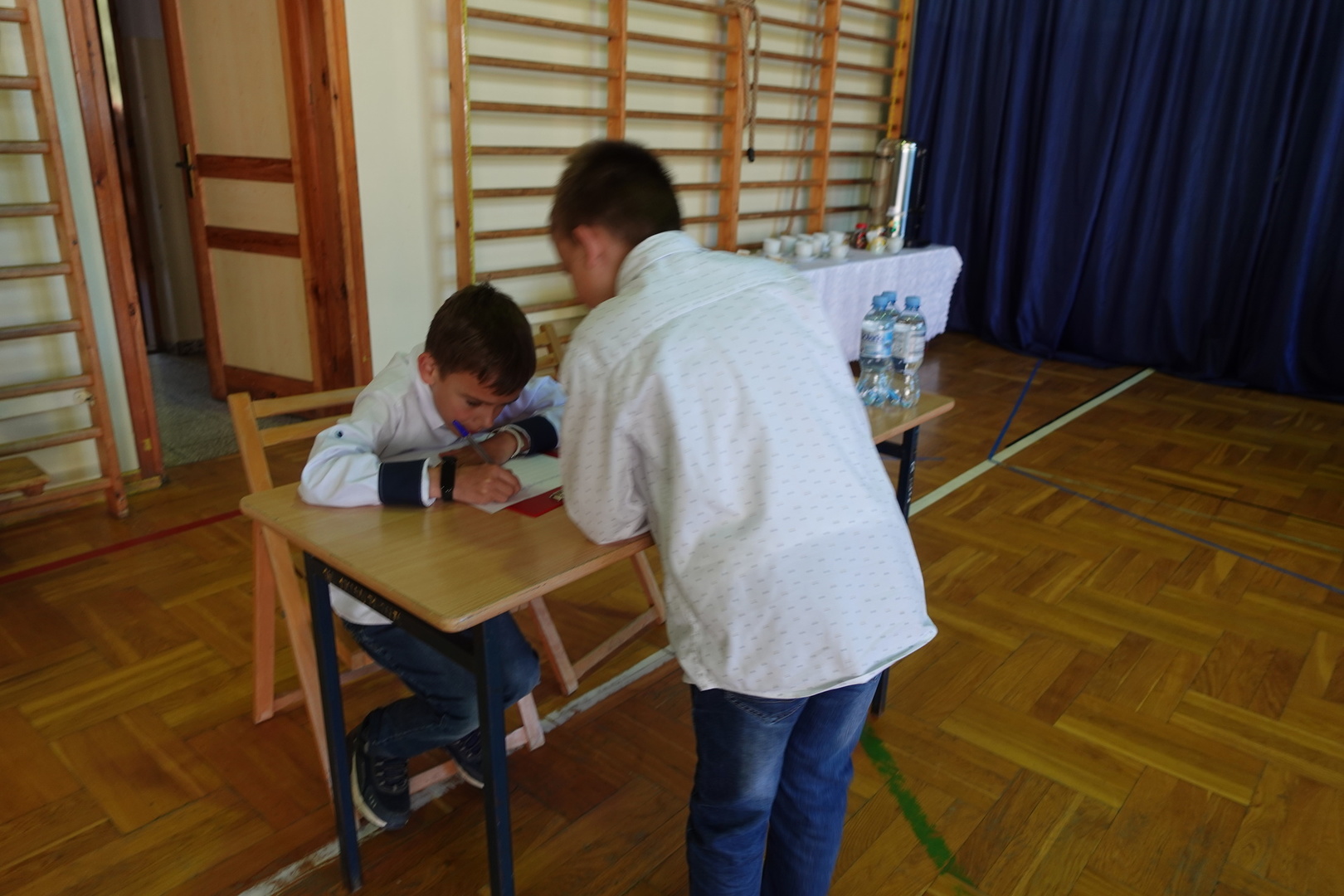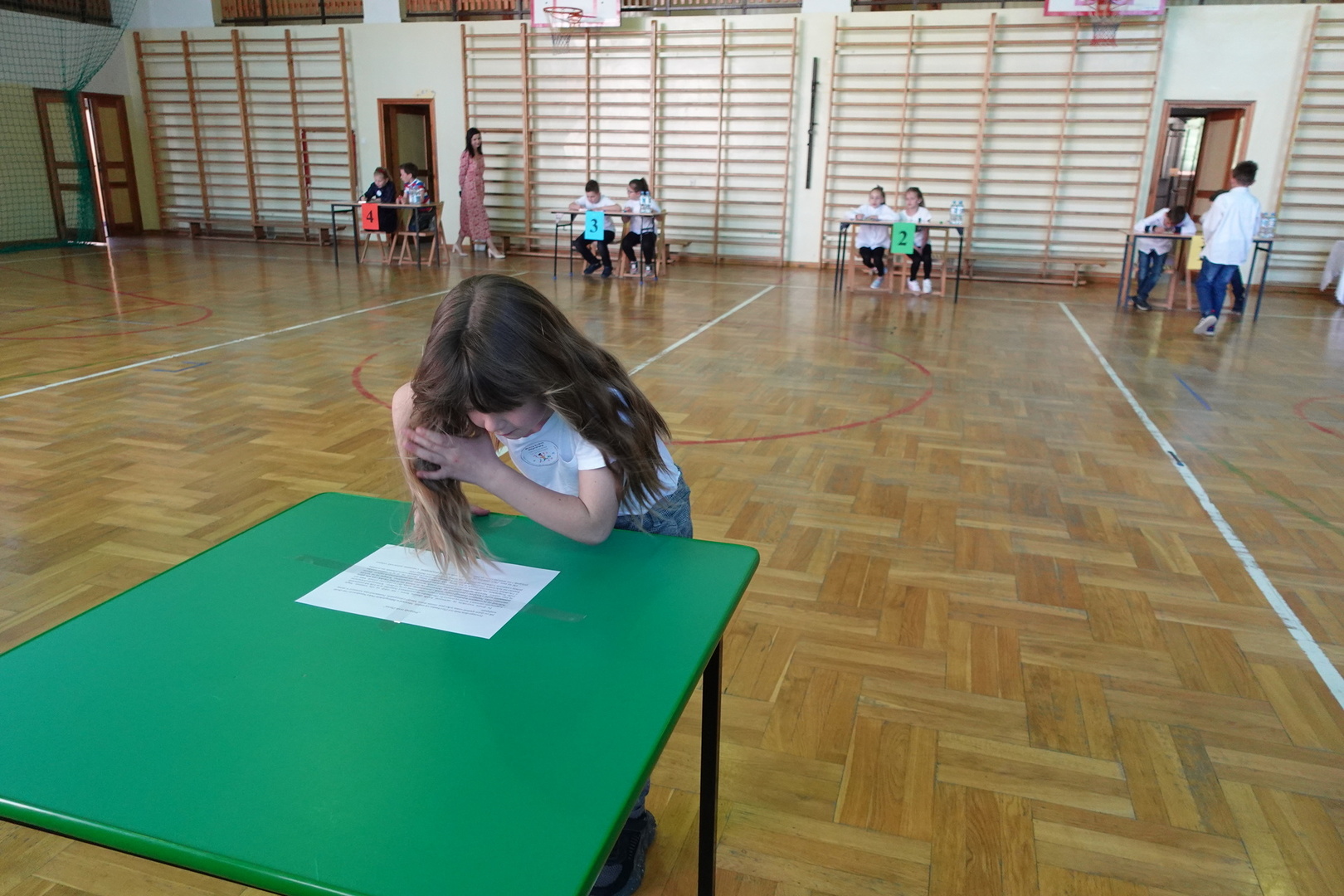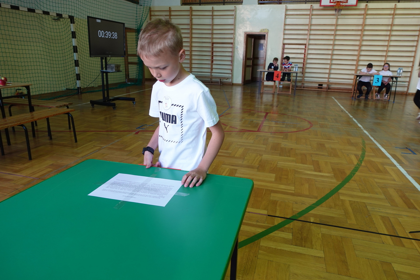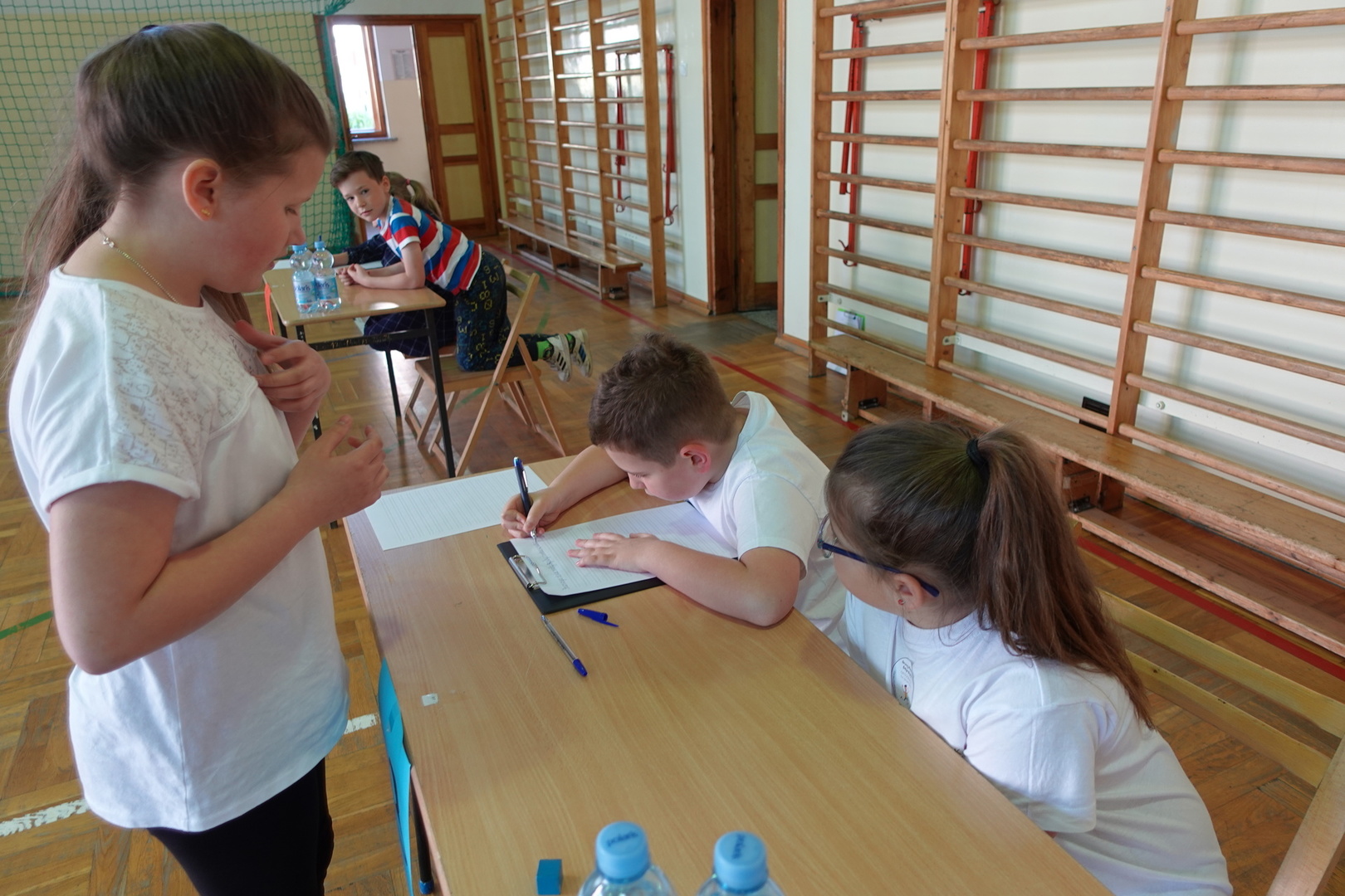 Do konkursu przystąpiły cztery trzyosobowe drużyny klas 1-3 z wszystkich szkół naszej gminy - Zembrzyc, Śleszowic, Marcówki oraz oczywiście Tarnawy Dolnej. W każdej drużynie wyłoniony został pisarz, którego zadaniem było piękne napisanie podyktowanego przez kolegów tekstu dyktanda.